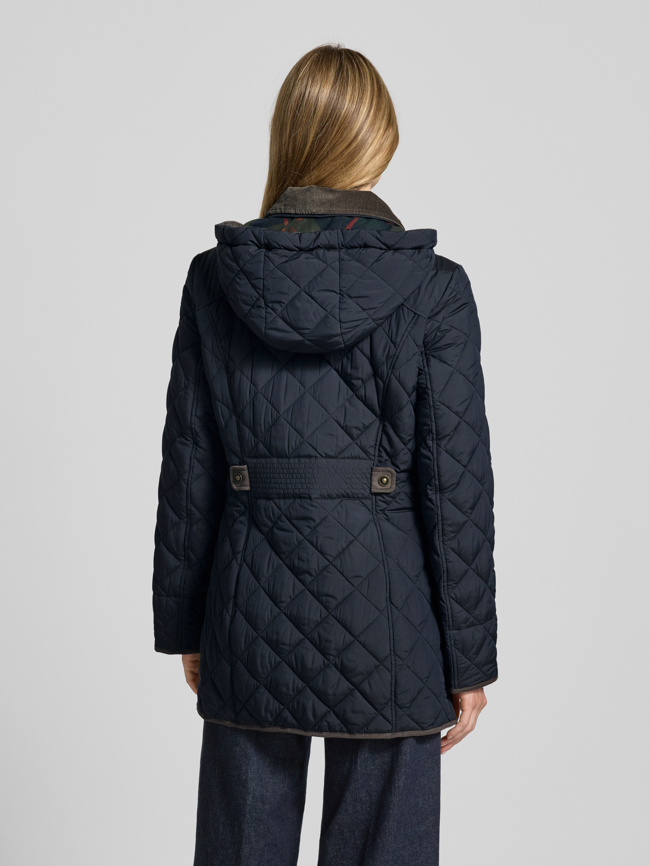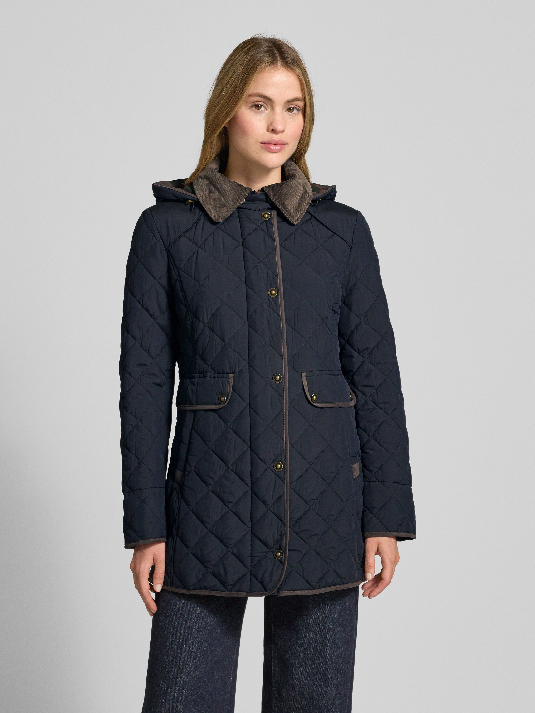 Steppjacke mit Umlegekragen und Pattentaschen in dunkelblau