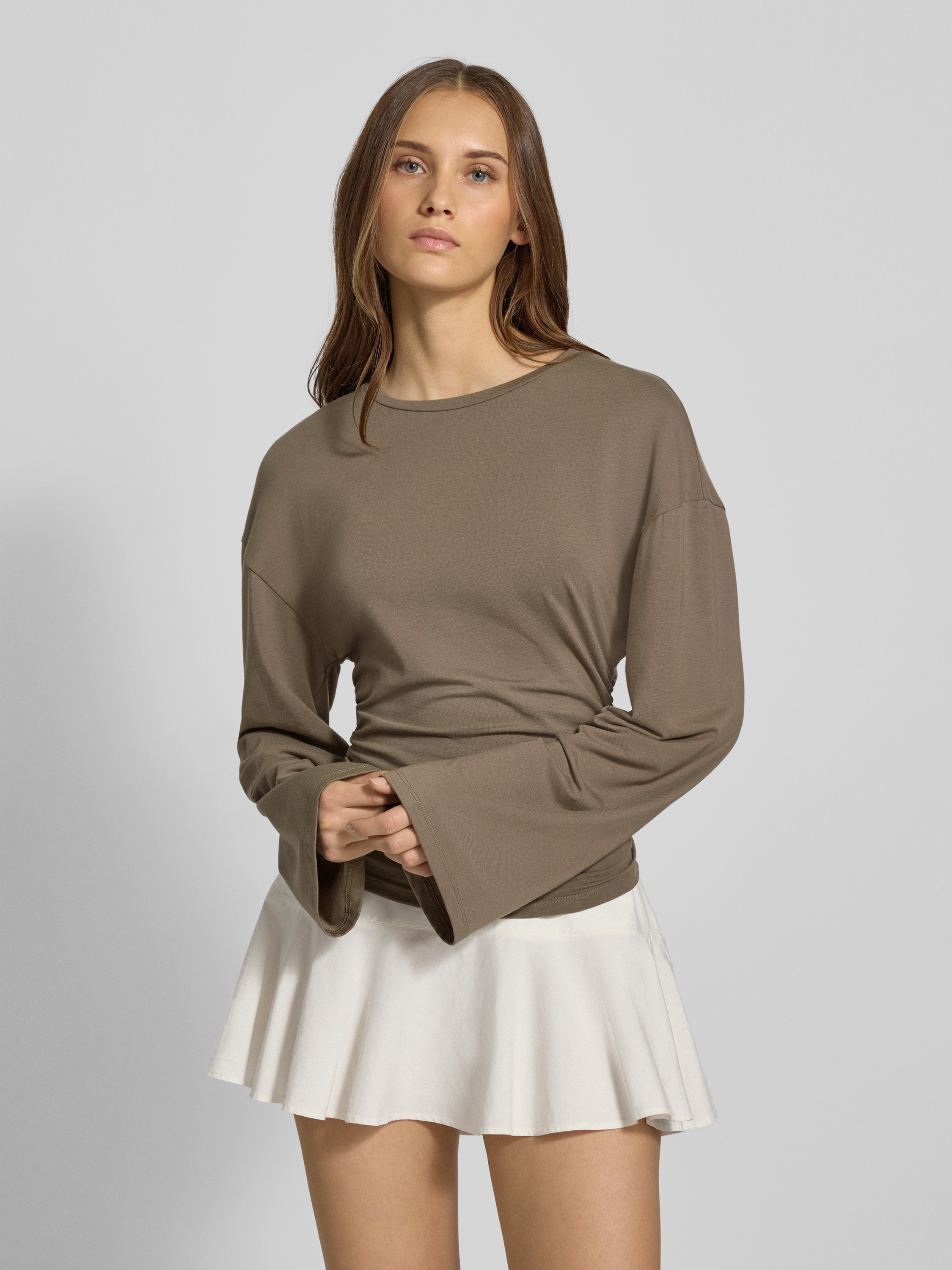 Das Damen Longsleeve von Gina Tricot liegt dank seines Baumwoll-Modal-Mix angenehm weich auf der Haut. Durch den eng anliegenden Schnitt und die dezenten Raffungen entsteht eine feminine Silhouette, die vielseitig kombinierbar ist. Der klassische Rundhalsausschnitt rundet das Design ab.
