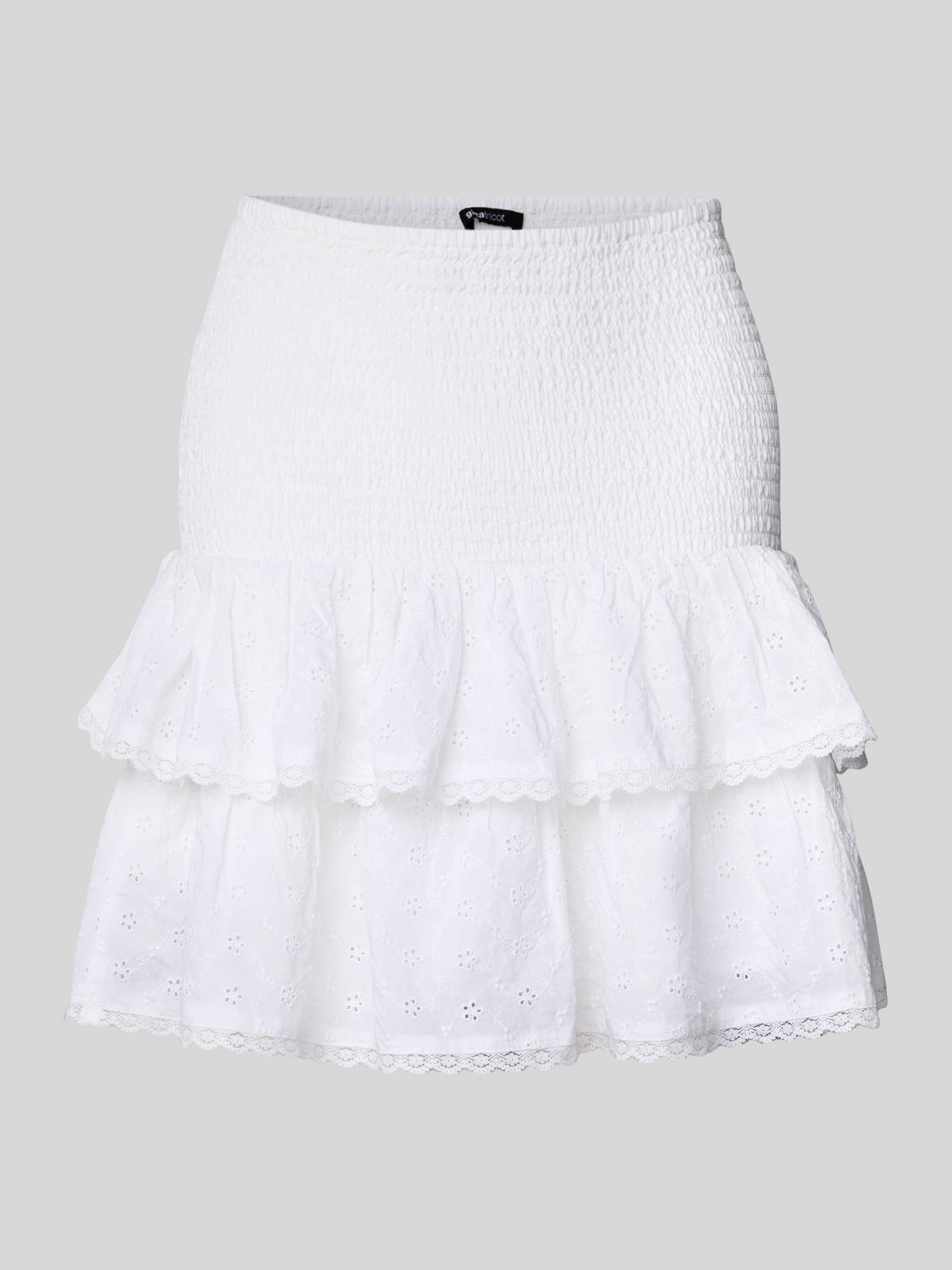 Der Minirock von Gina Tricot aus reiner Baumwolle zeichnet sich durch seine schmeichelhafte A-Linie aus, die im Stufen-Look gestaltet ist. Smok-Details verleihen dem Rock eine interessante Textur, während der weiche Stoff für ein angenehmes Tragegefühl sorgt. Ideal für sommerliche Ausflüge oder entspannte Treffen.