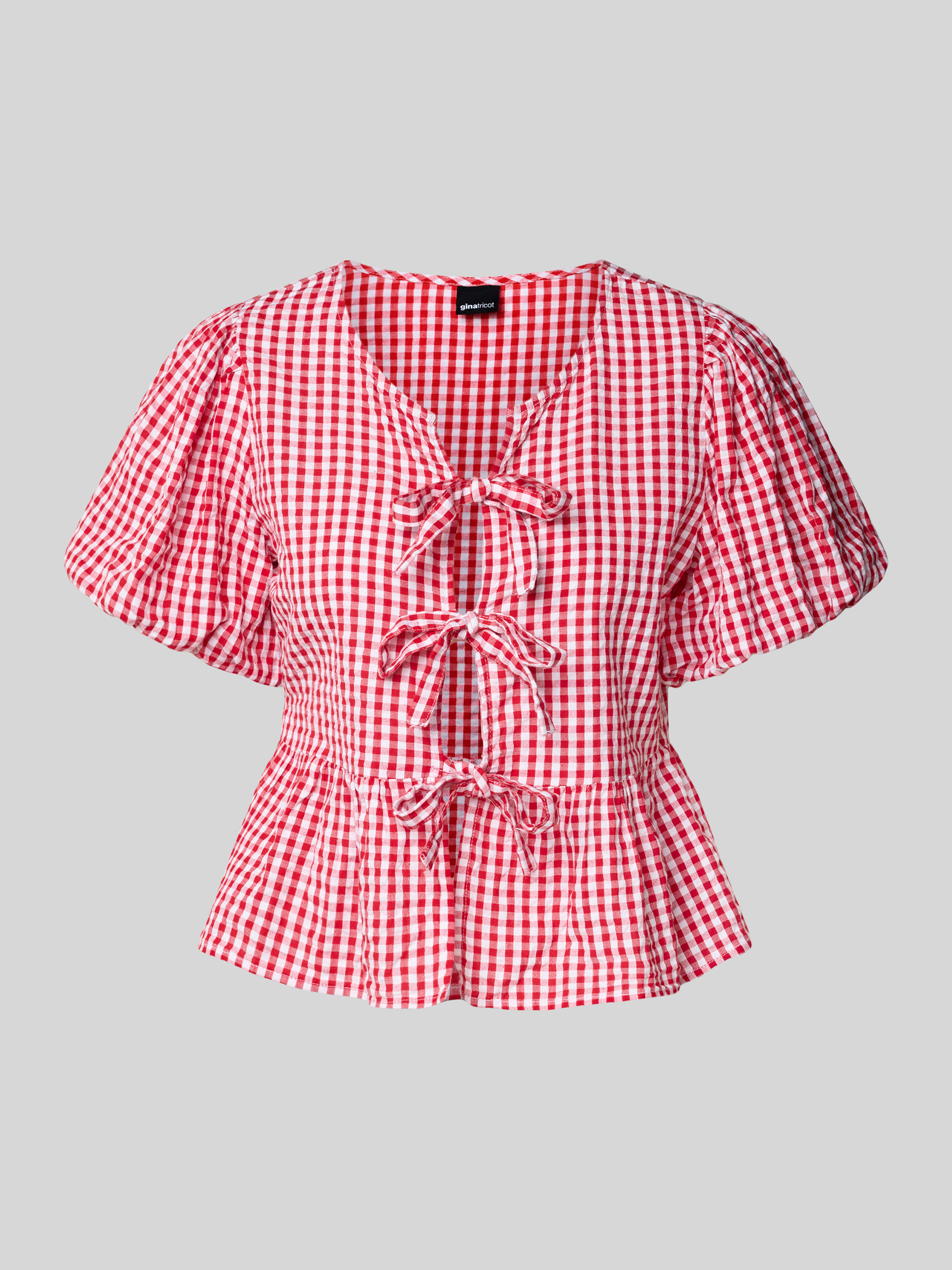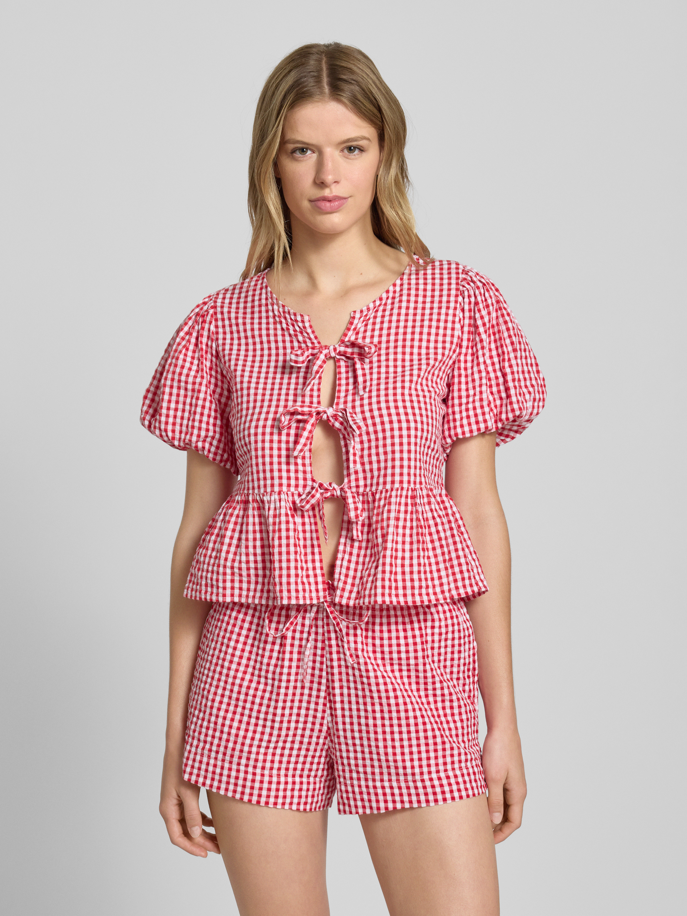 Gina TricotRegular Fit Bluse mit Puffärmeln und Schnürung in rot