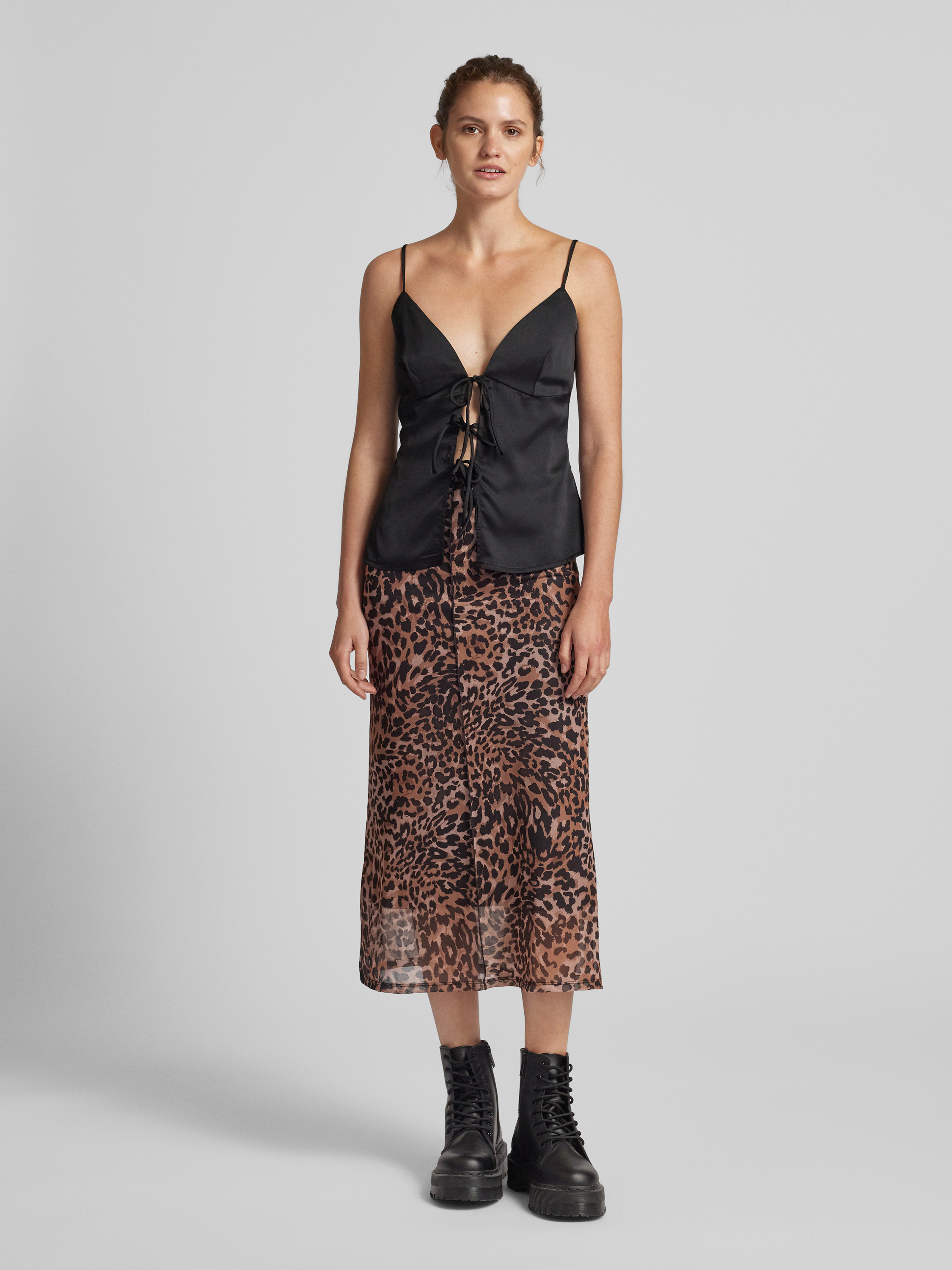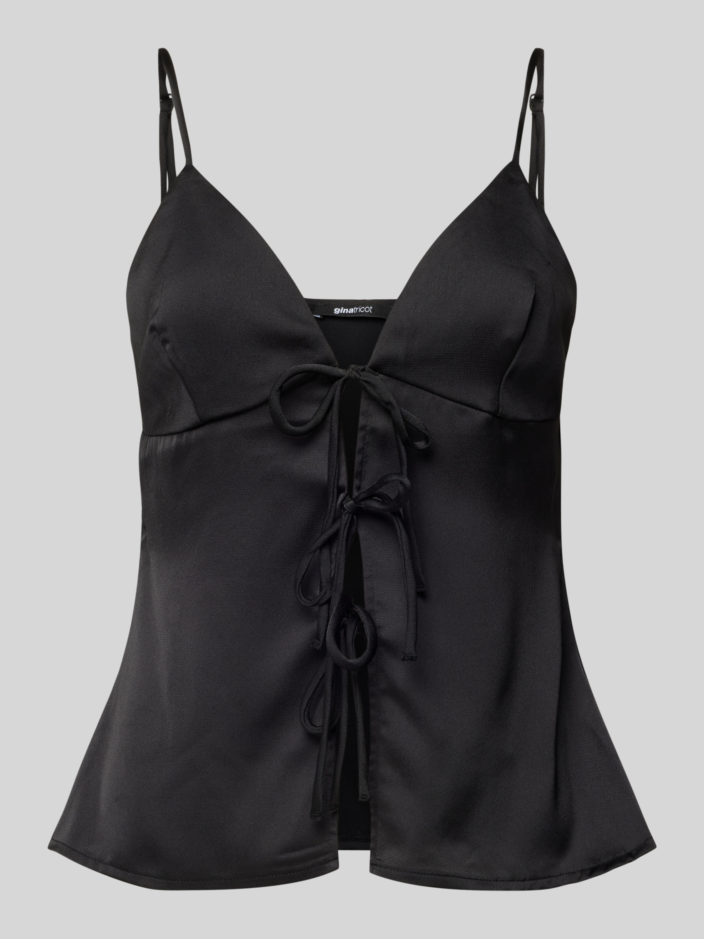 Das Blusentop von Gina Tricot verbindet Eleganz mit Alltagstauglichkeit durch seinen figurnahen Slim Fit Schnitt. Zarte Spaghettiträger und ein V-Ausschnitt geben dem Modell eine feminine Note, während Knotendetails für dezente Raffinesse sorgen. Ideal für sommerliche Tage oder elegante Anlässe.