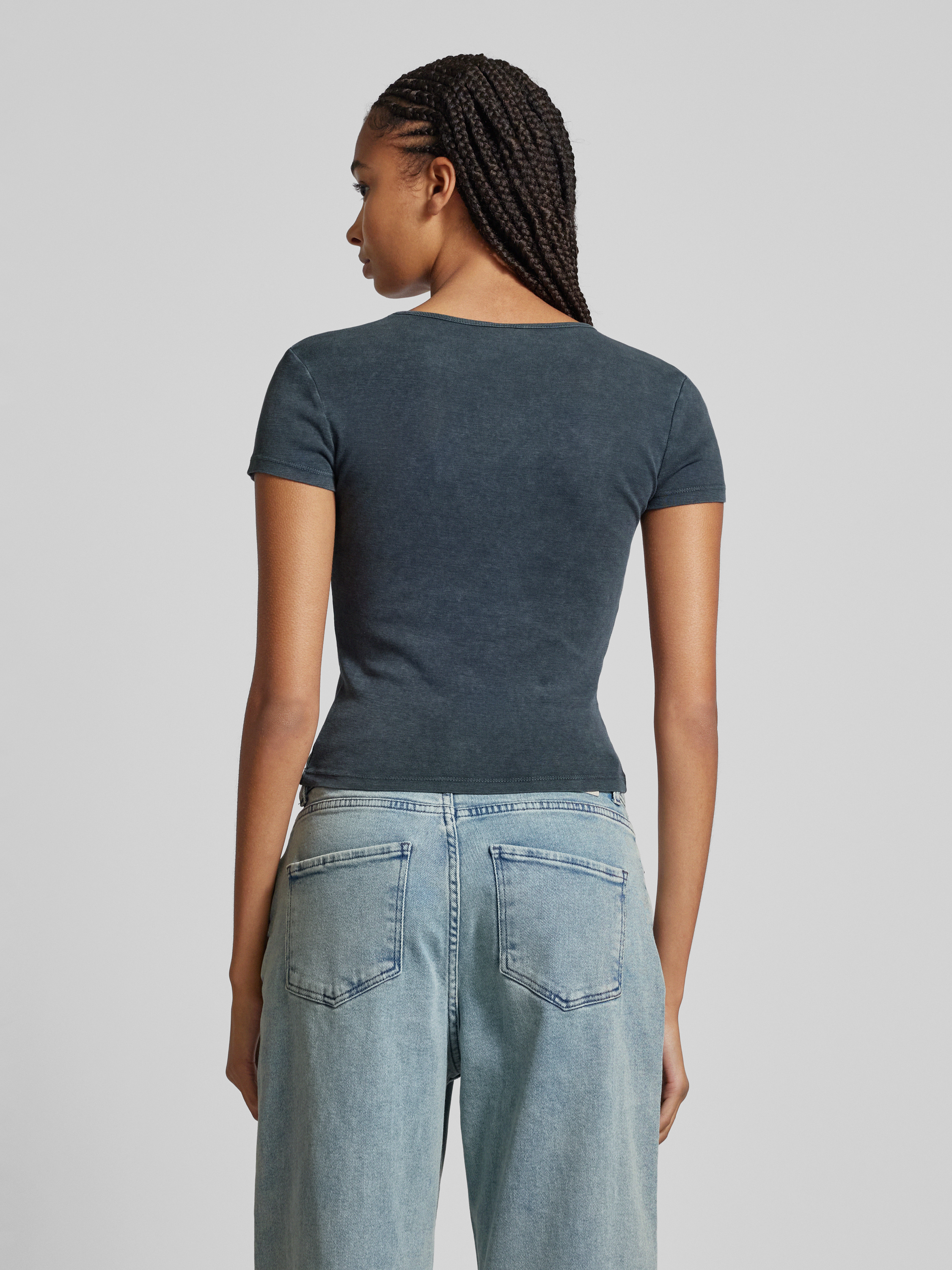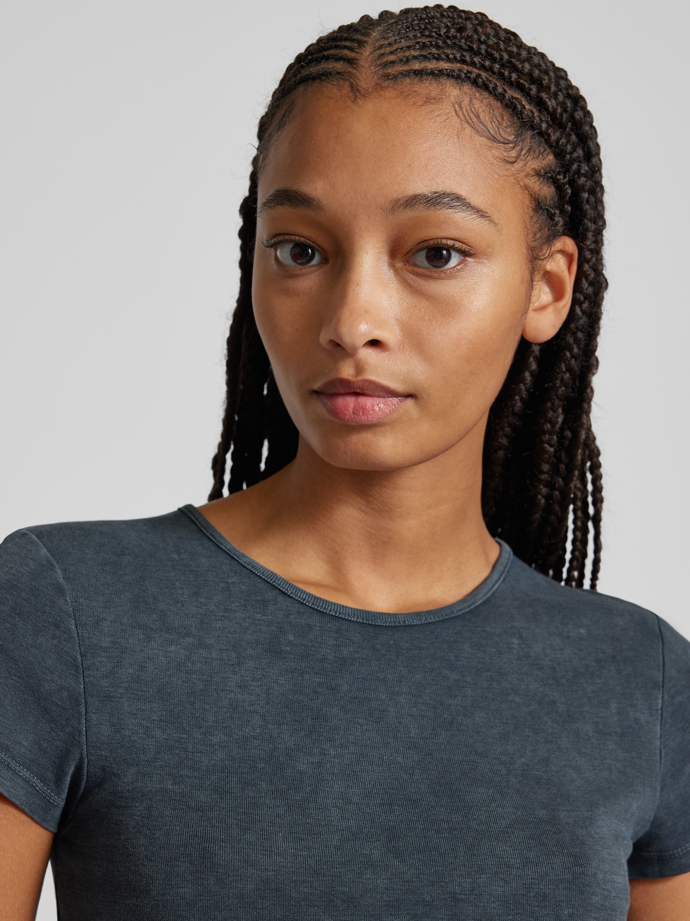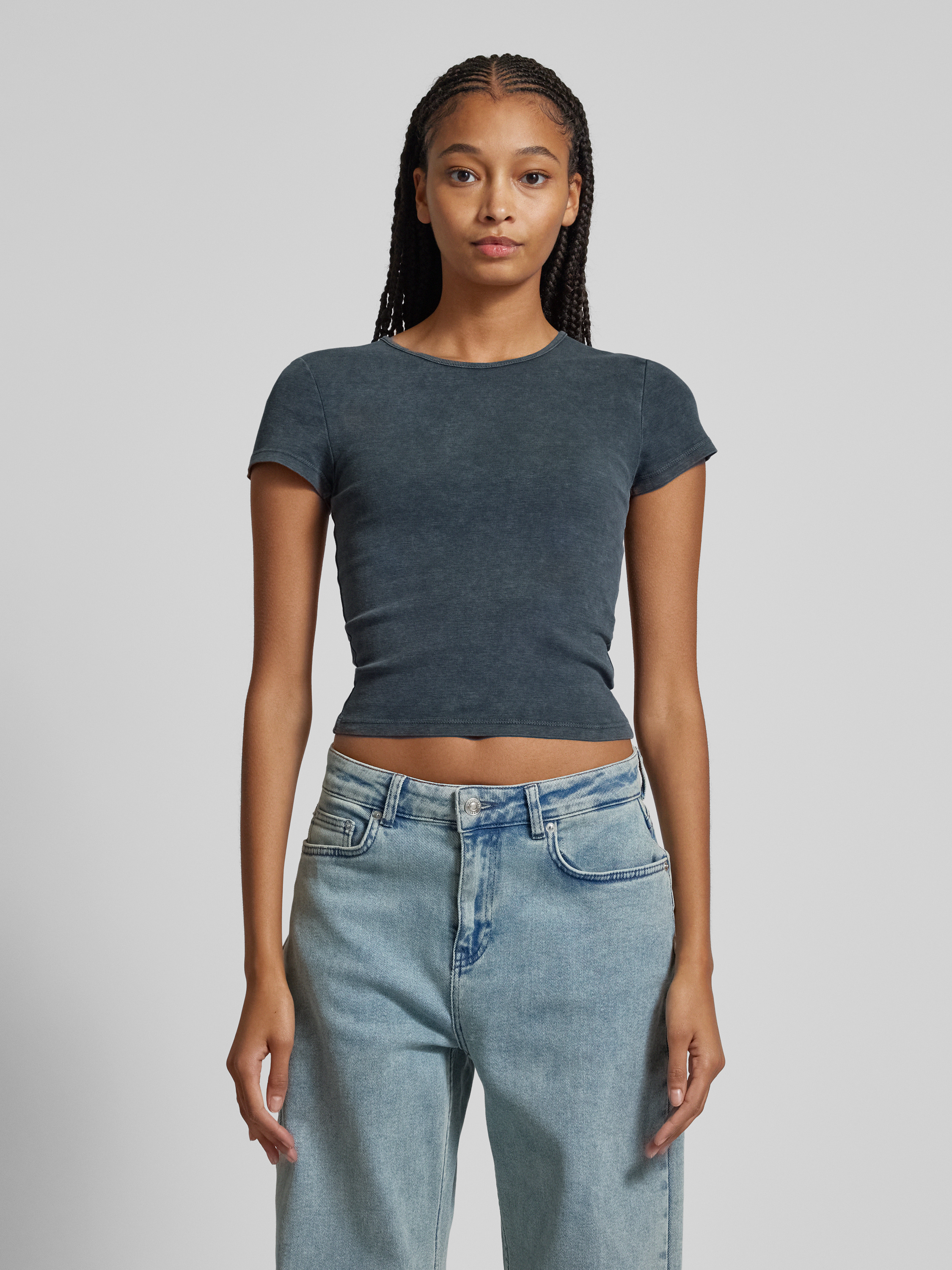 Das Damen T-Shirt von Gina Tricot präsentiert sich in reiner Baumwolle und überzeugt durch seinen figurbetonten Slim Fit. Der Used-Look verleiht dem Kleidungsstück eine lässige Note, während der klassische Rundhalsausschnitt vielseitig kombinierbar ist. Ideal für einen unkomplizierten, stilvollen Alltagslook.