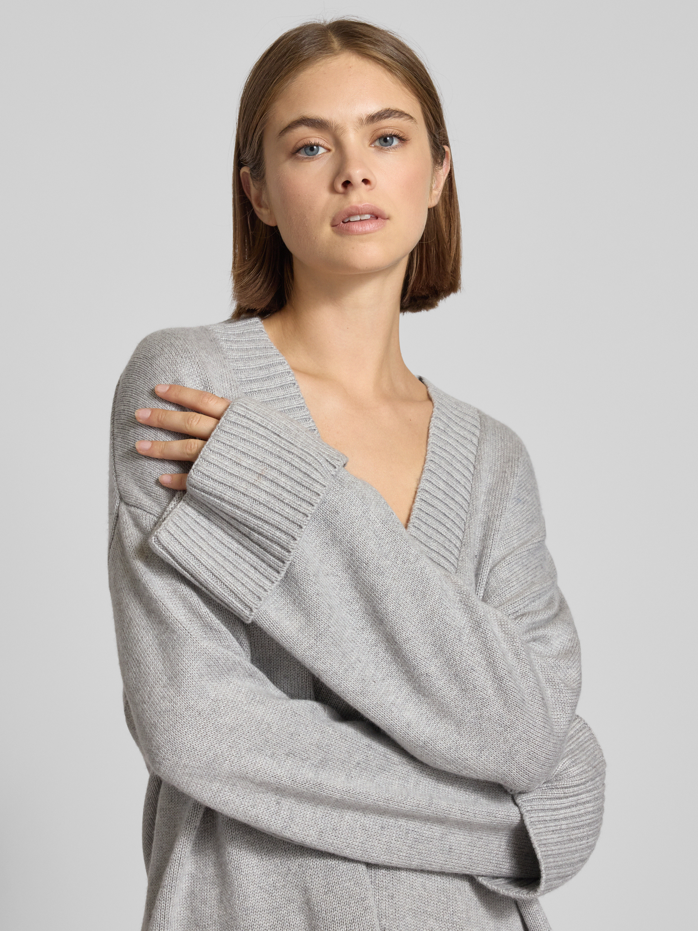 Gina TricotStrickpullover mit V-Ausschnitt in hellgrau melange
