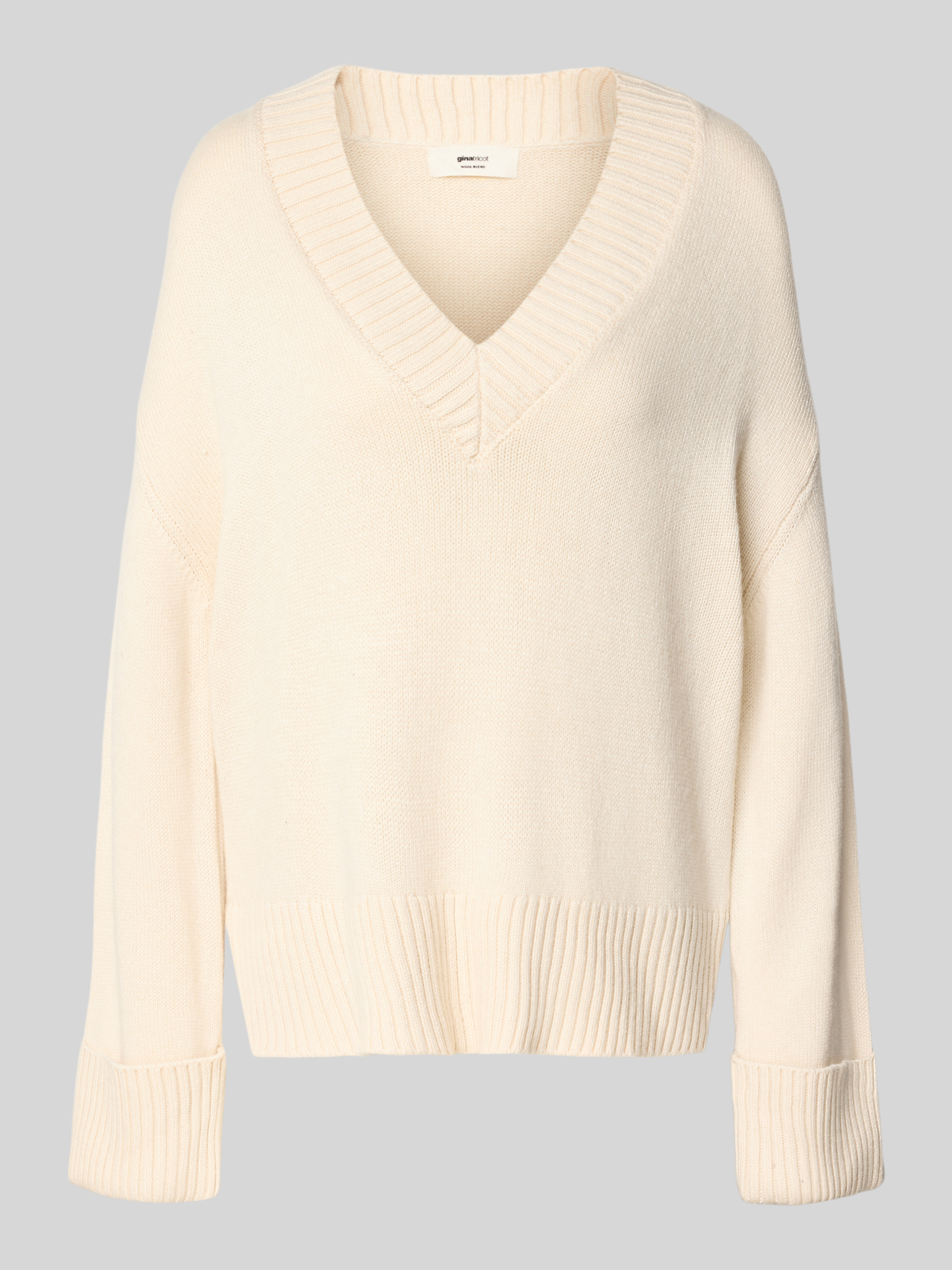 Der Damen Strickpullover von Gina Tricot zeichnet sich durch einen lockeren Schnitt und weite Ärmel aus, wodurch Bewegungsfreiheit entsteht. Überschnittene Schultern und der V-Ausschnitt sorgen für eine entspannte Optik, während gerippte Abschlüsse den Look harmonisch abrunden. So eignet sich das Modell für vielseitige Kombinationen.