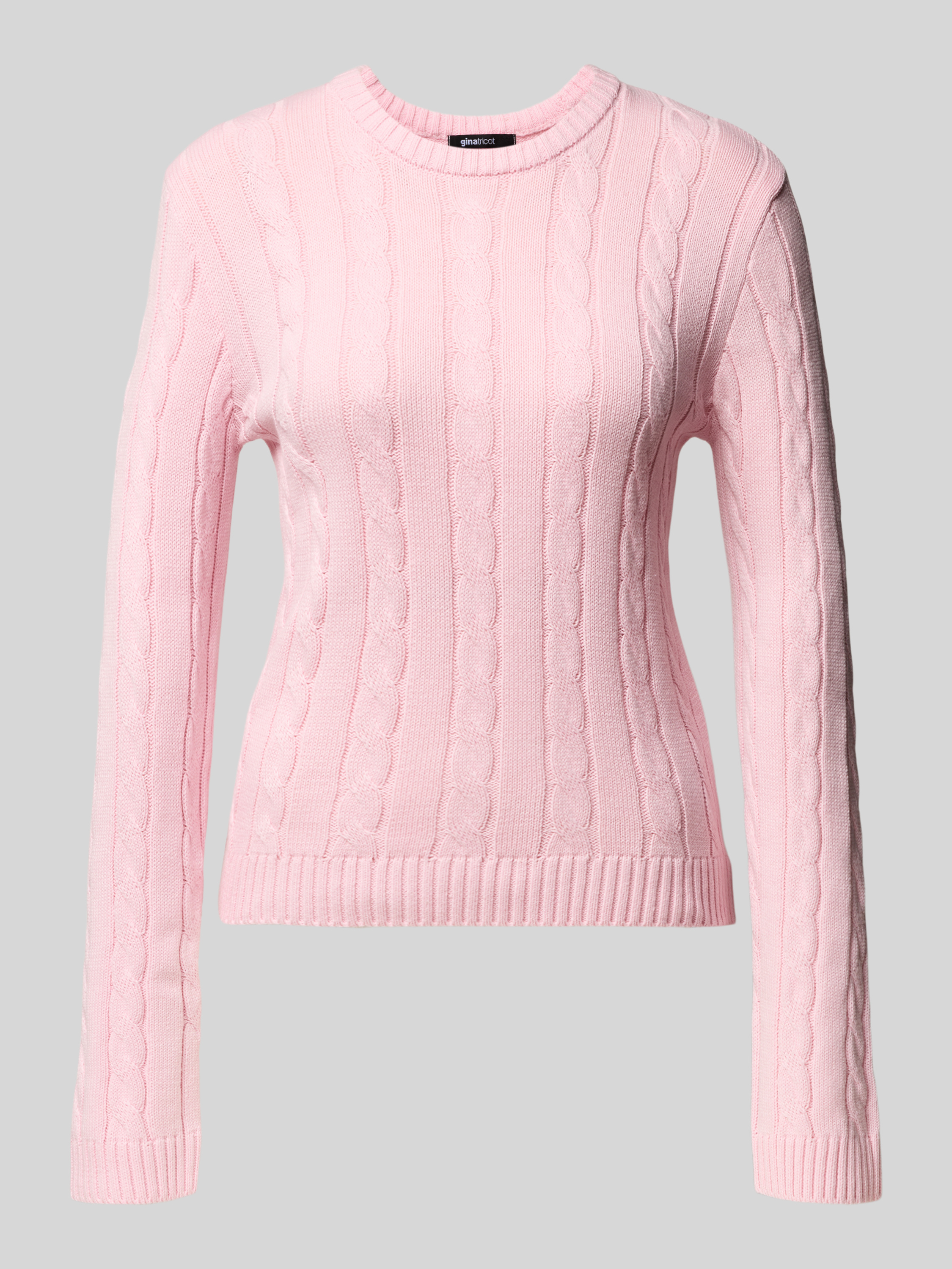 Der Damen-Strickpullover von Gina Tricot zeigt ein klassisches Zopfmuster, das durch den eng anliegenden Schnitt dezent betont wird. Dank des Baumwoll-Mix fühlt sich das Material angenehm auf der Haut an und sorgt für ein ausgewogenes Tragegefühl. Mit Rundhalsausschnitt und sorgfältig gearbeiteten Abschlüssen ergänzt das Modell vielseitige Outfits.