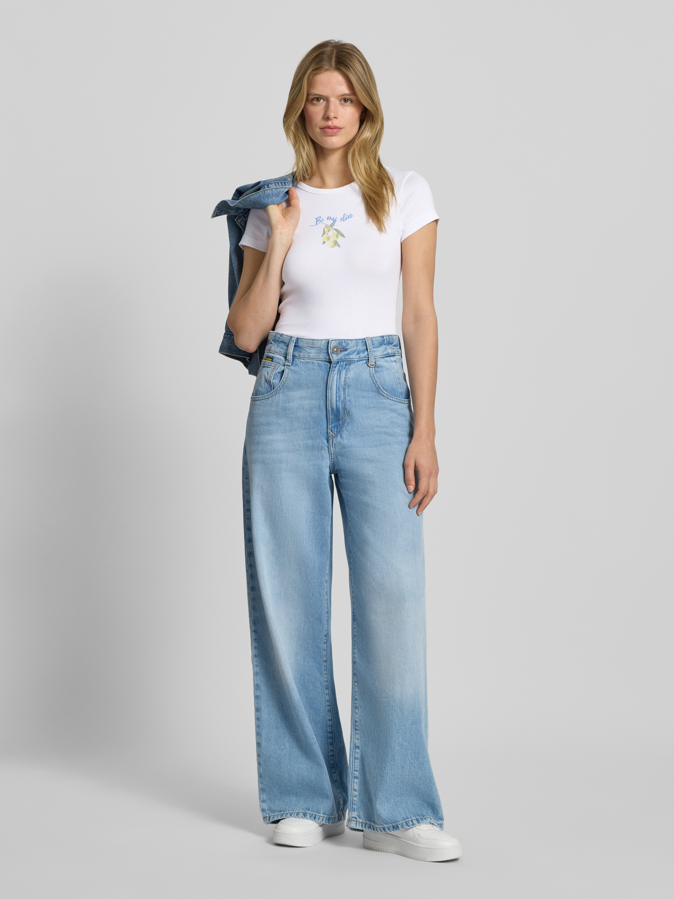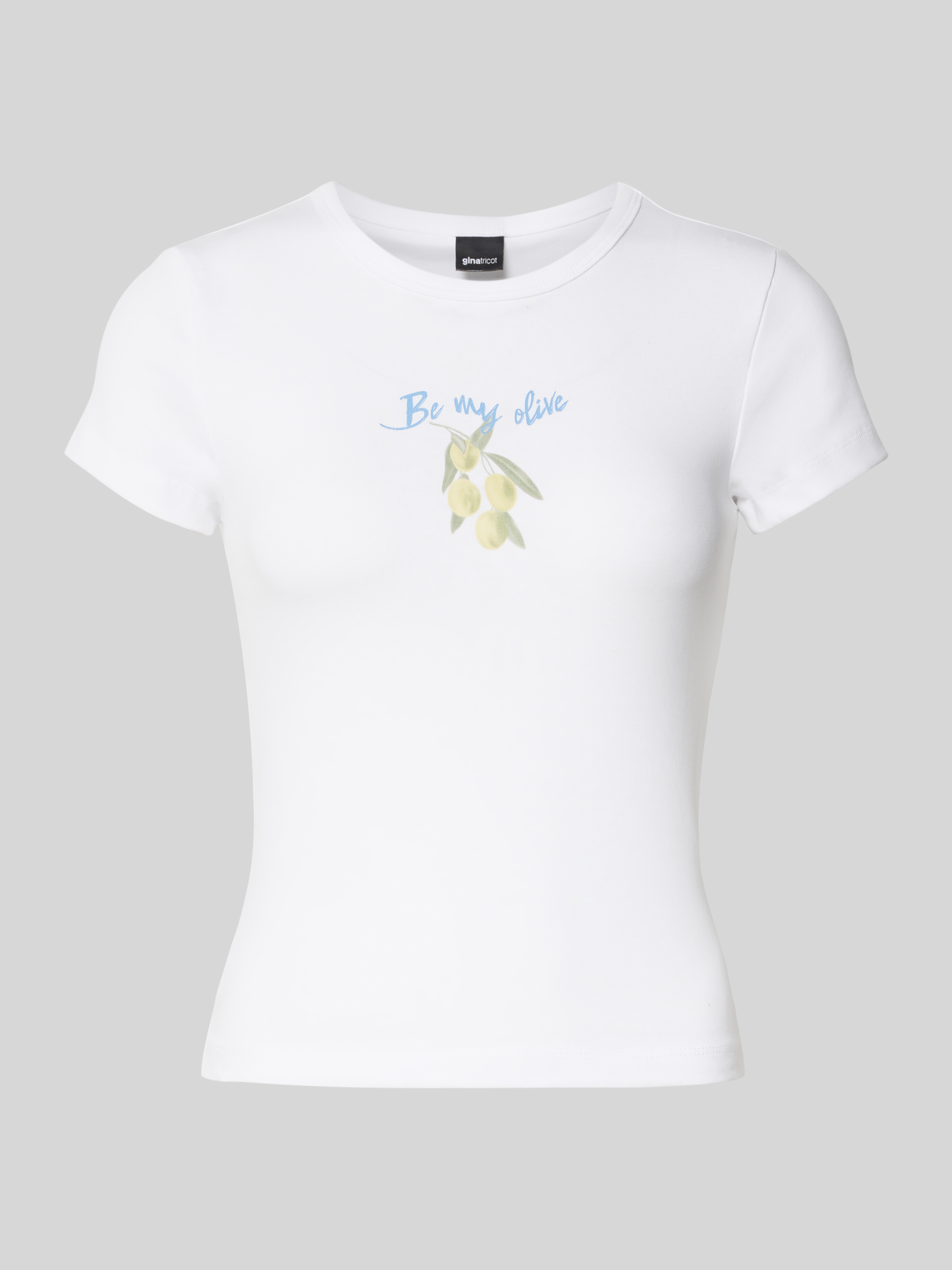 Gina TricotT-Shirt mit Motiv-Print und Rundhalsausschnitt in offwhite
