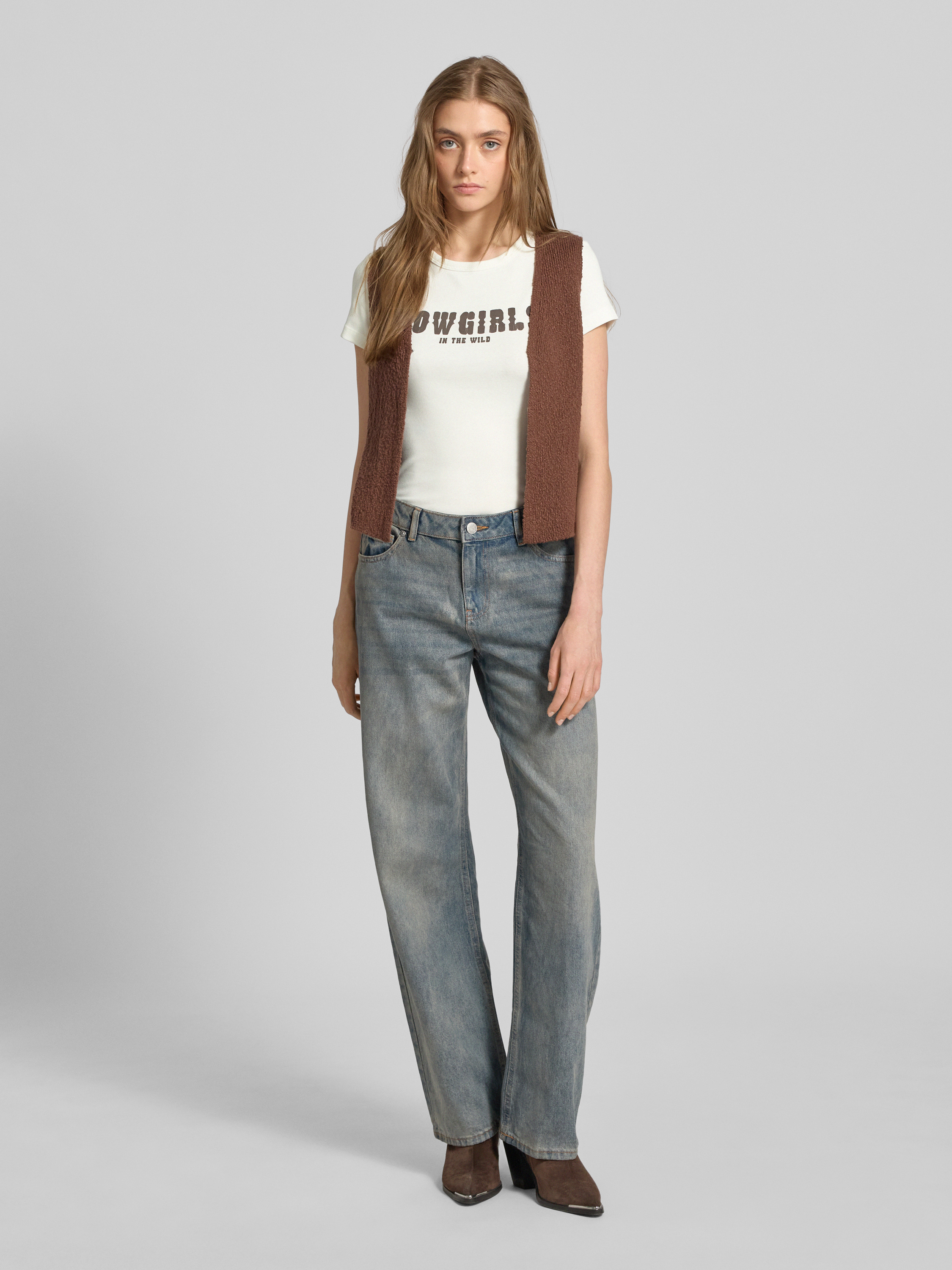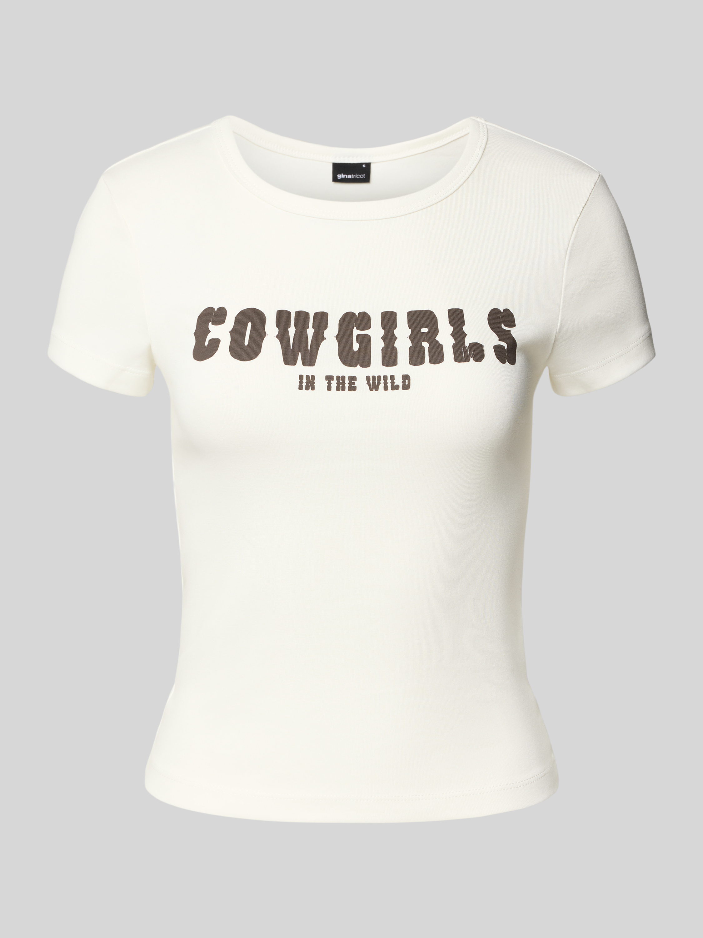 Das T-Shirt von Gina Tricot vereint durchdachte Details mit einem Hauch von Individualität. Der körpernahe Schnitt und der Rundhalsausschnitt aus einem Baumwoll-Elasthan-Mix sorgen für eine angenehme Passform. Der Statement-Print verleiht jedem Outfit eine persönliche Note und macht es vielseitig kombinierbar.