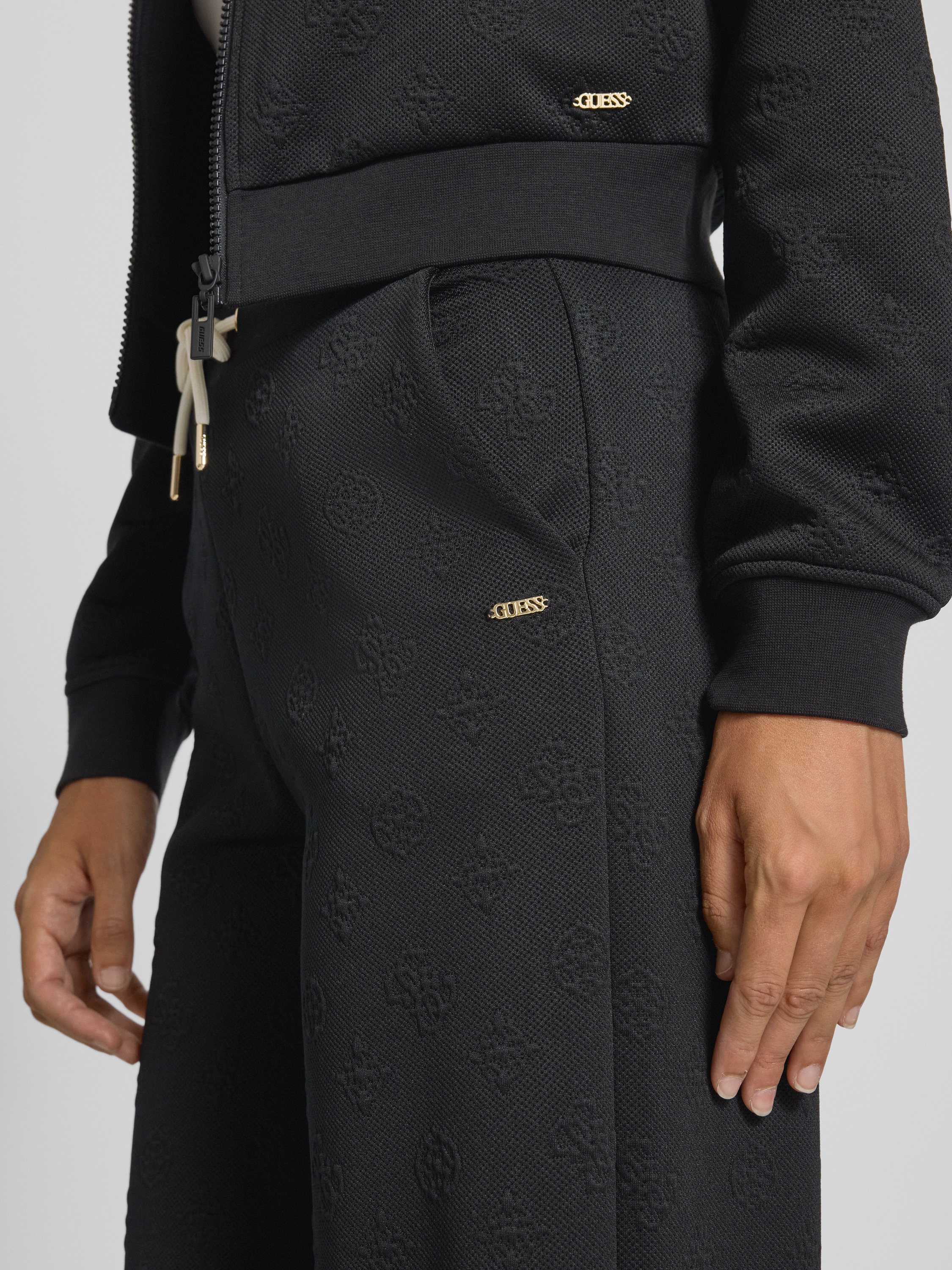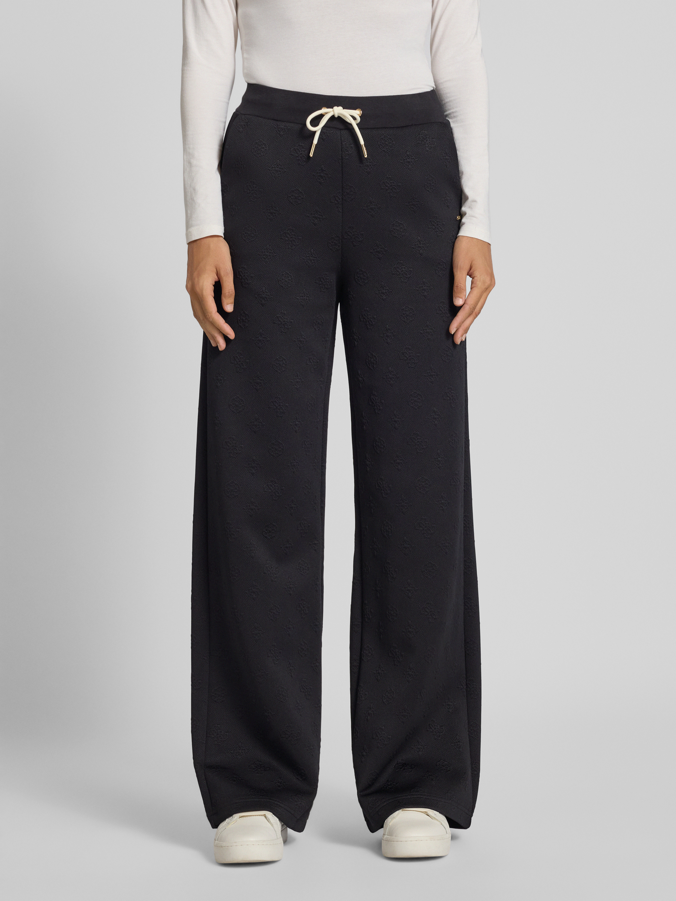 Guess ActivewearWide Leg Sweathose mit Strukturmuster Modell 'PEONY' in black