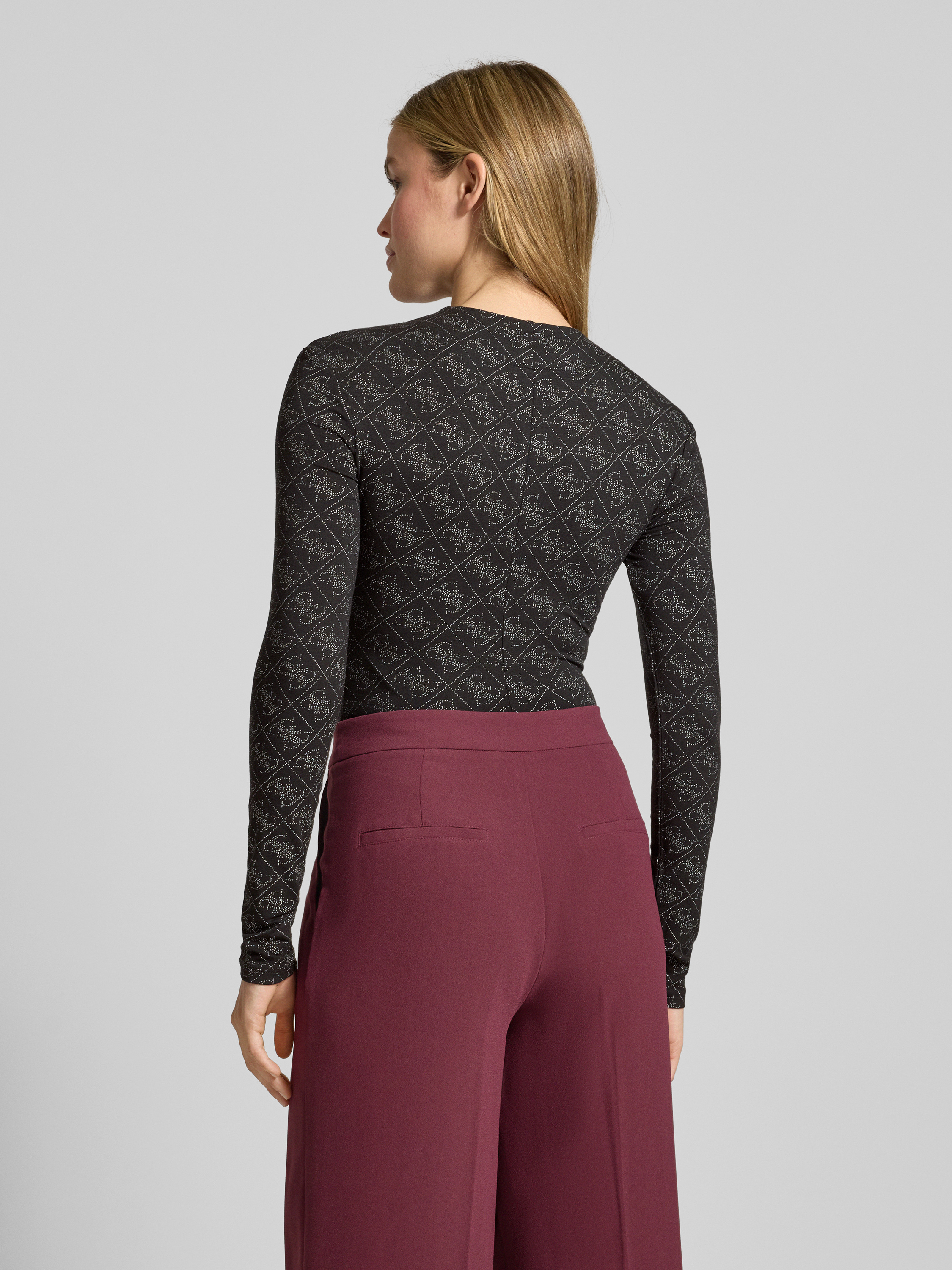 Der Damen Body von Guess Modell TEODORA schmiegt sich durch den Viskose-Elasthan-Mix angenehm an die Silhouette und sorgt für ein bequemes Tragegefühl. Das Allover-Logo-Muster verleiht dem Look einen dezenten Akzent. Durch die körpernahe Passform entsteht ein vielseitig kombinierbares Basic für viele Gelegenheiten.