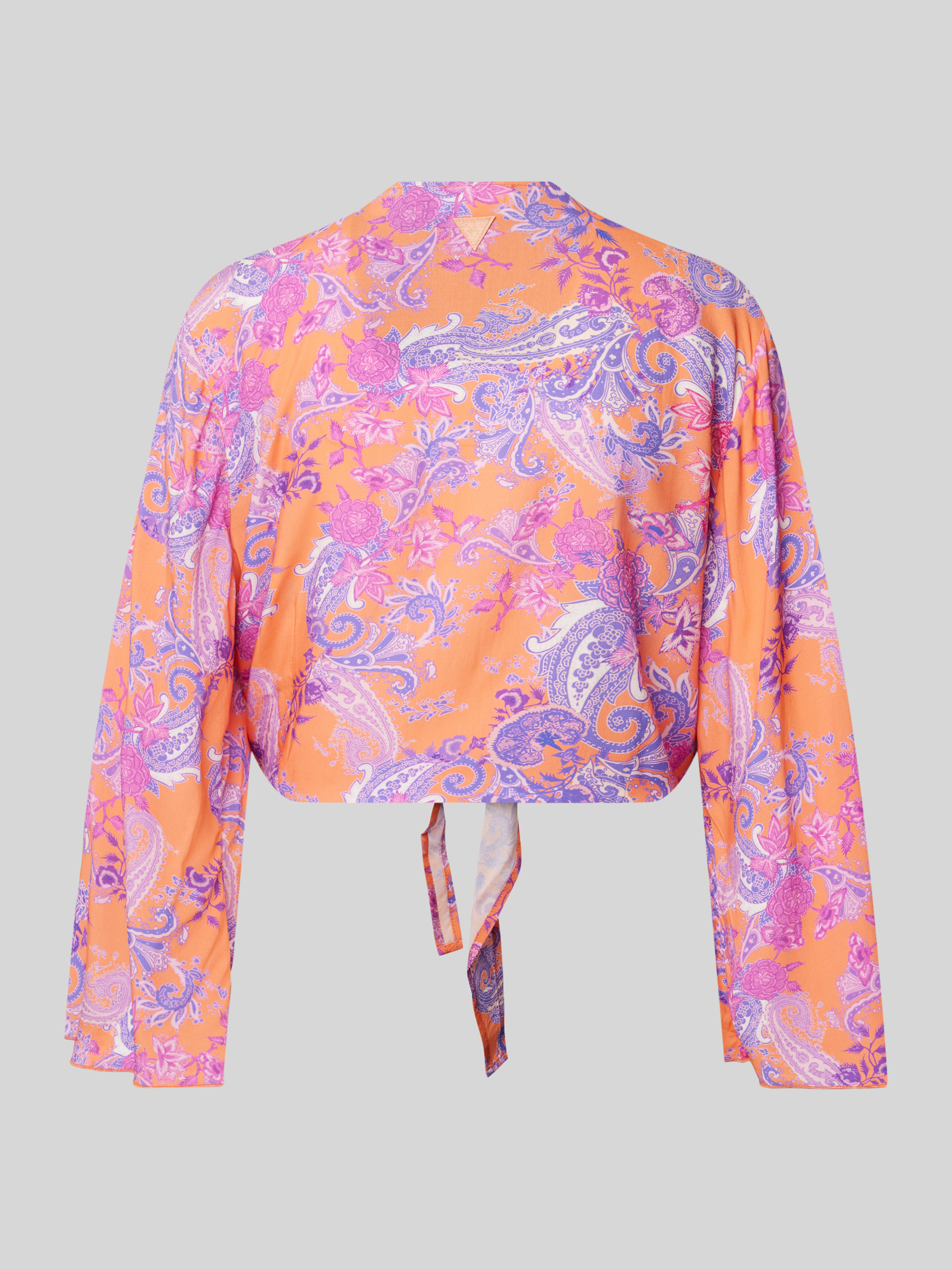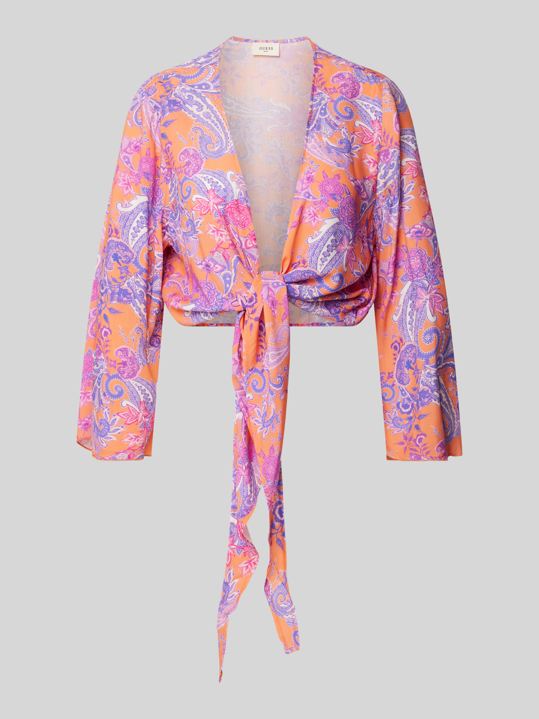 Das GUESS Crop Top mit Knotendetail aus reiner Viskose überzeugt durch seinen lockeren Schnitt und den tiefen V-Ausschnitt, der eine lässige Eleganz vermittelt. Das verkürzte Design eignet sich besonders für warme Tage und sorgt für ein luftiges Tragegefühl.