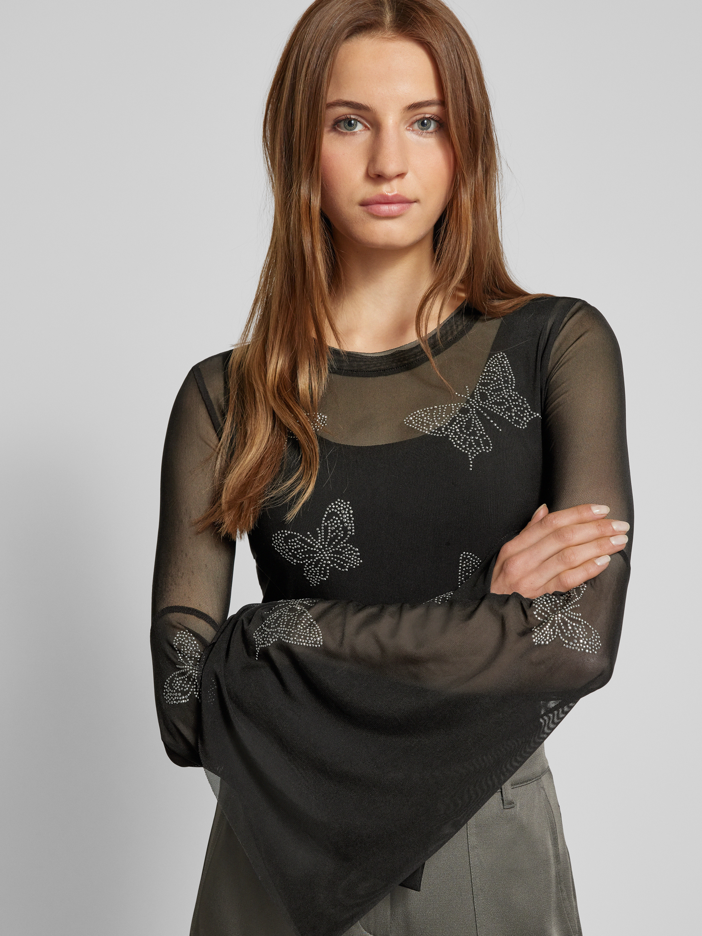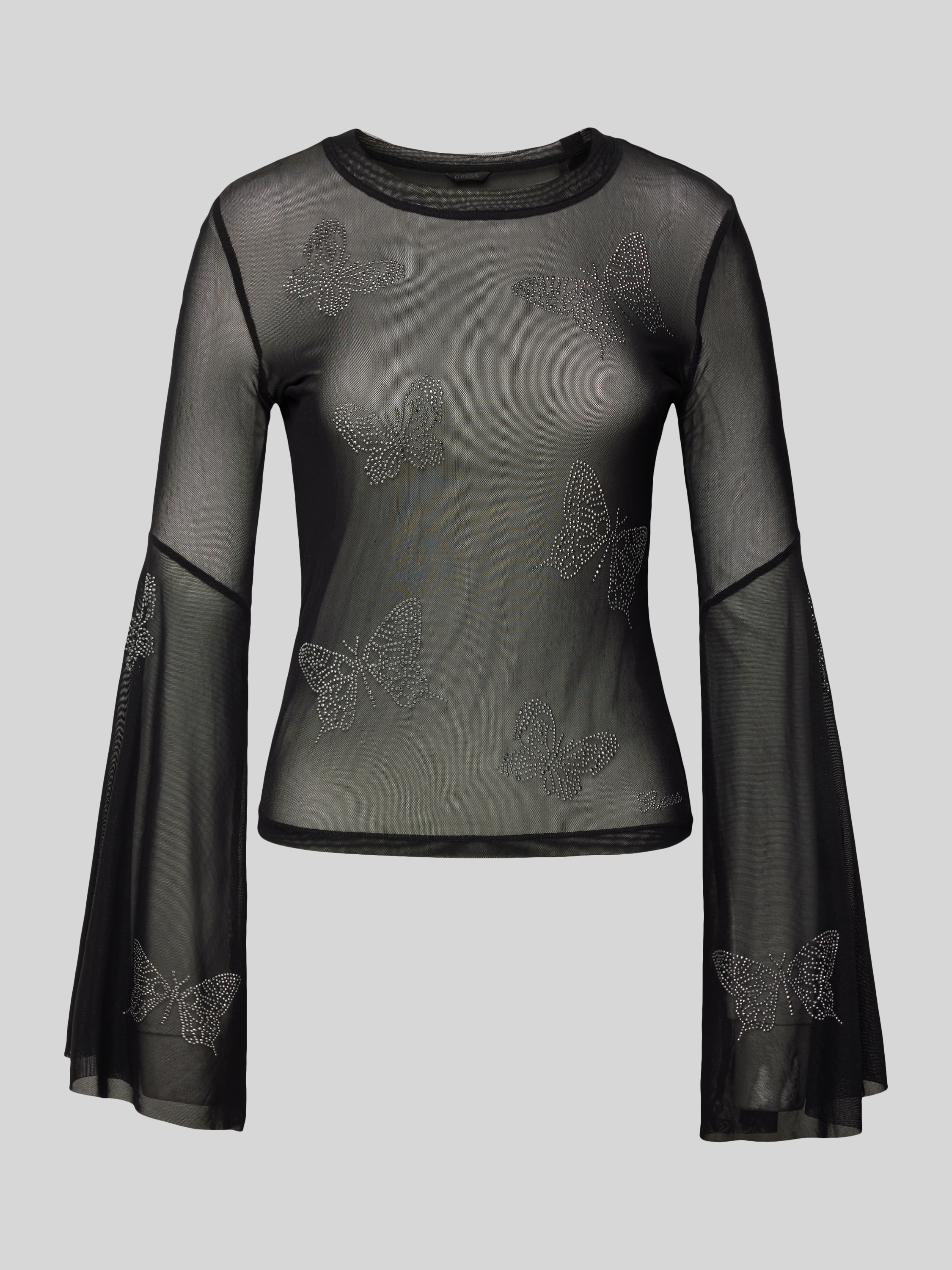 GuessFlared Longsleeve in semitransparentem Design in black