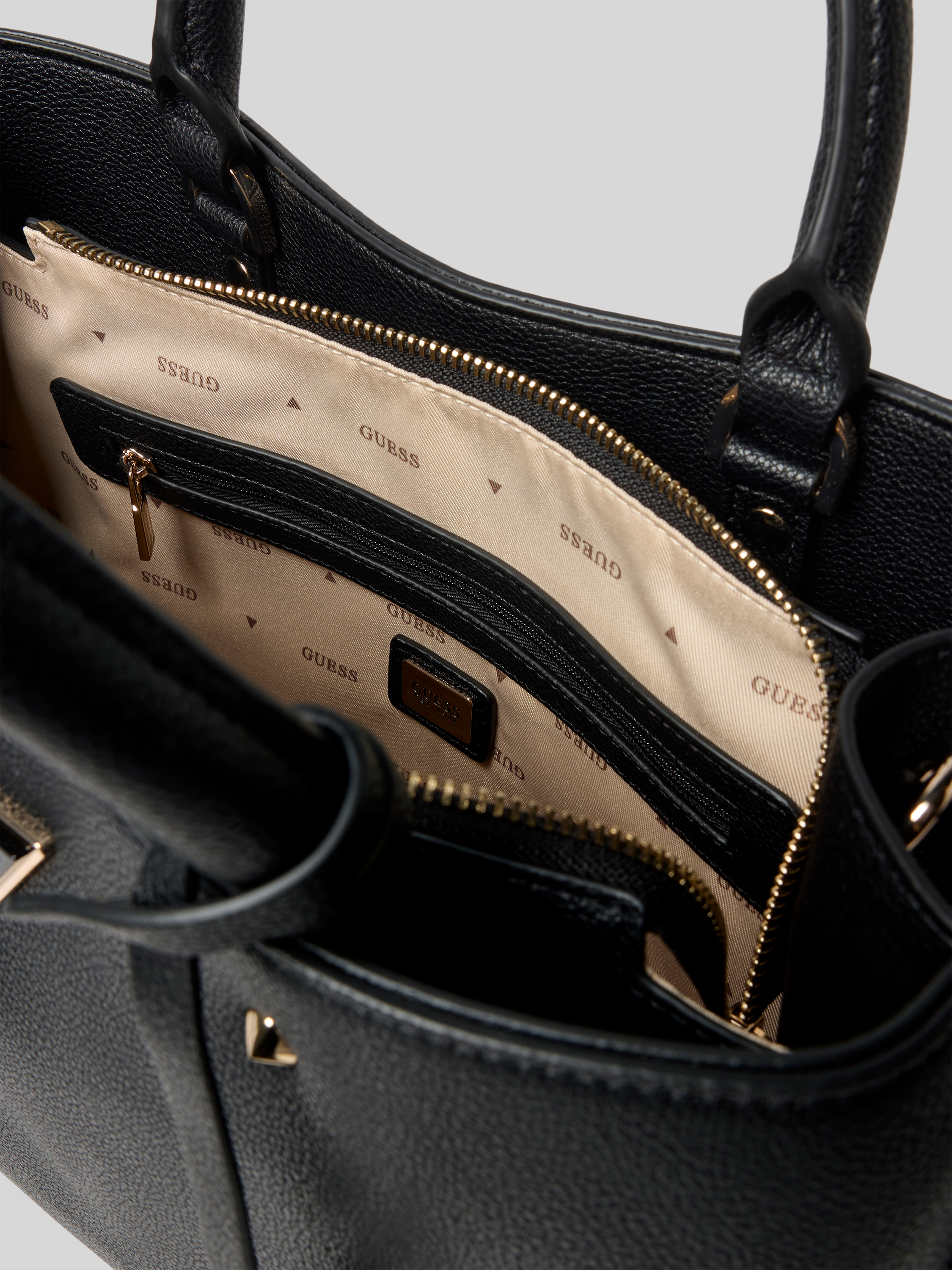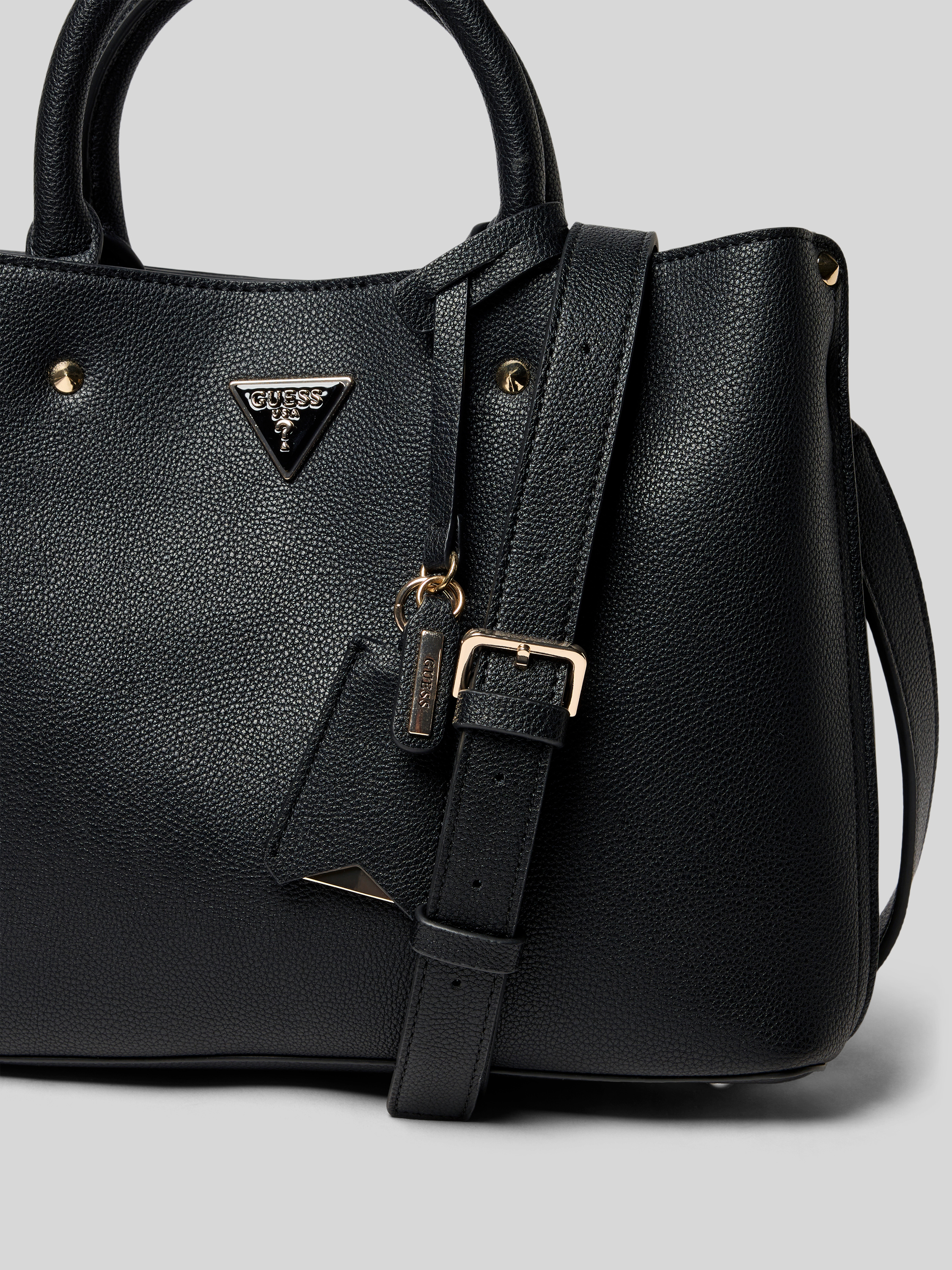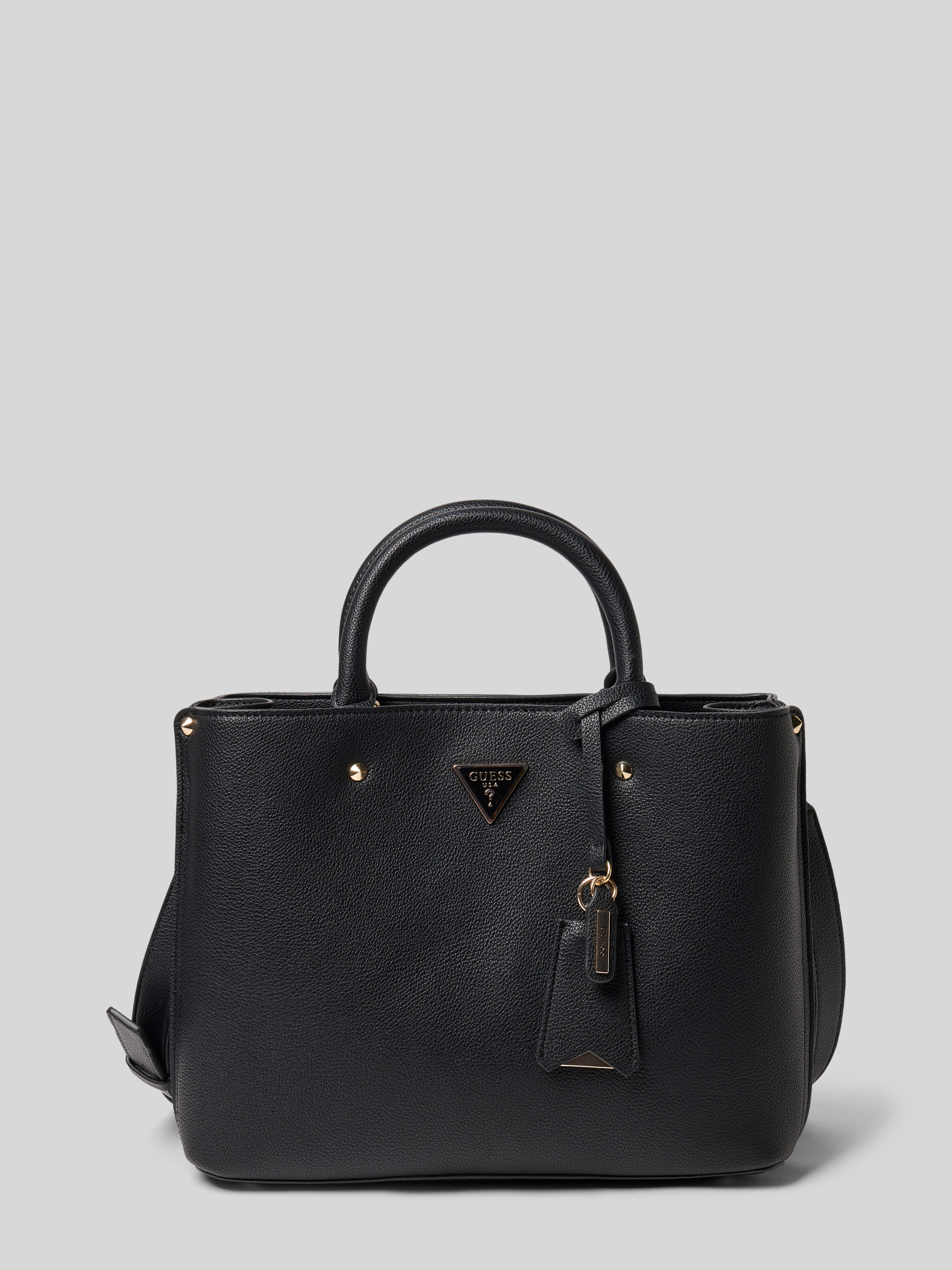 Die Handtasche von Guess, Modell 'ECO MERIDIAN II', fällt durch ihre klare Linienführung und dezente Label-Applikation ins Auge. Dank Tragehenkel und Schulterriemen lässt sich die Tasche unkompliziert im Alltag einsetzen, wodurch verschiedene Tragevarianten möglich werden. Das geräumige Hauptfach sorgt dafür, dass man alles Wichtige stets griffbereit hat.