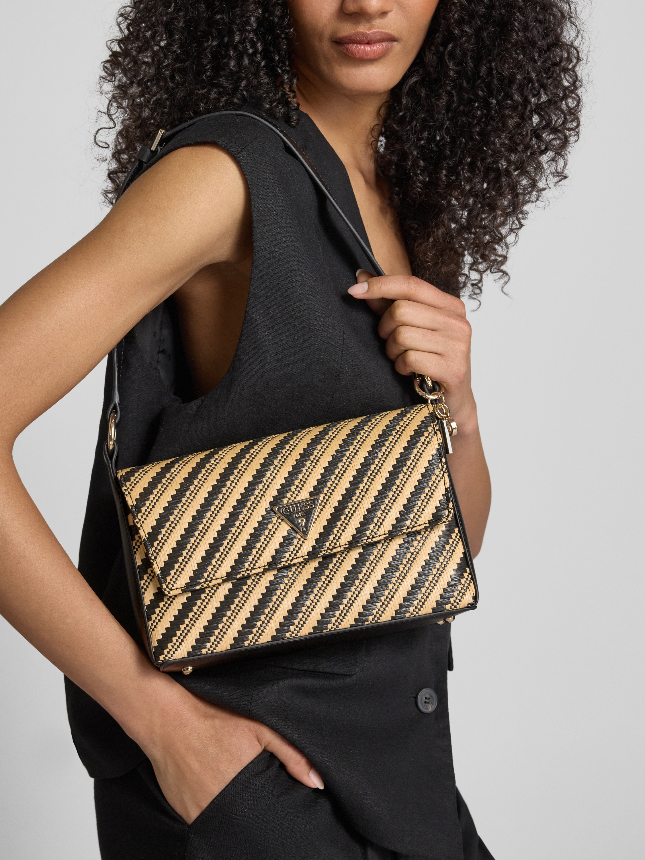 Die Handtasche 'SIMONA' von GUESS vereint Eleganz und Funktionalität durch ihr durchdachtes Design mit einem Hauptfach, das sich einfach über einen Magnetverschluss öffnen lässt. Der verstellbare Schulterriemen sorgt für angenehmen Tragekomfort, während die dezente Label-Applikation stilvolle Akzente setzt.