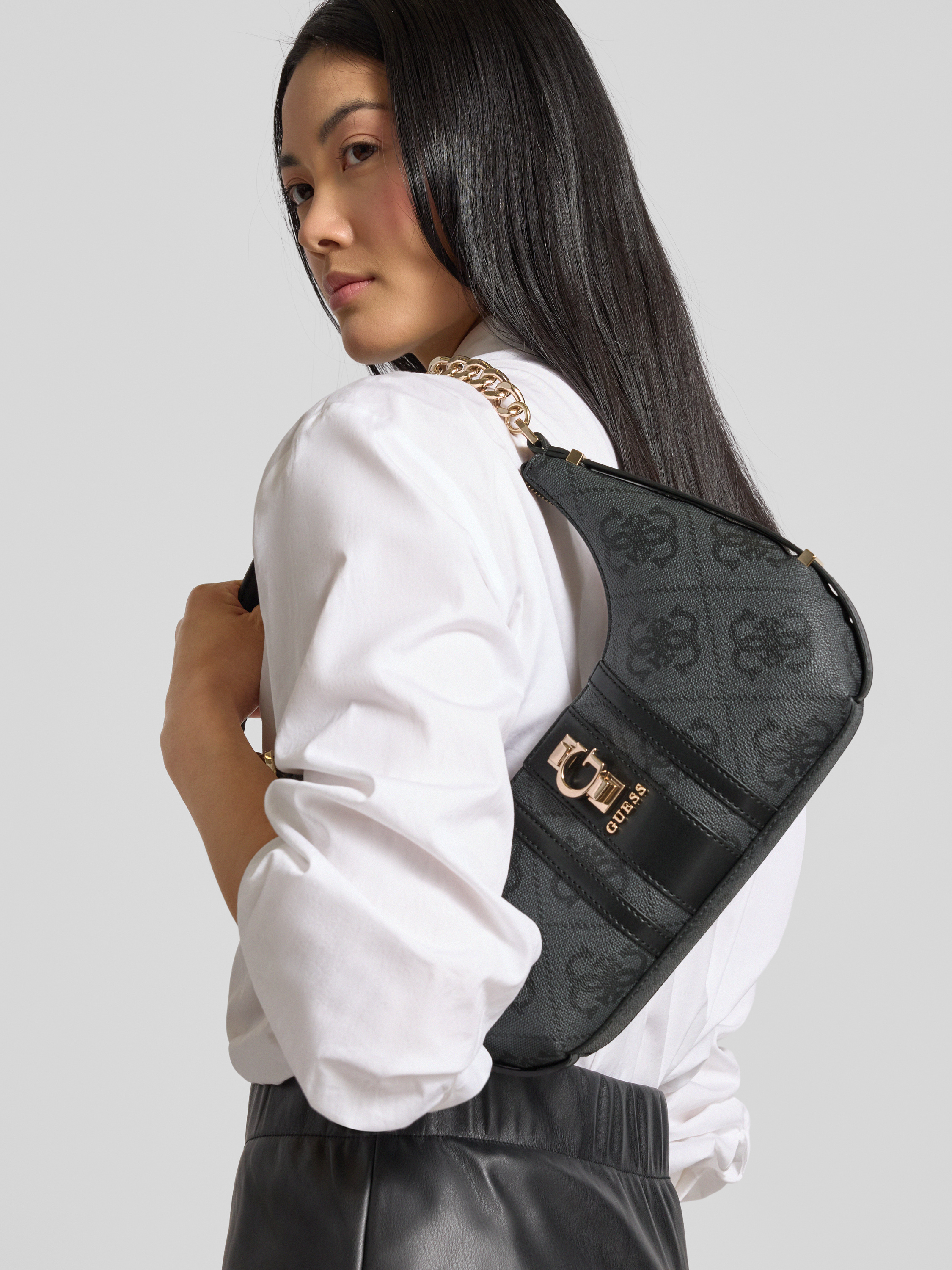 GuessHandtasche mit Label-Detail Modell 'ERENIA' in anthrazit