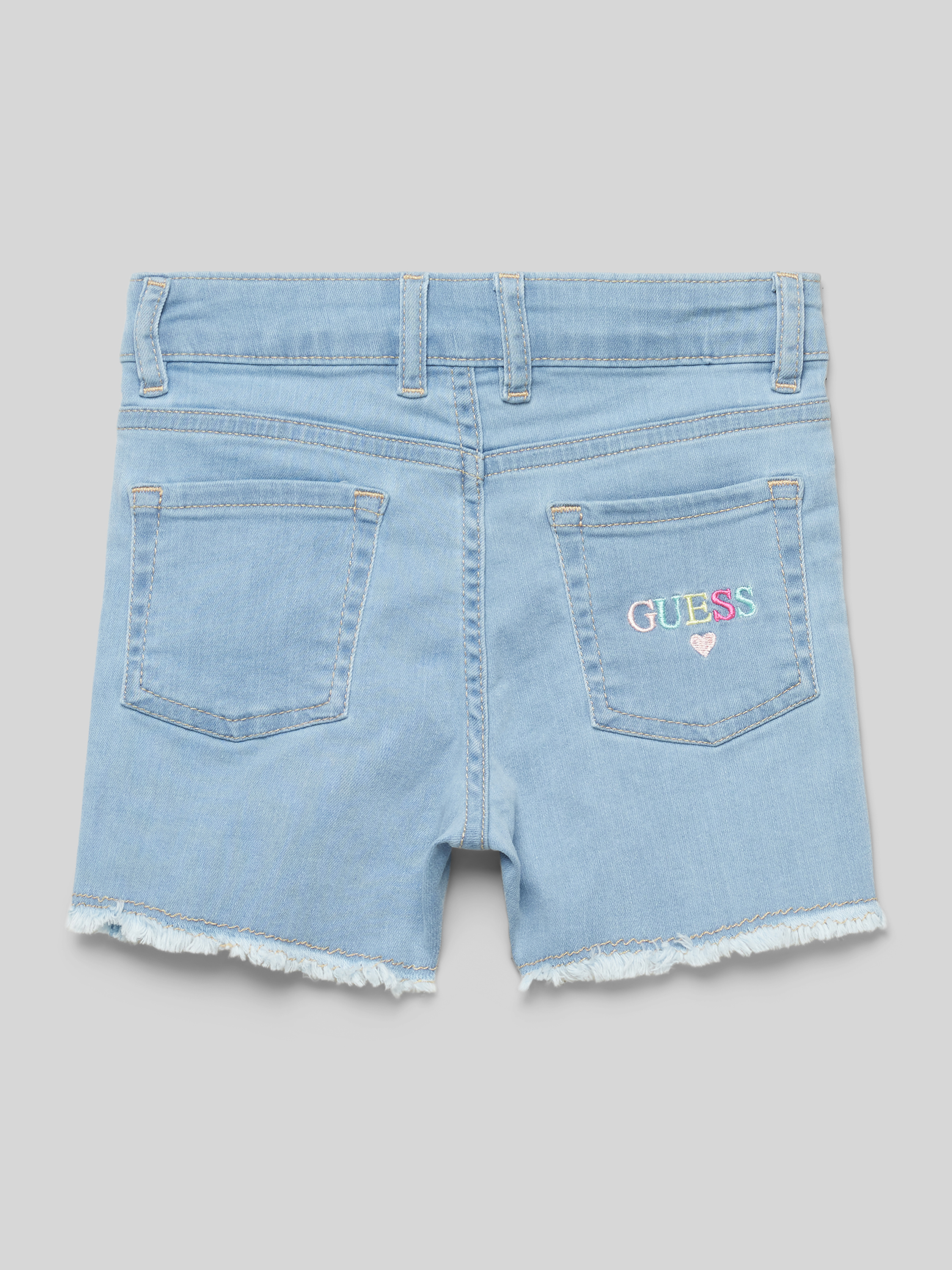 Die Jeansshorts von GUESS bieten durch ihren Regular Fit und das 5-Pocket-Design eine komfortable Passform für Kinder, die Bewegungsfreiheit ermöglicht. Der Baumwoll-Mix mit Stretch-Anteil sorgt für angenehmen Tragekomfort. Gürtelschlaufen und Fransen verleihen dem Modell einen modernen Look.
