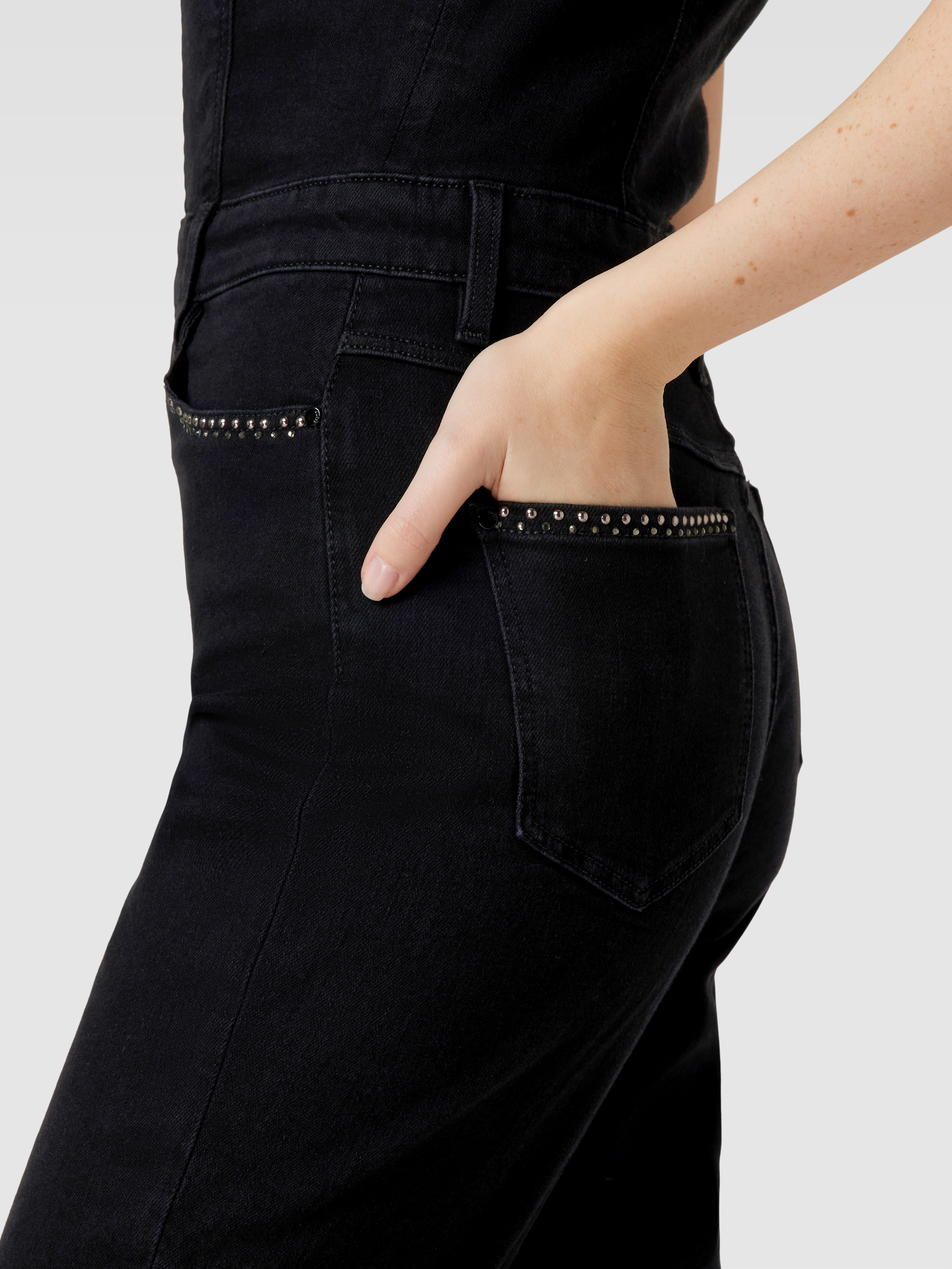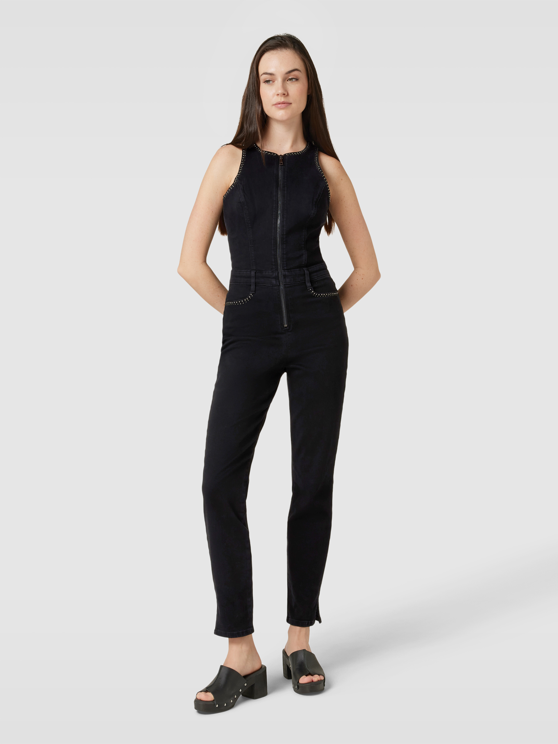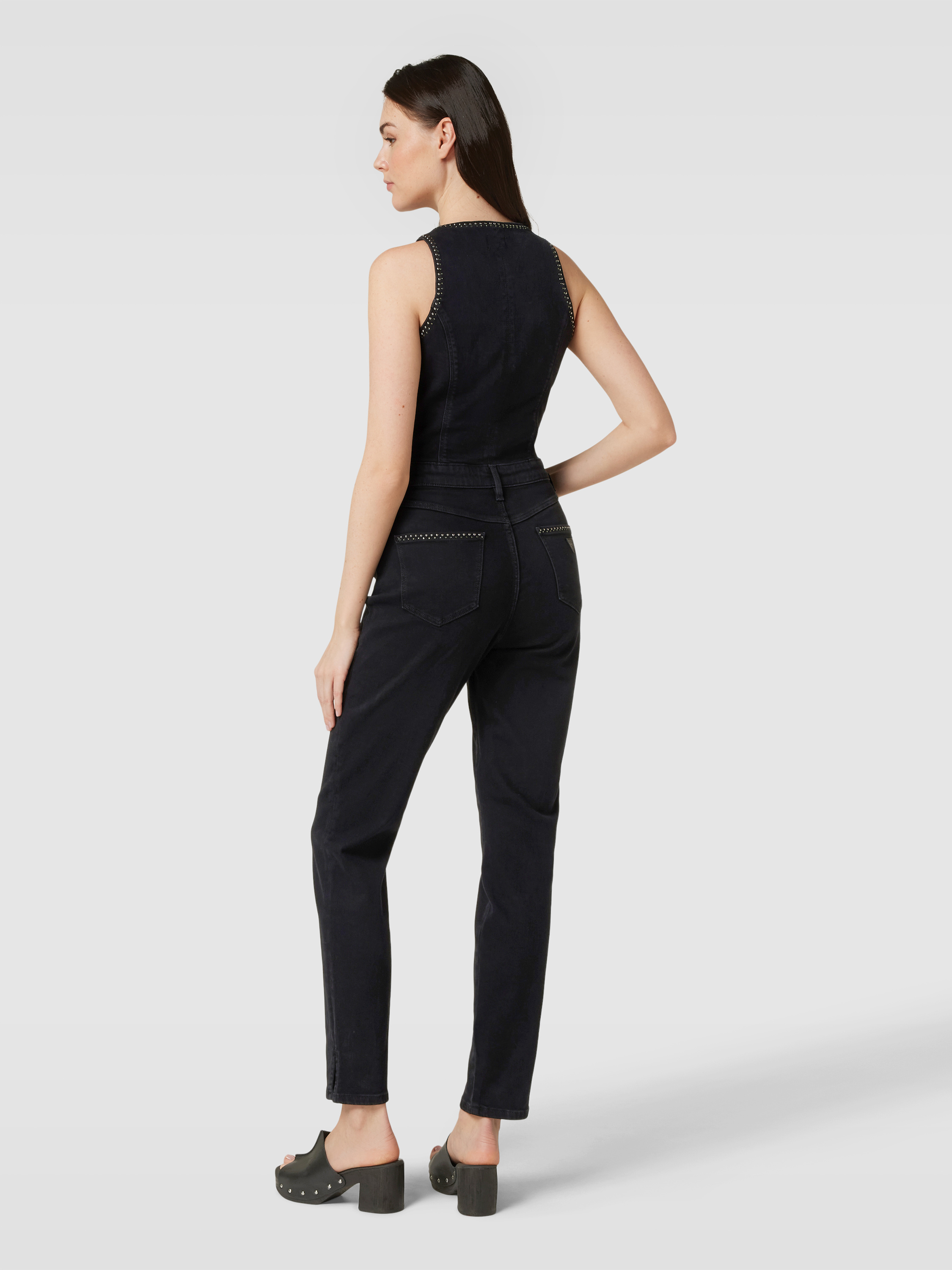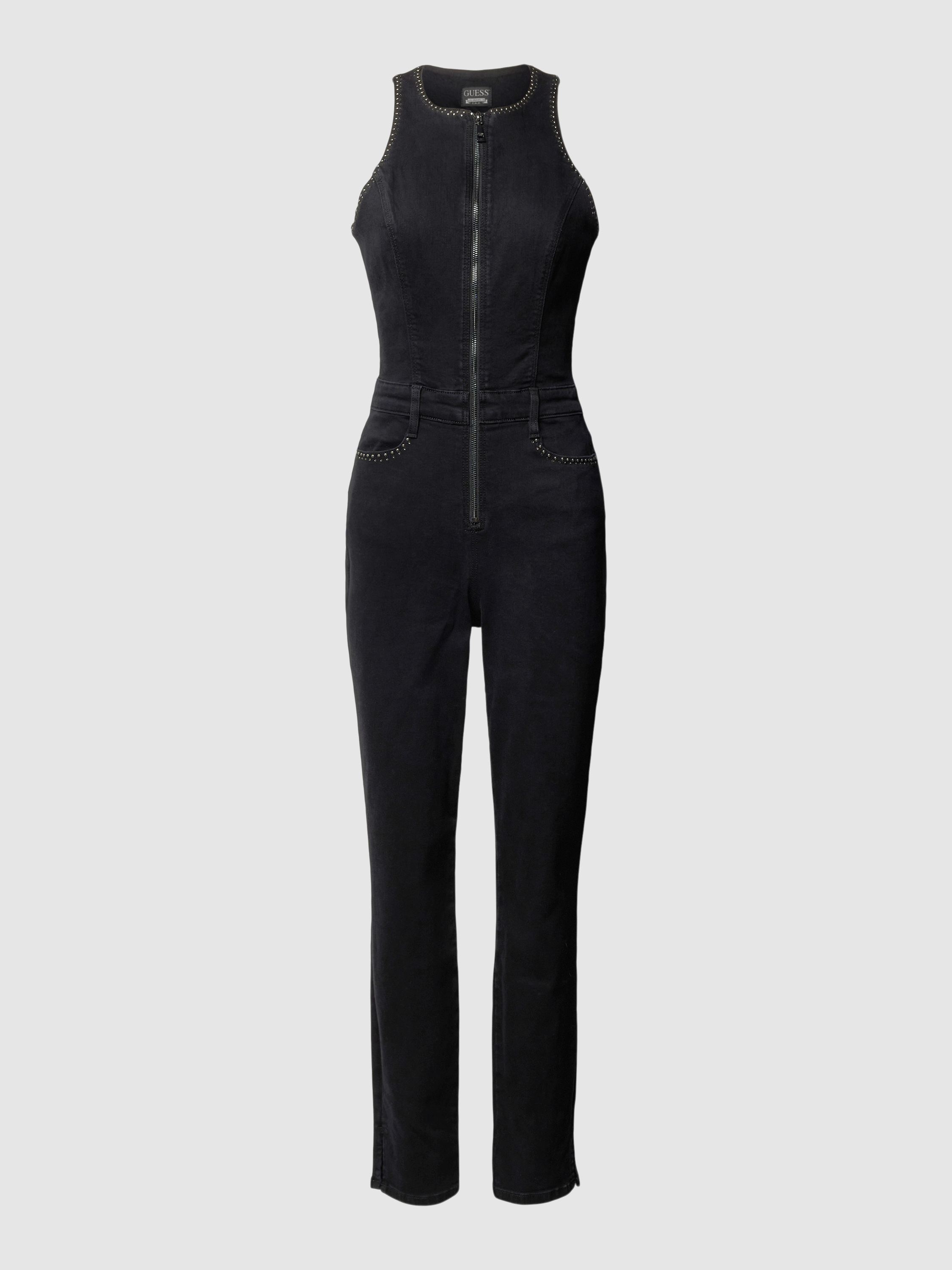 Der Jumpsuit im Denim-Look Modell 'CONCHITA' von GUESS kombiniert einen Baumwoll-Mix mit Stretch-Anteil für eine körpernahe Passform, die sich angenehm trägt. Ziersteinbesatz und ein ärmelloses Design verleihen dem unifarbenen Look eine besondere Note. Praktische Eingriff- und Gesäßtaschen runden das Erscheinungsbild ab.