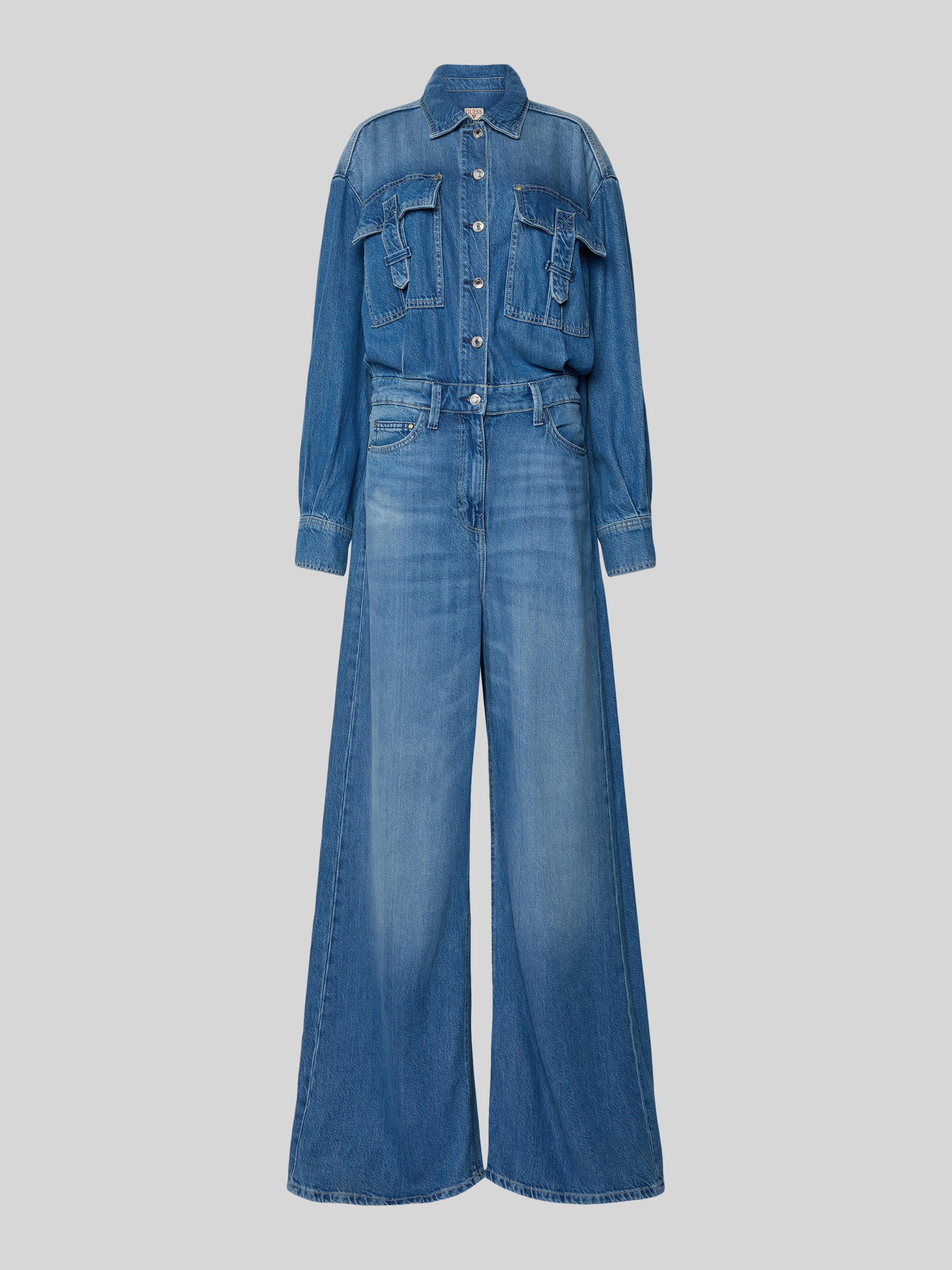 Der Damen-Jumpsuit von Guess präsentiert sich mit lockerer Denim-Optik und leicht taillierter Silhouette, die Bewegungsfreiheit ermöglicht und zugleich eine feminine Linie betont. Der Lyocell-Baumwoll-Mix fühlt sich angenehm weich auf der Haut an. Dank Blusenkragen, Brusttaschen und 5-Pocket-Design wirkt das Modell zugleich lässig und strukturiert.