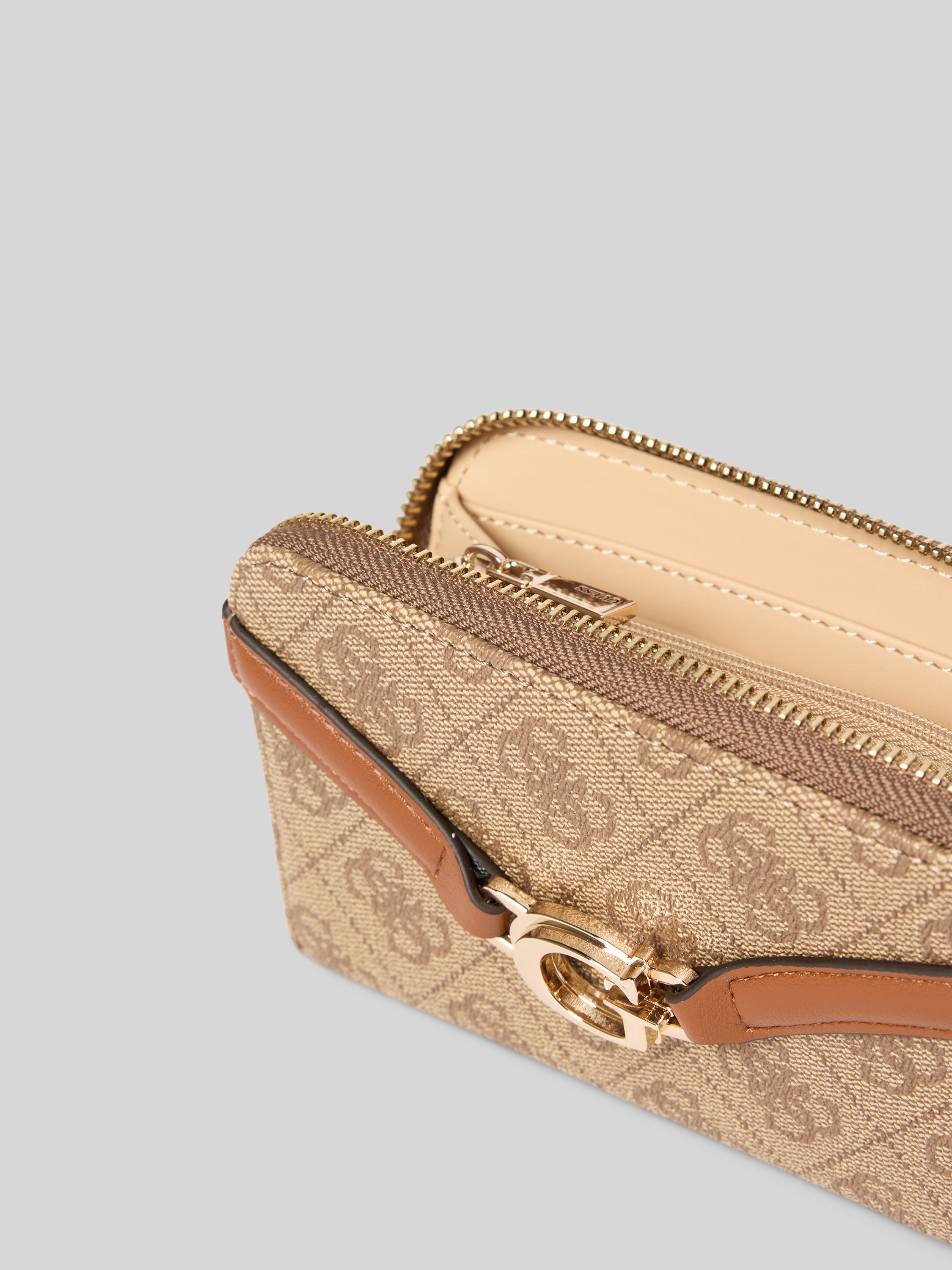 Das Damen Portemonnaie von Guess, Modell 'DEA', kombiniert ein markantes Logo-Muster mit einer dezenten Label-Applikation. Durch das strukturierte Design findet man im Hauptfach übersichtlich Platz für Karten und Scheine. Dank seiner handlichen Form lässt sich der Begleiter unkompliziert im Alltag einsetzen.