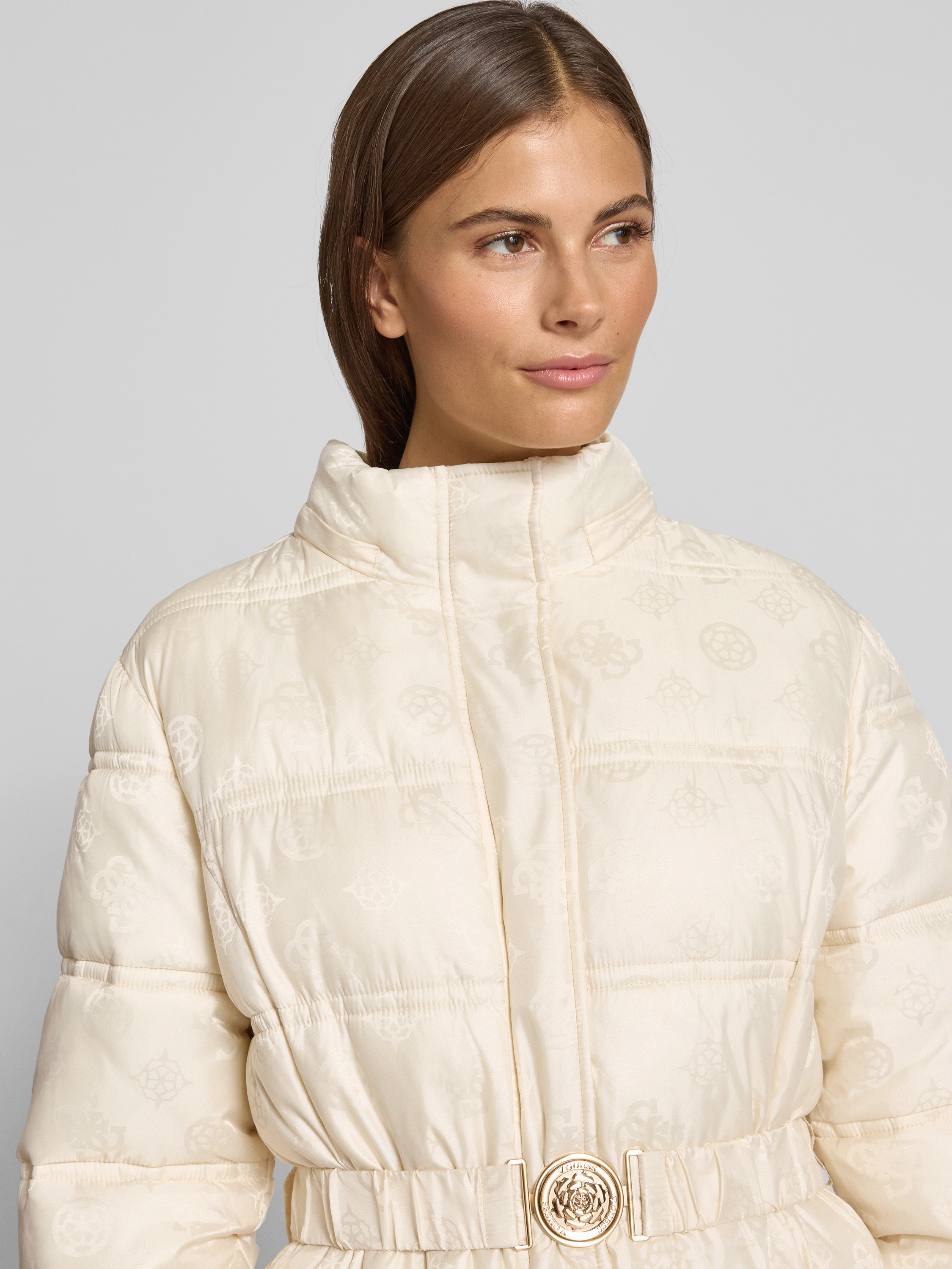 Der Damen Steppmantel von Guess fällt durch seinen taillierten Schnitt angenehm auf, während der Taillengürtel zusätzlichen Halt verleiht und die Silhouette betont. Die Kapuze sorgt bei wechselhaftem Wetter für Schutz, und in den Eingrifftaschen lassen sich kleine Dinge unkompliziert verstauen. So entsteht ein Mantel, der sich im Alltag vielseitig einsetzen lässt.