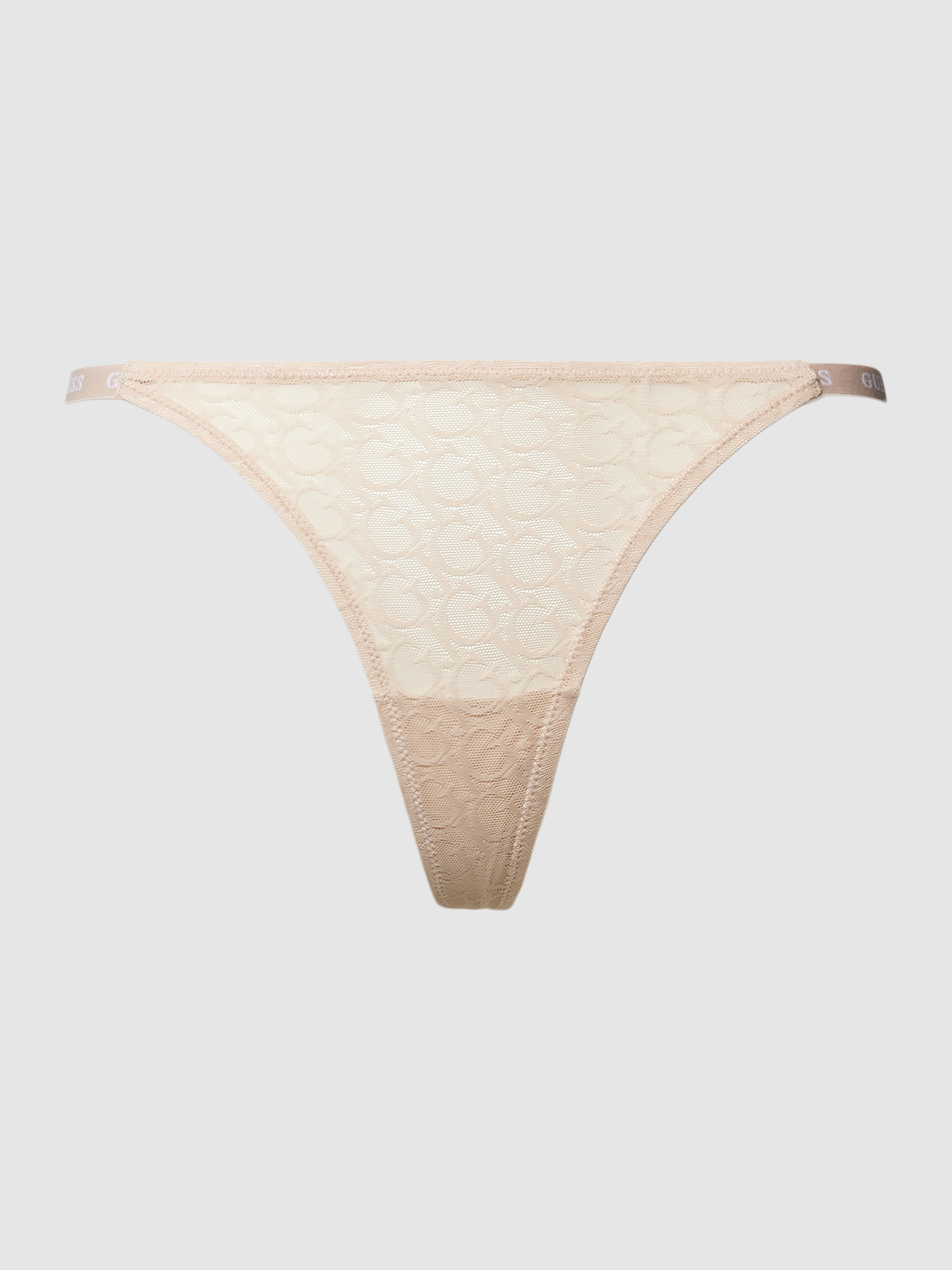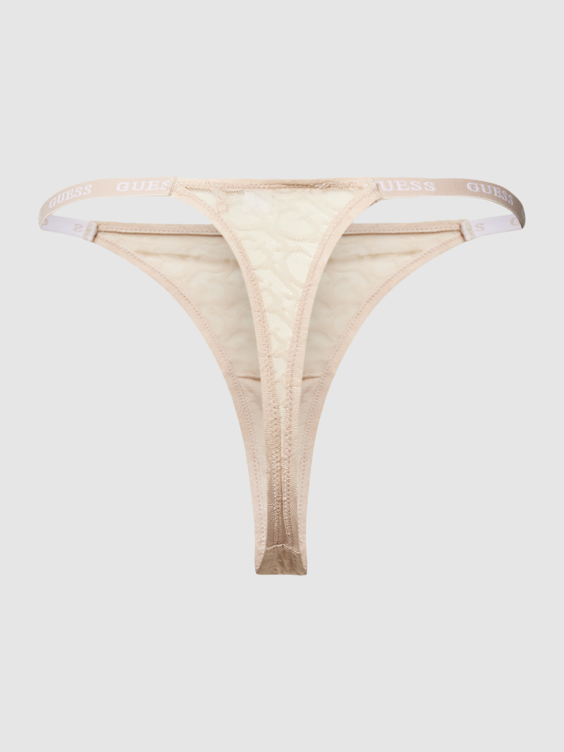Der Damen String von GUESS Modell 'EDYTHA' liegt durch den körpernahen Schnitt angenehm an und sorgt für ein dezentes Tragegefühl. Dank des Material-Mix mit Stretch-Anteil schmiegt sich das Modell flexibel an. Das unifarbene Design mit Logo-Muster wirkt dabei zurückhaltend und modern.