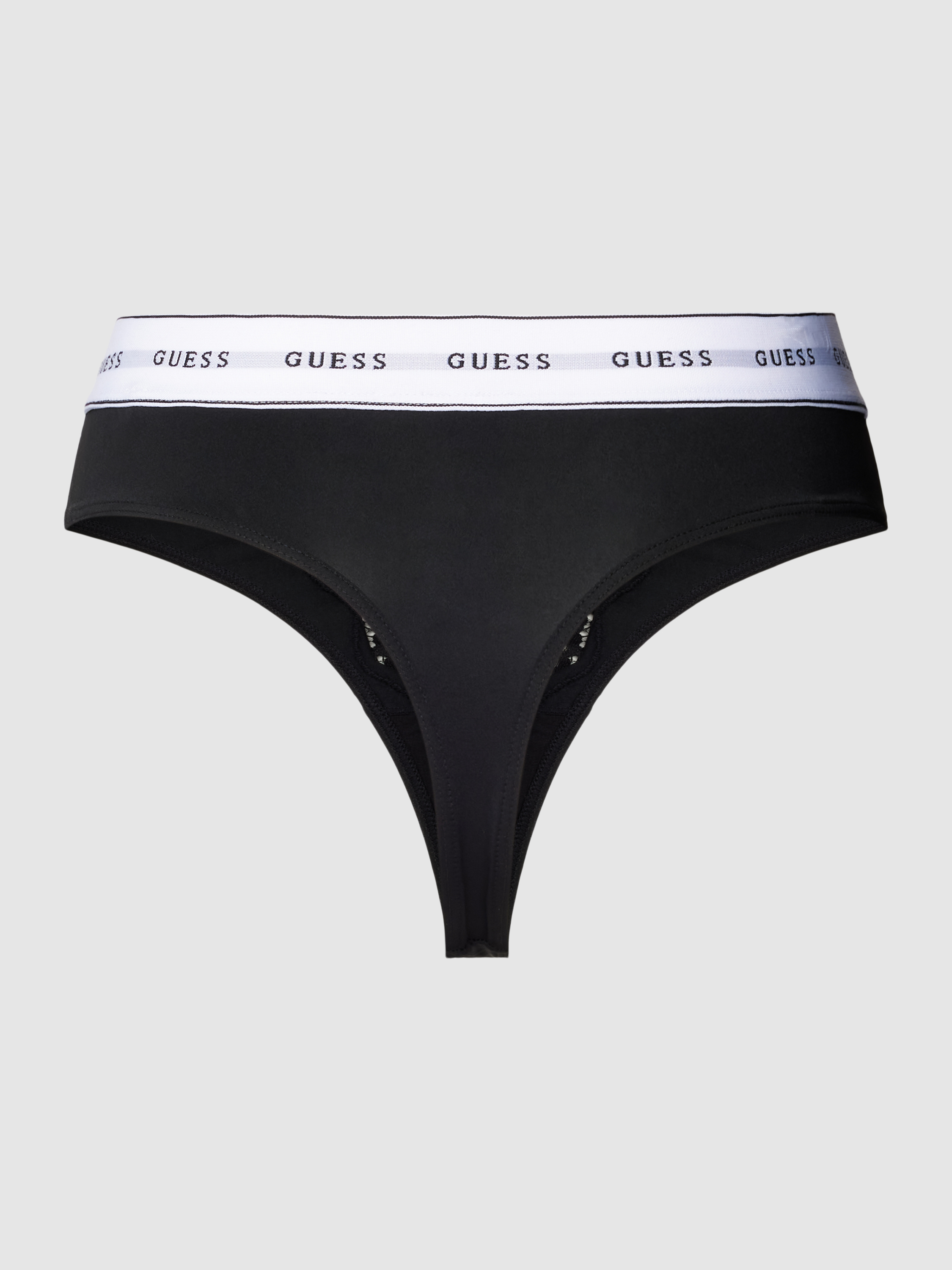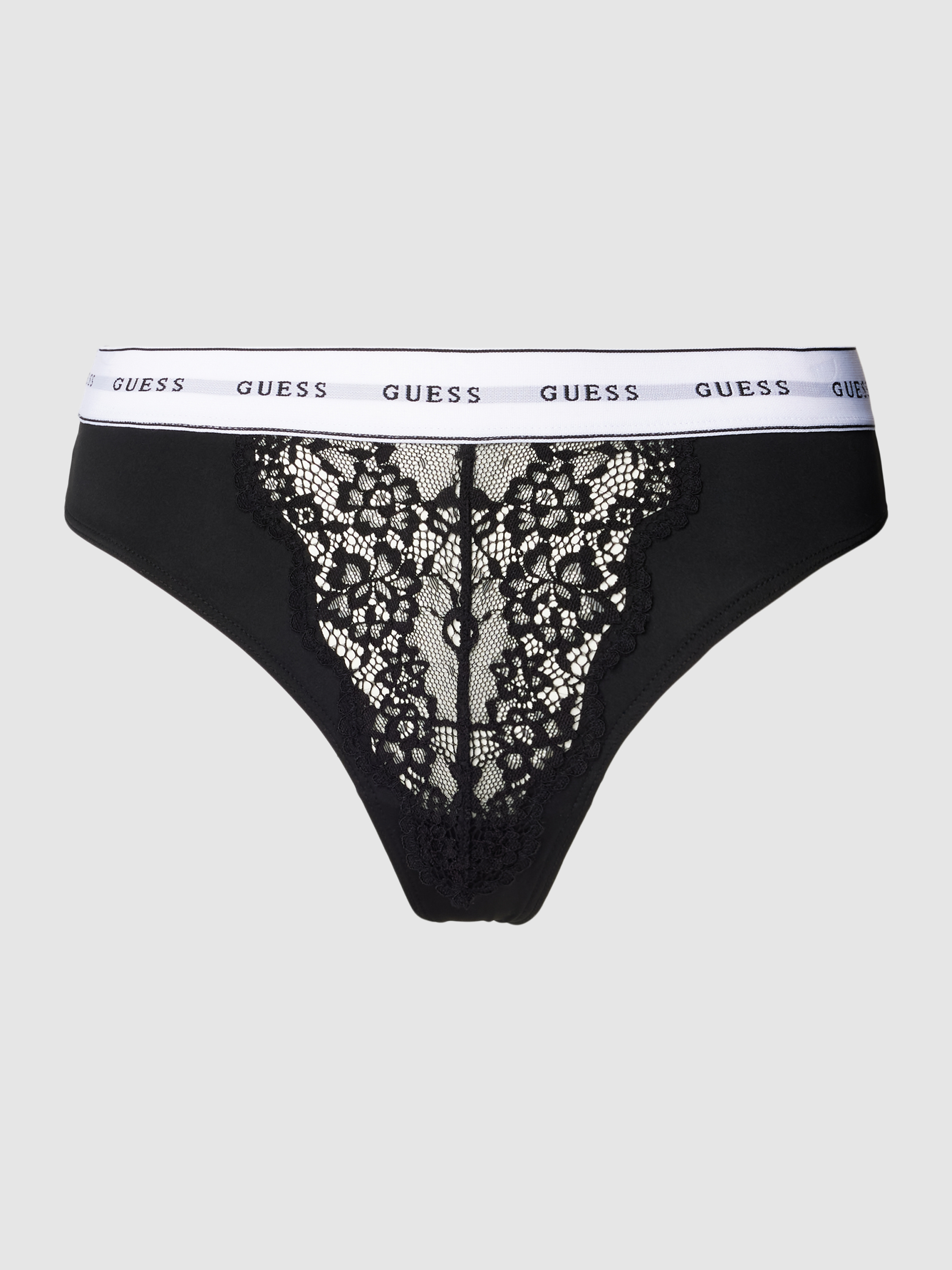 Der String mit Spitze Modell 'BELLE' von GUESS kombiniert feine, semitransparente Spitze mit einem angenehm weichen Material-Mix, wodurch ein dezentes Tragegefühl entsteht. Durch den körpernahen Schnitt schmiegt sich das Modell sanft an. Ein elastischer Bund rundet das Design funktional ab.