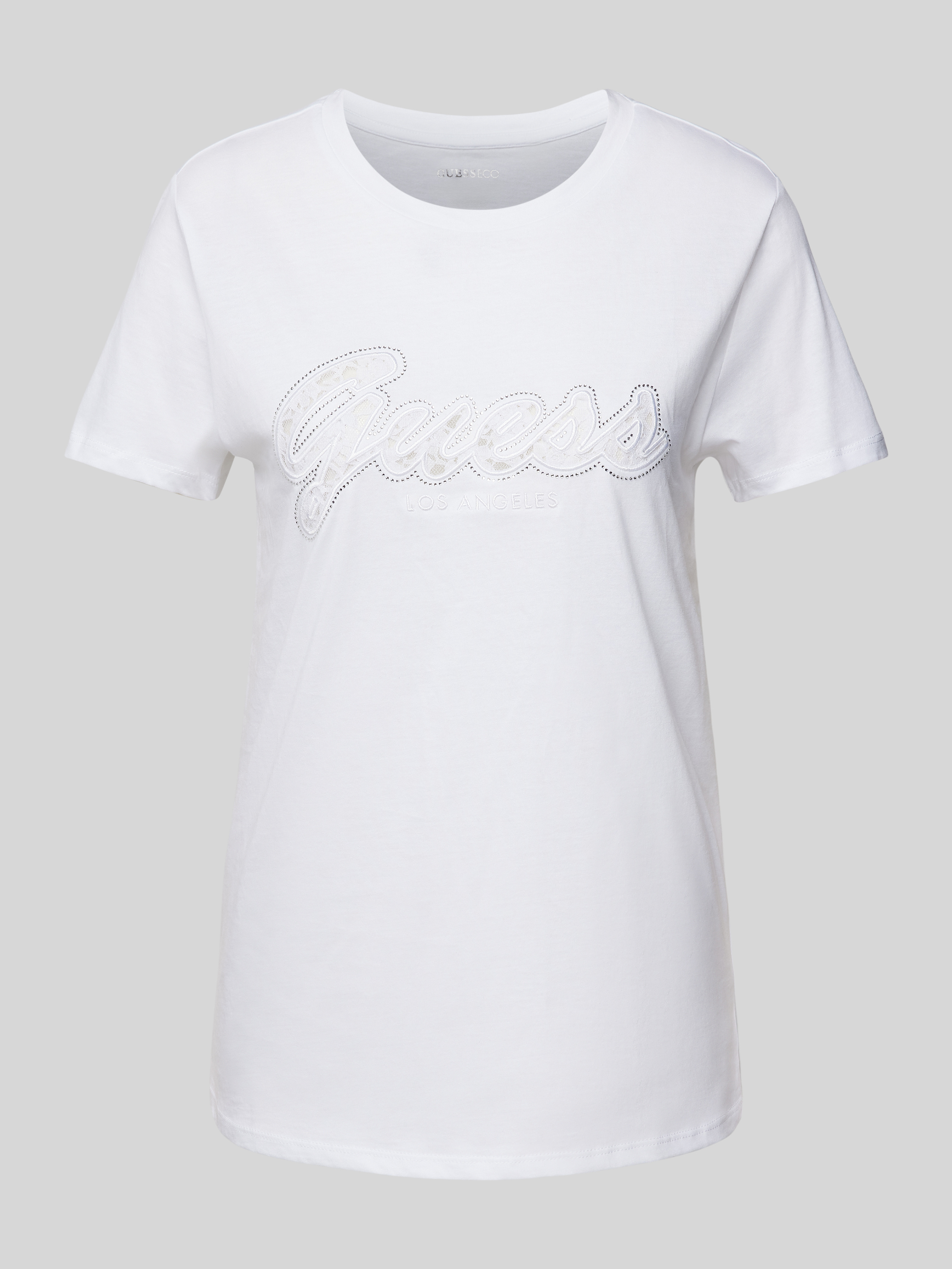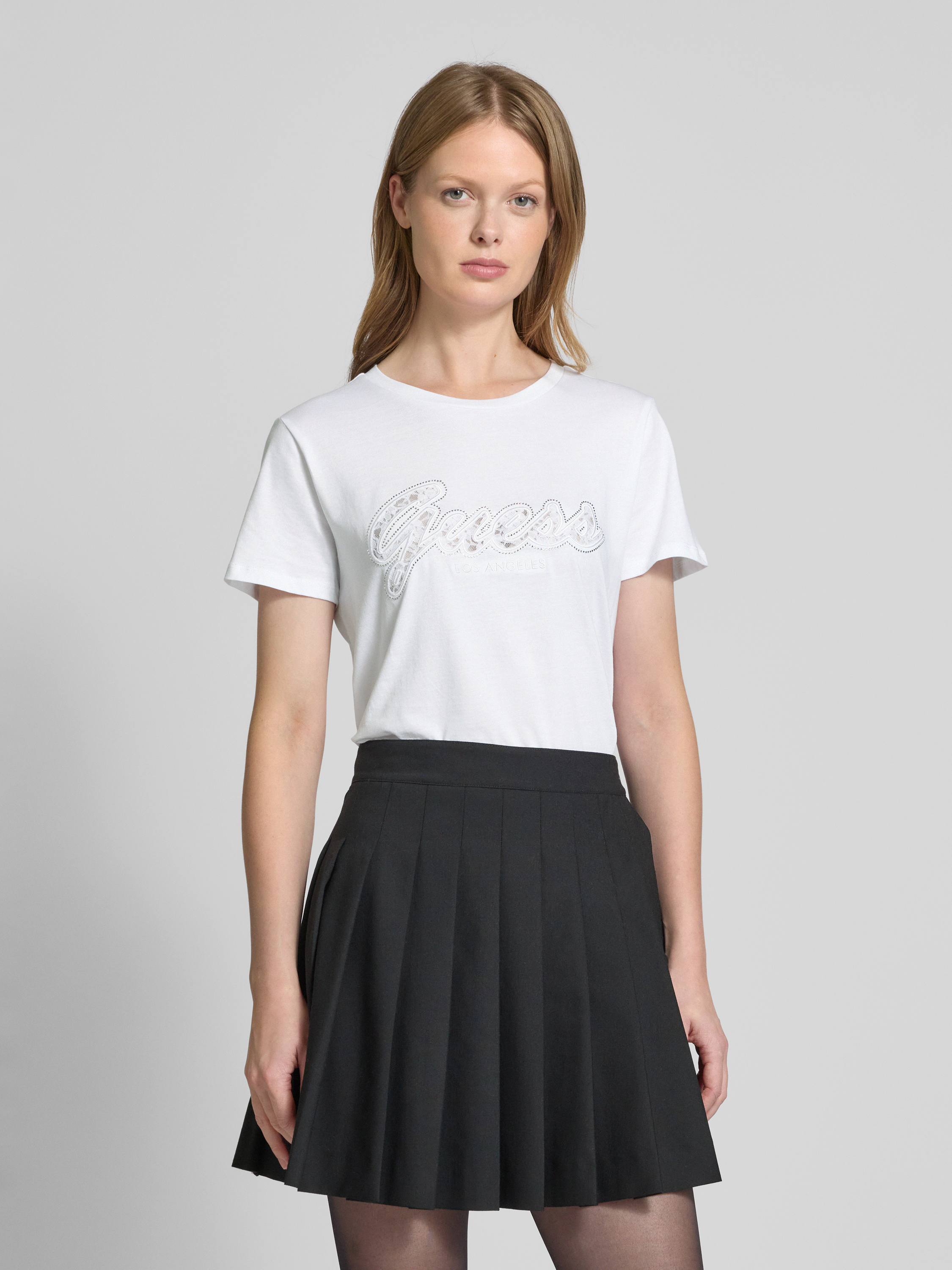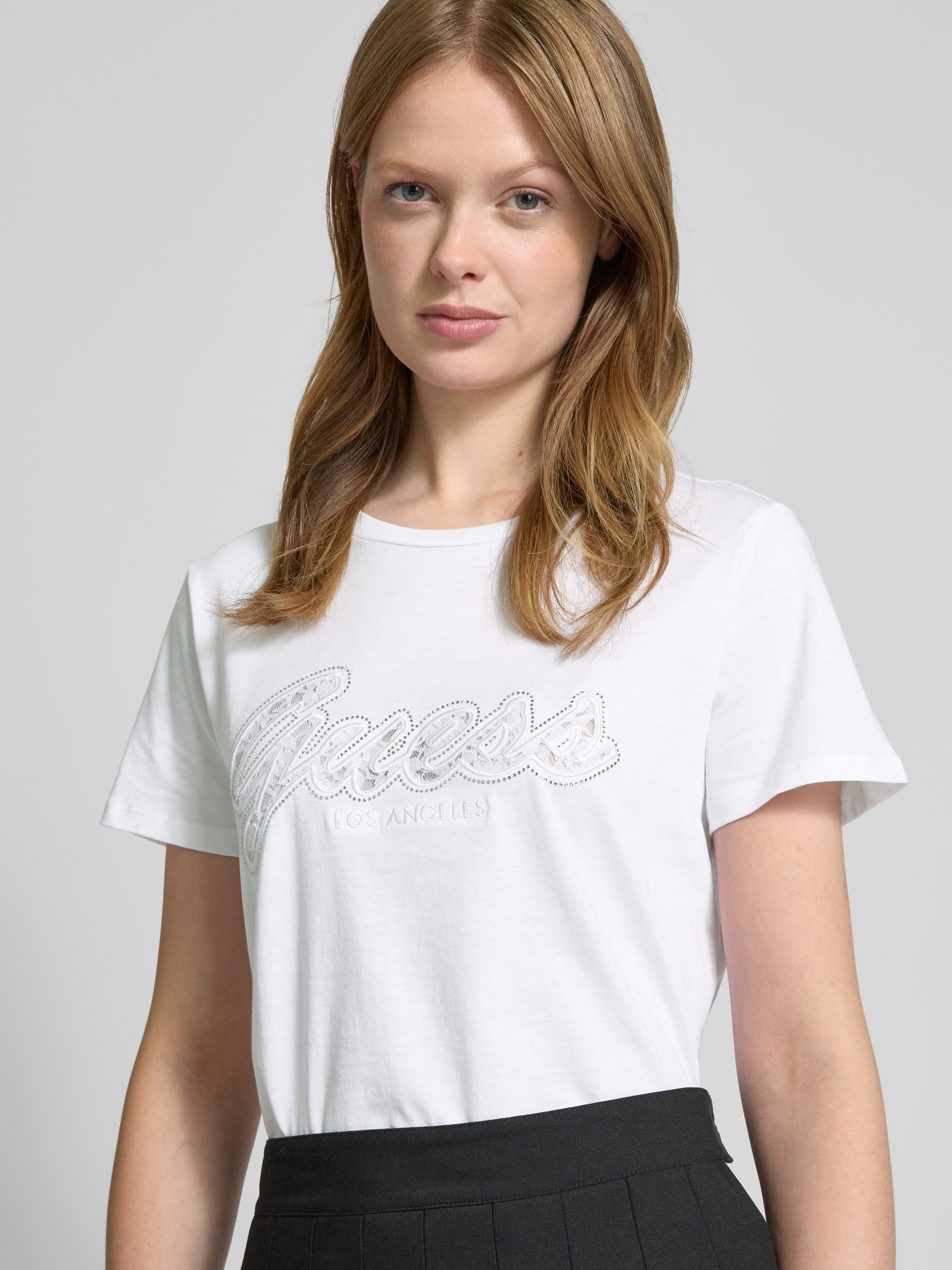 GuessT-Shirt aus Viskose mit Strasssteinbesatz in weiss