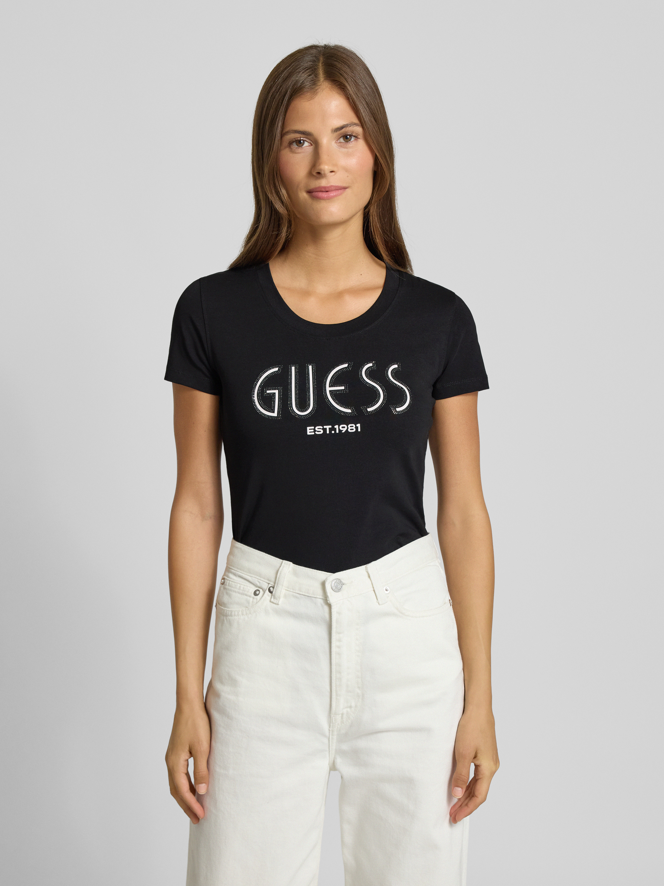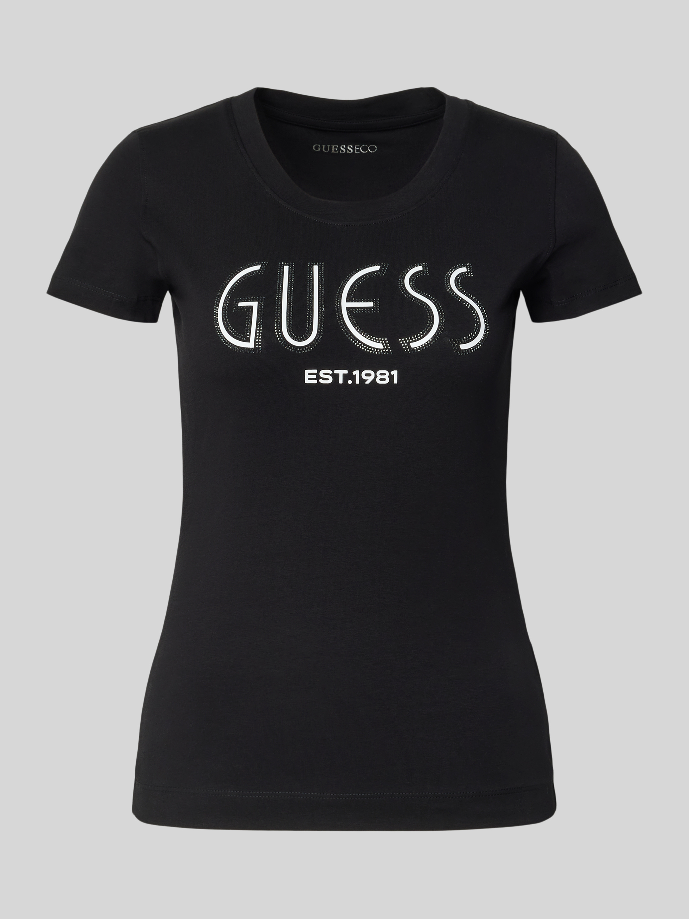 Das T-Shirt von Guess, gefertigt aus einem weichen Baumwoll-Elasthan-Mix, sitzt durch seinen Slim Fit angenehm nah am Körper. Der gerippte Rundhalsausschnitt sorgt für einen klassischen Look, während das dezente Label-Detail dem Design eine stilvolle Note verleiht.