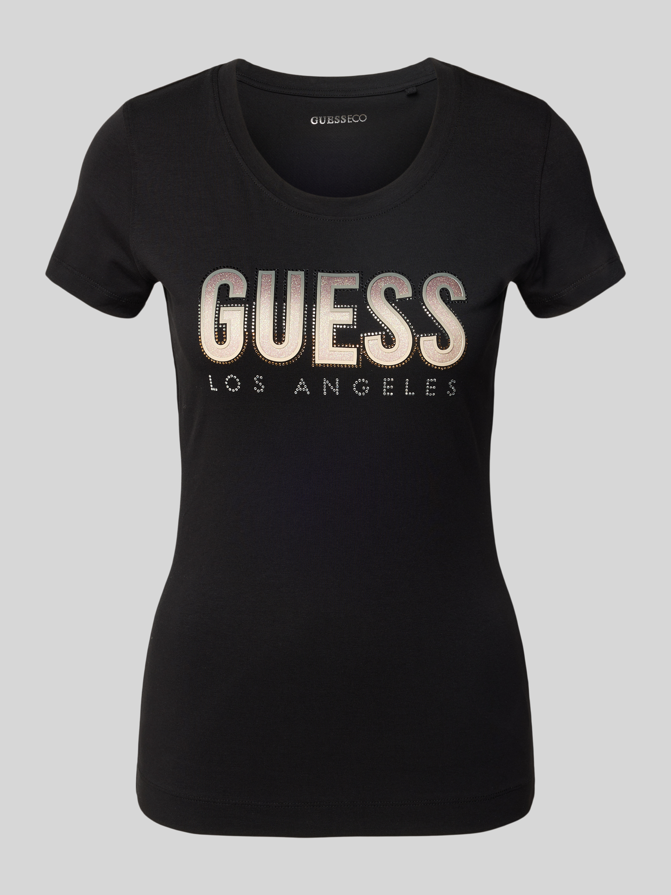 Das Damen T-Shirt von Guess kombiniert einen angenehmen Baumwoll-Elasthan-Mix mit einem modernen Regular Fit, der sich vielseitig für verschiedene Anlässe eignet. Der Rundhalsausschnitt verleiht dem Shirt eine klassische Note, während der Ziersteinbesatz dezente Akzente setzt.