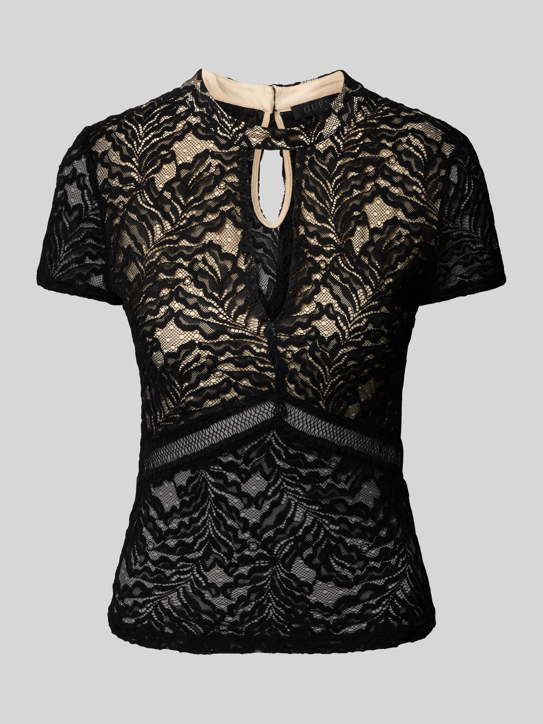 Das Damen T-Shirt von Guess kombiniert durch seinen Baumwoll-Materialmix Komfort mit einem schmeichelhaften Slim Fit. Der Rundhalsausschnitt und der dezente Schlüsselloch-Ausschnitt setzen subtile Akzente, während das semitransparente Design spielerisch Leichtigkeit vermittelt. Ideal für stilvolle und entspannte Auftritte.