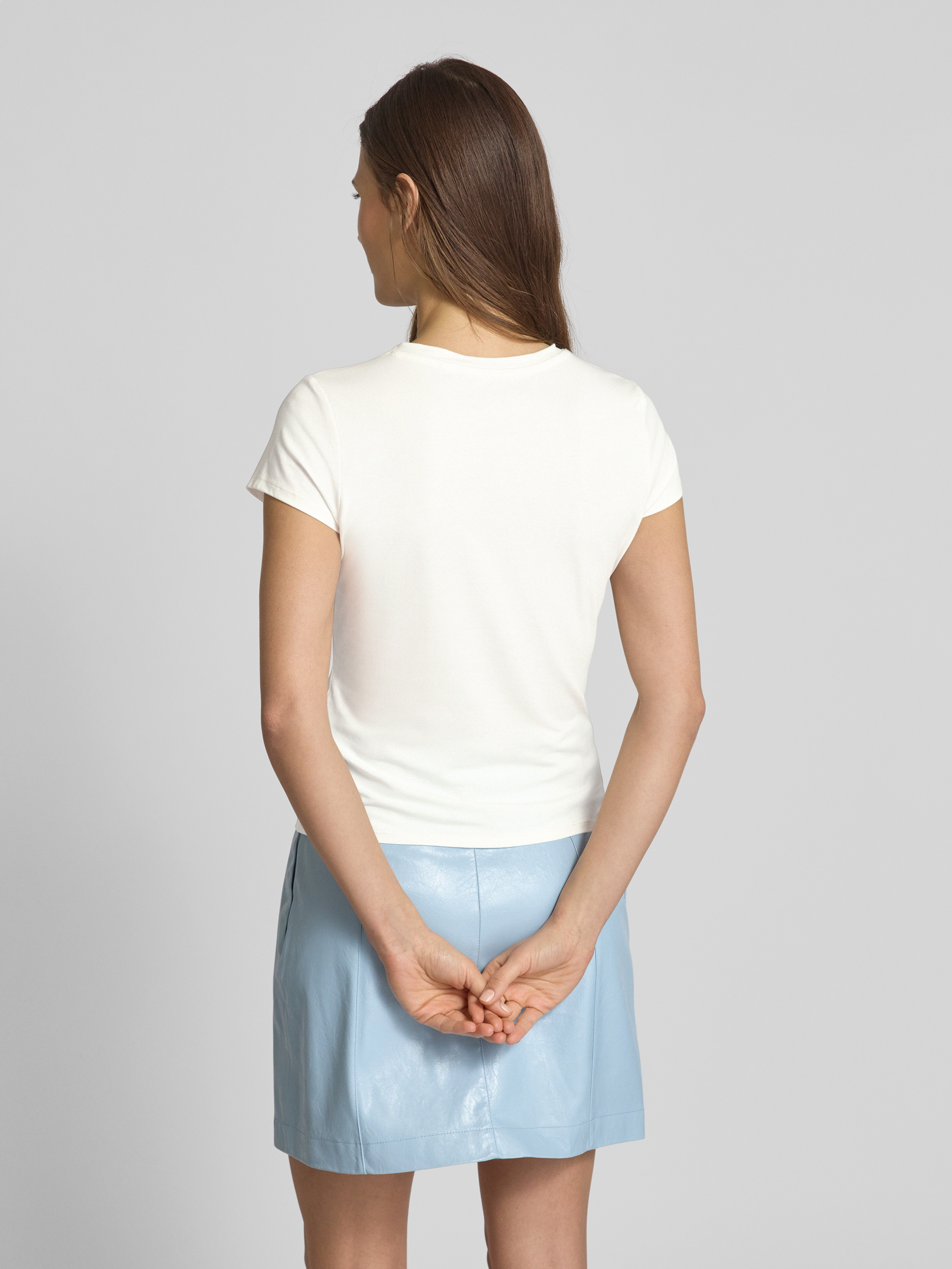 Das Damen T-Shirt von GUESS kombiniert einen körpernahen Schnitt mit einem eleganten Rundhalsausschnitt, wodurch es sich ideal für vielseitige Stylings eignet. Der Baumwoll-Elasthan-Mix sorgt für angenehmen Tragekomfort, während der Strasssteinbesatz dezente Akzente setzt. Ein stilvoller Begleiter für verschiedene Anlässe.