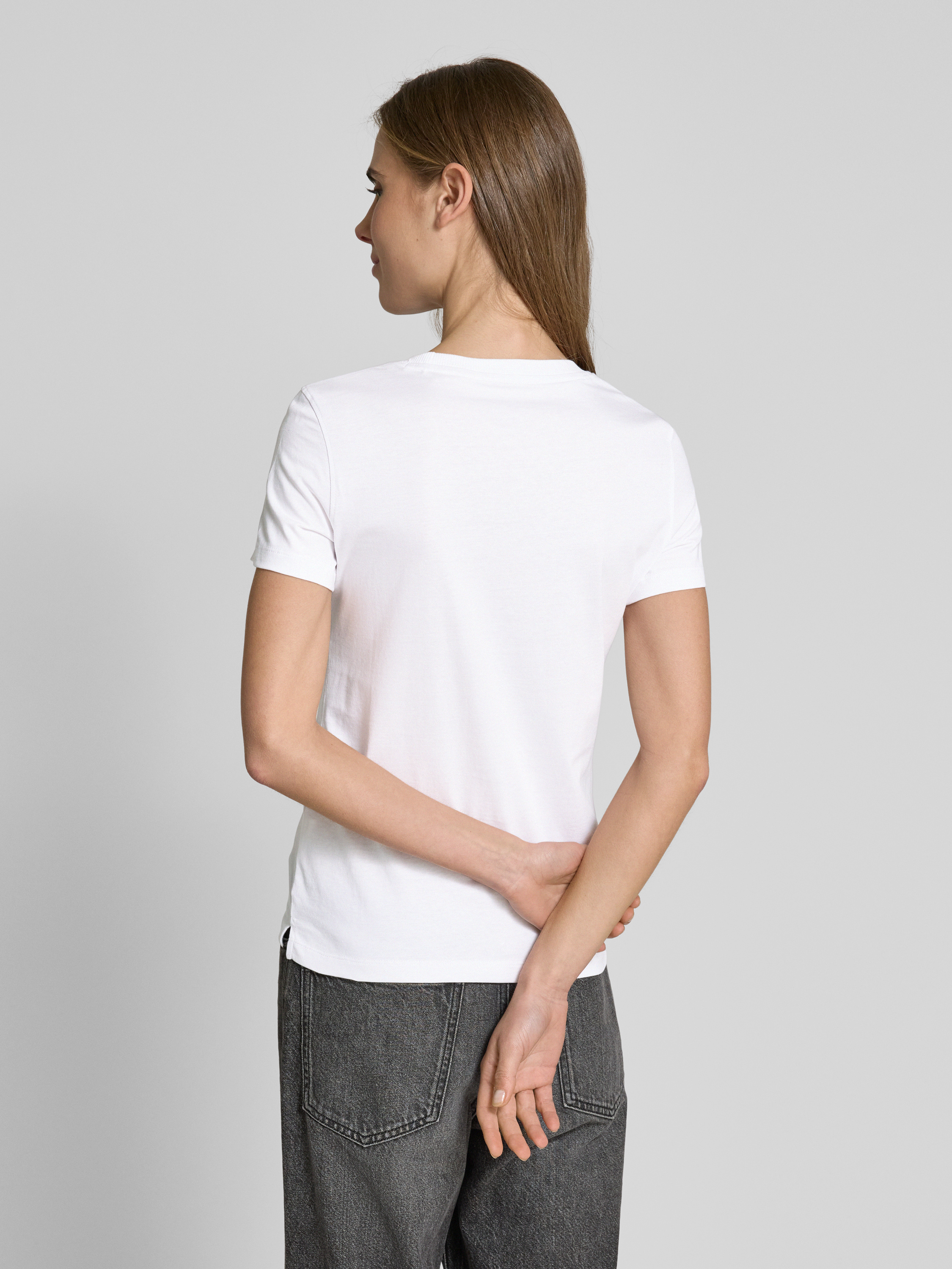 Das Damen T-Shirt von GUESS aus reiner Baumwolle überzeugt mit seinem geraden Schnitt und einem angenehmen Rundhalsausschnitt. Der Strasssteinbesatz verleiht dem Modell einen besonderen Glanz, während der Label-Print dezent bleibt. Es eignet sich hervorragend für lässige und dennoch elegante Outfits.