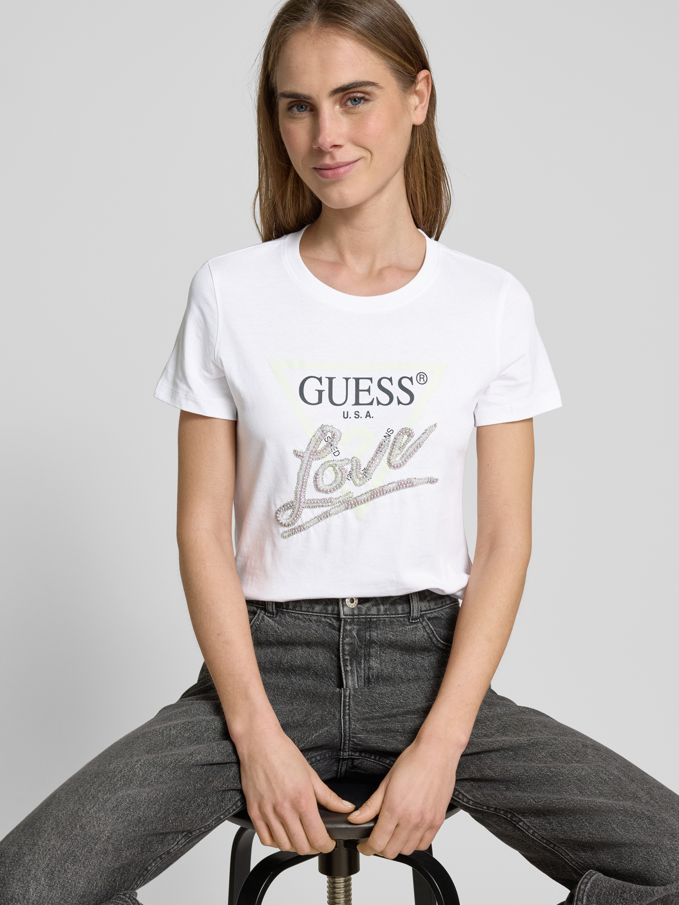 GuessT-Shirt mit Strasssteinbesatz in weiss