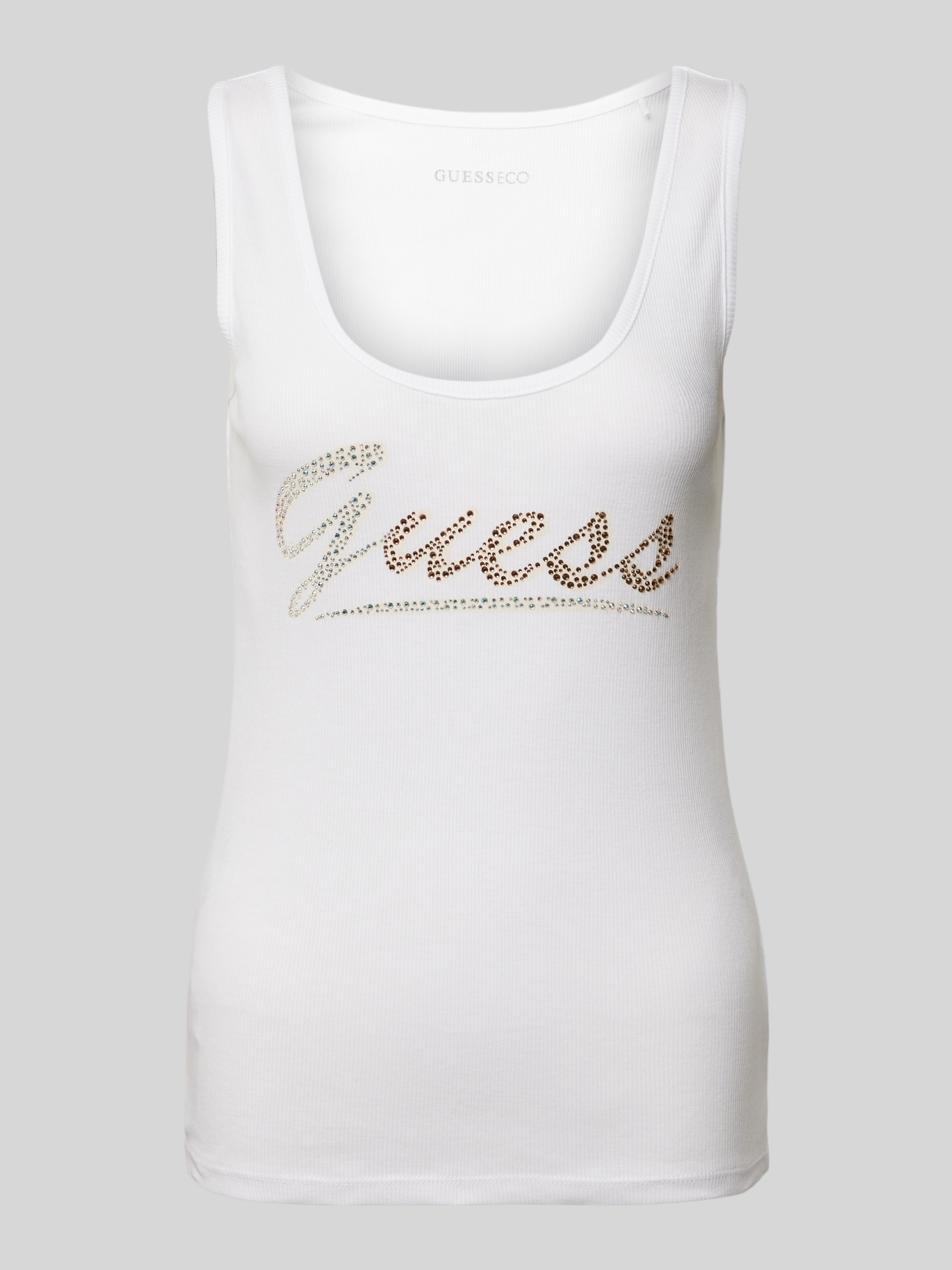 Das Tanktop von GUESS kombiniert schlichte Eleganz mit einem Hauch von Glamour durch den raffinierten Strasssteinbesatz. Gefertigt aus reiner Baumwolle, bietet es einen komfortablen, körpernahen Sitz, der das unifarbene Design betont. Ideal für vielseitige Kombinationen im Alltag.