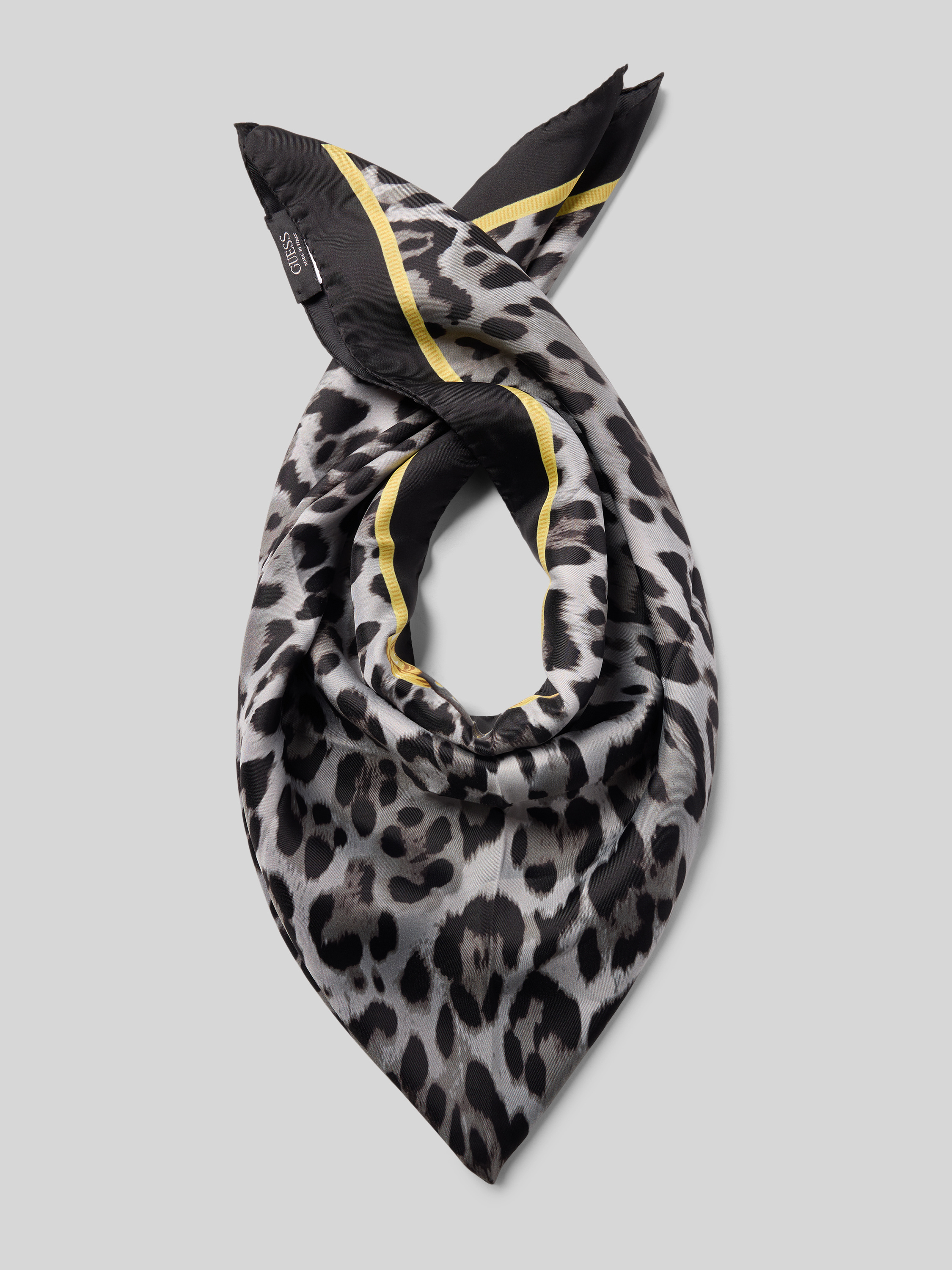 Das Tuch von Guess im Modell MIMINA zeigt sich in quadratischer Form und fällt durch seinen Animal-Print direkt ins Auge. Dank des Seiden-Anteils im Viskose-Mix fühlt es sich angenehm glatt auf der Haut an. Mit dem dezenten Logo-Patch ergänzt es verschiedene Outfits auf unkomplizierte Weise.