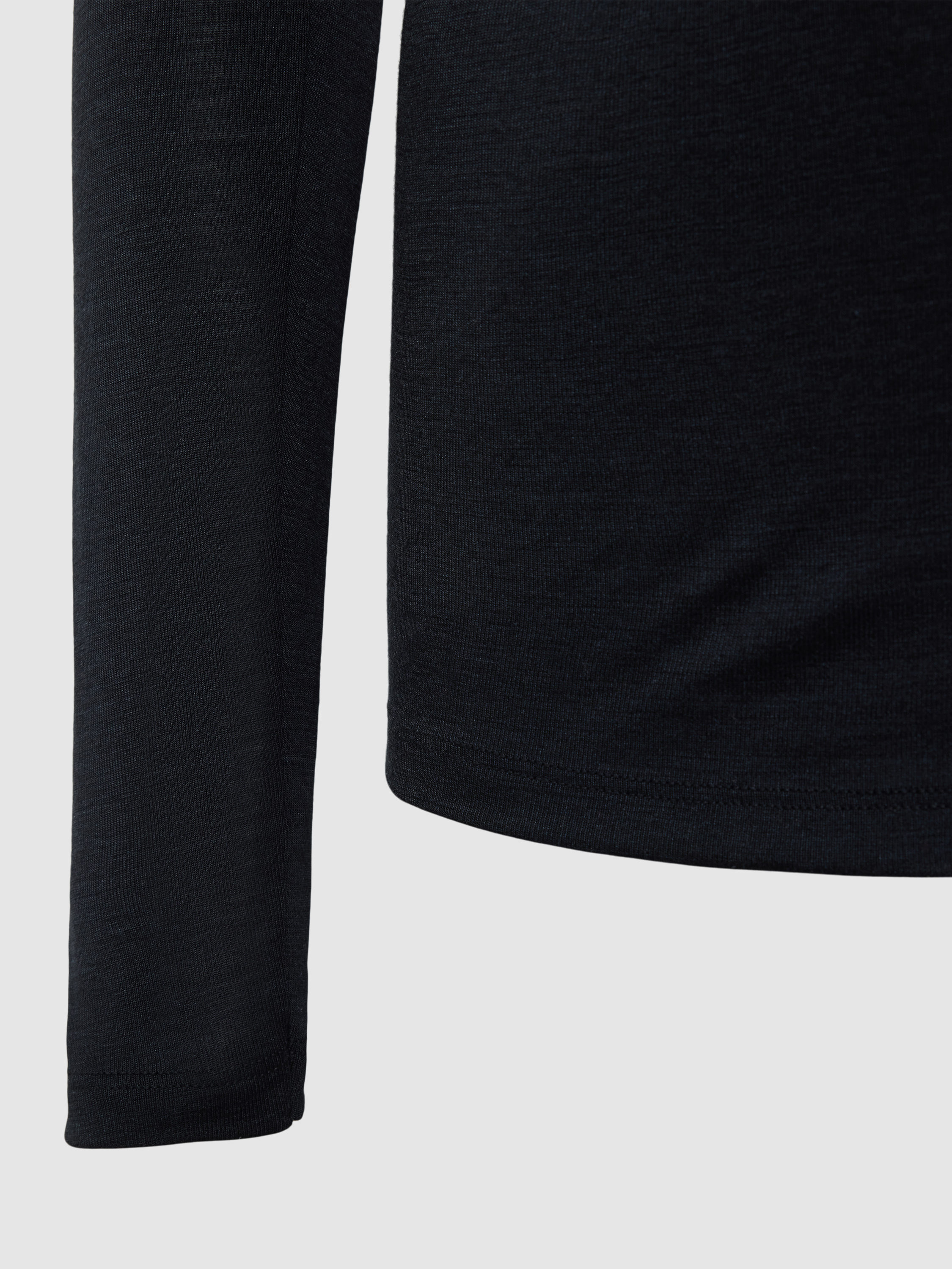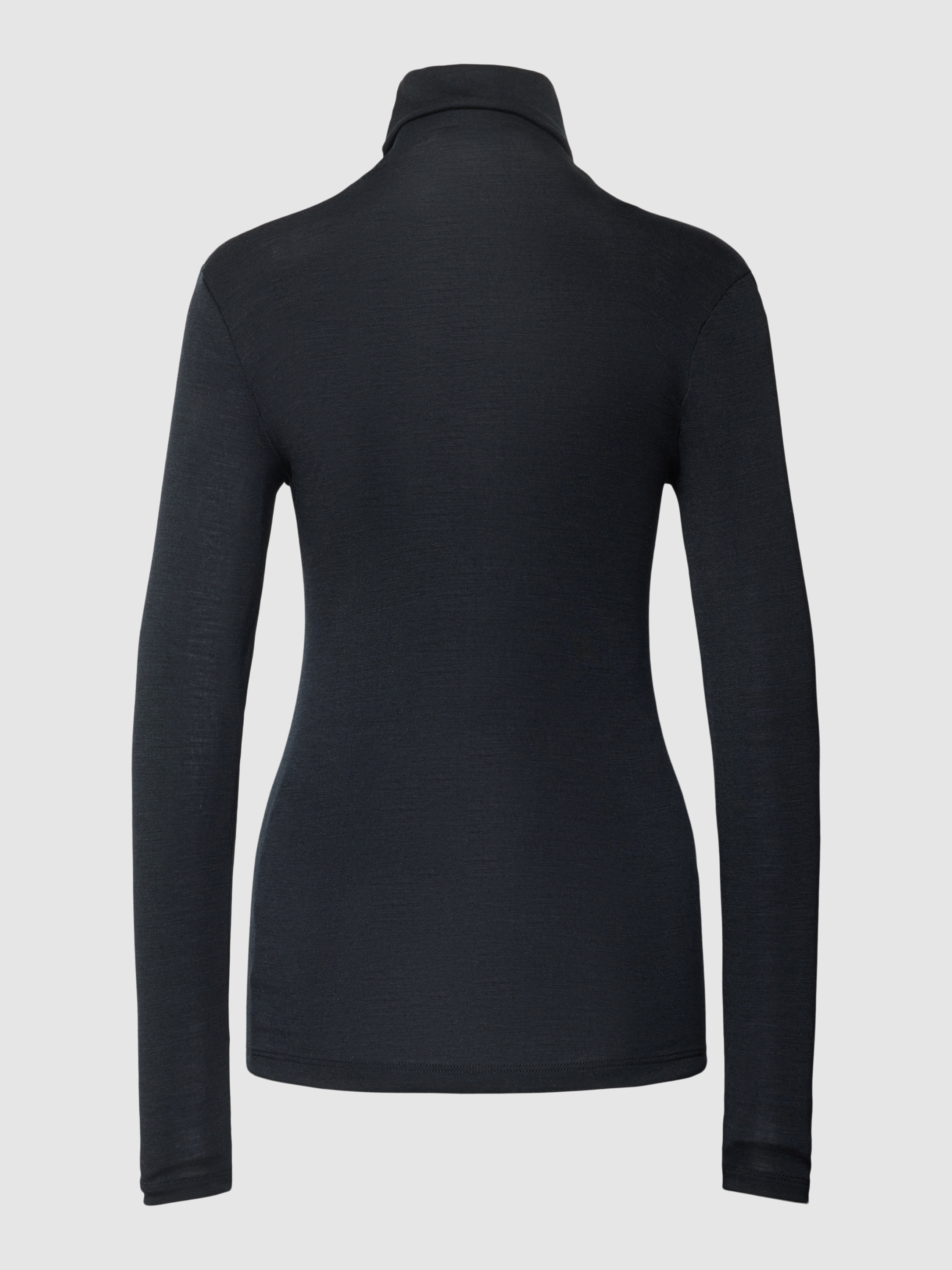 Das Damen Longsleeve Turtleneck von Hanro schmiegt sich durch den Slim Fit angenehm an und setzt auf ein schlichtes, unifarbenes Design. Der Woll-Seide-Mix sorgt dabei für ein geschmeidiges Hautgefühl und unterstützt ein ausgeglichenes Körperklima. Dank Rollkragen bleibt der Hals angenehm geschützt, wodurch man vielseitig durch den Tag kommt.