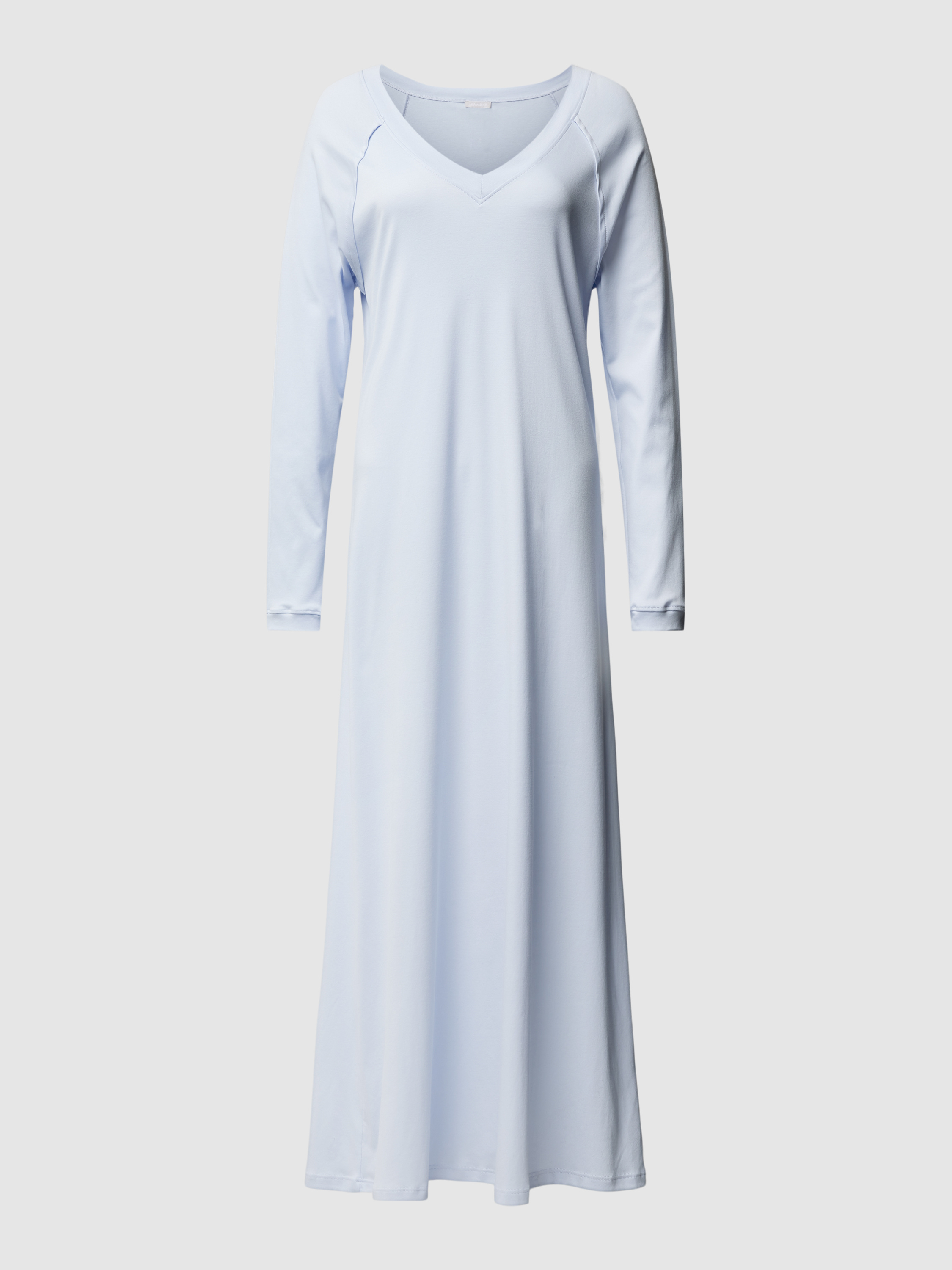 HanroNachthemd mit geripptem V-Ausschnitt in hellblau