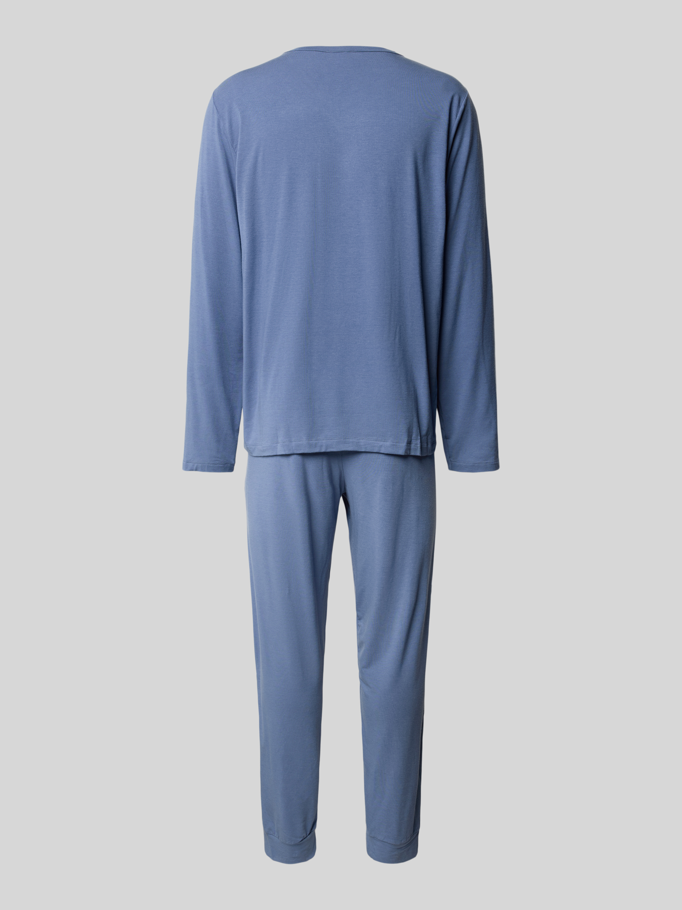 HanroPyjama mit geripptem Rundhalsausschnitt in rauchblau