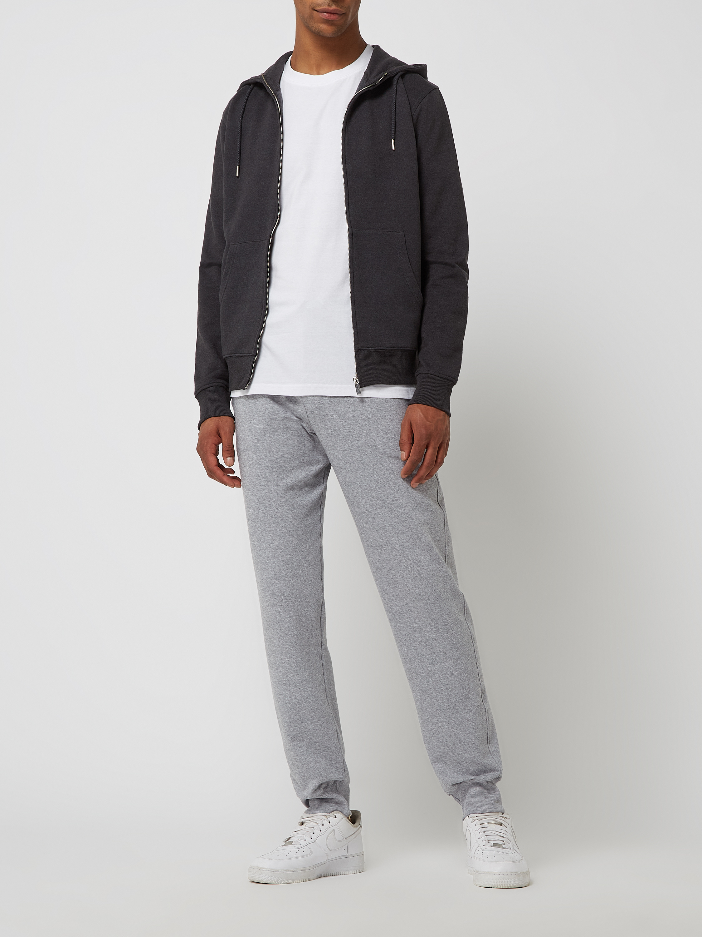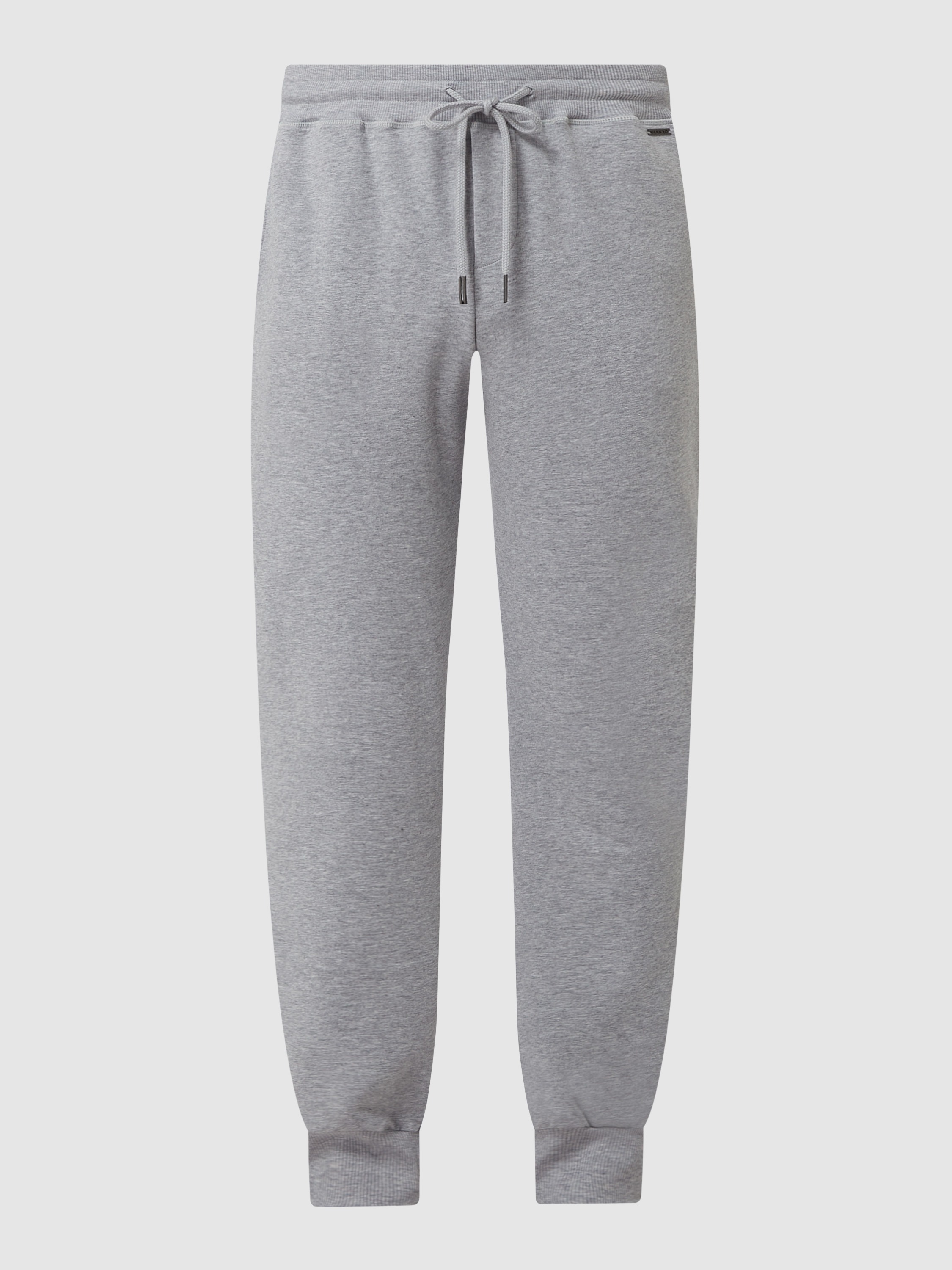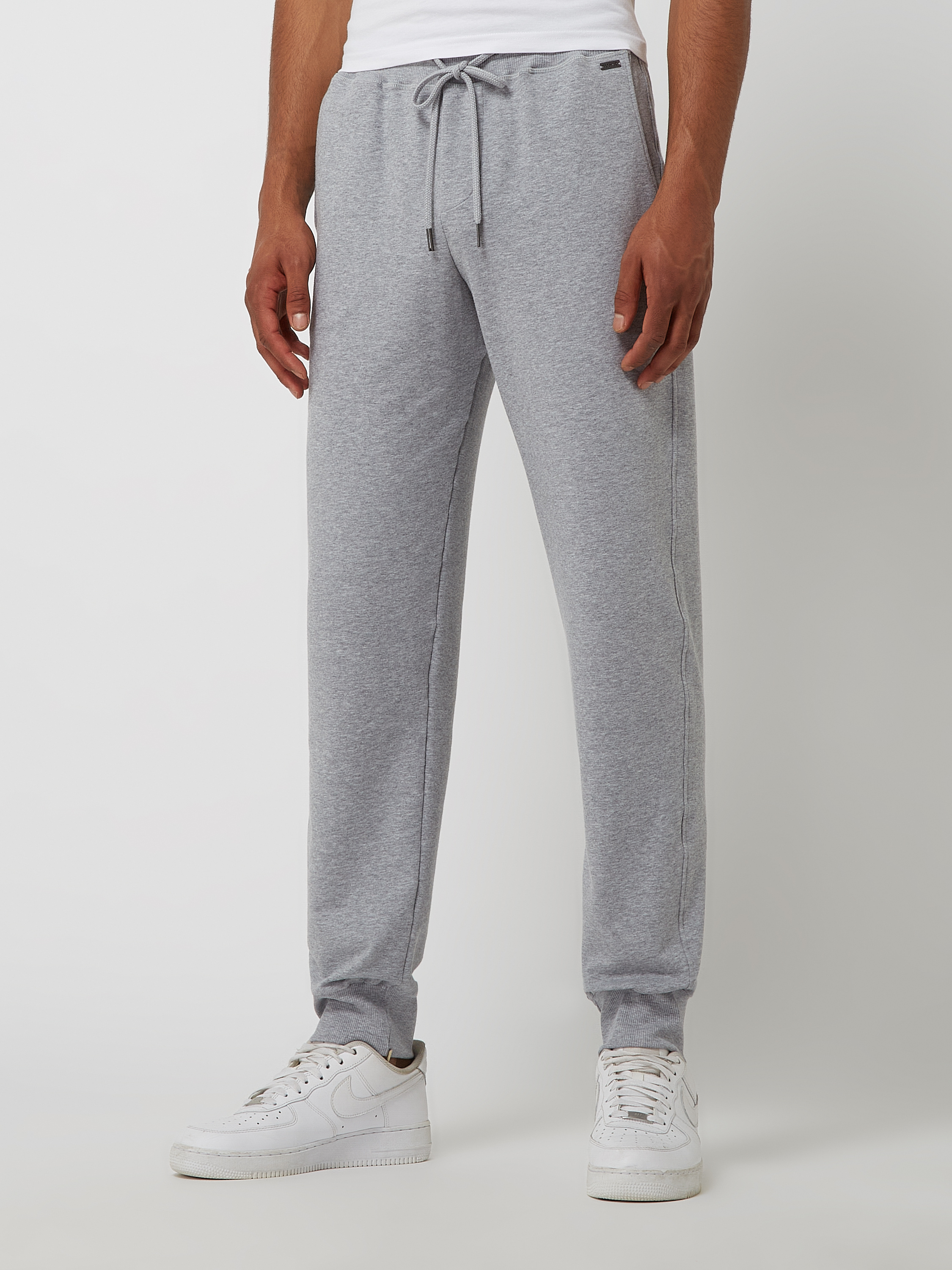 Die Sweathose von HANRO kombiniert Komfort und Stil durch ihren Baumwoll-Elasthan-Mix, der sich angenehm trägt und Bewegungsfreiheit ermöglicht. Der lockere Schnitt und der elastische Bund mit Tunnelzug sorgen für eine entspannte Passform. Praktische seitliche Eingrifftaschen runden das Design funktional ab.