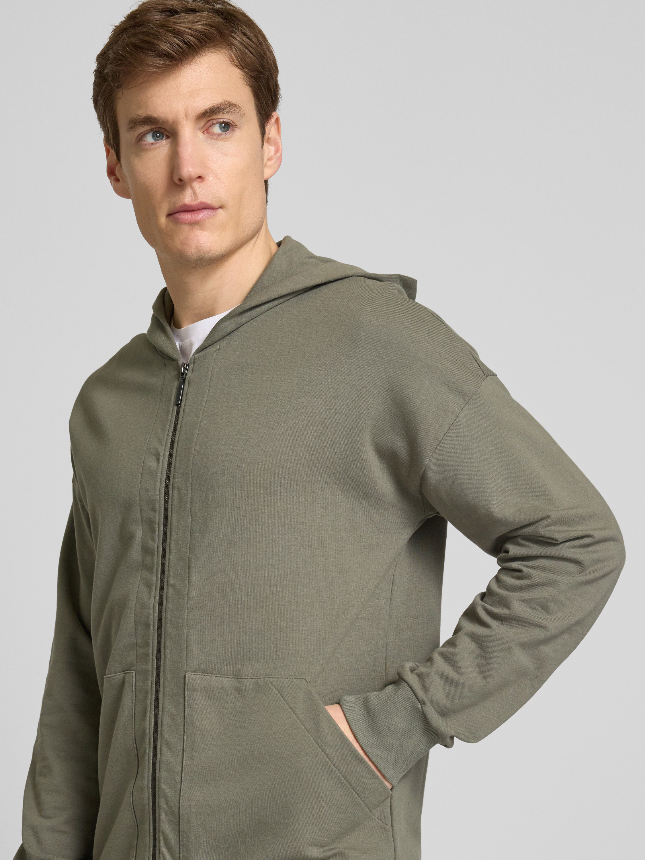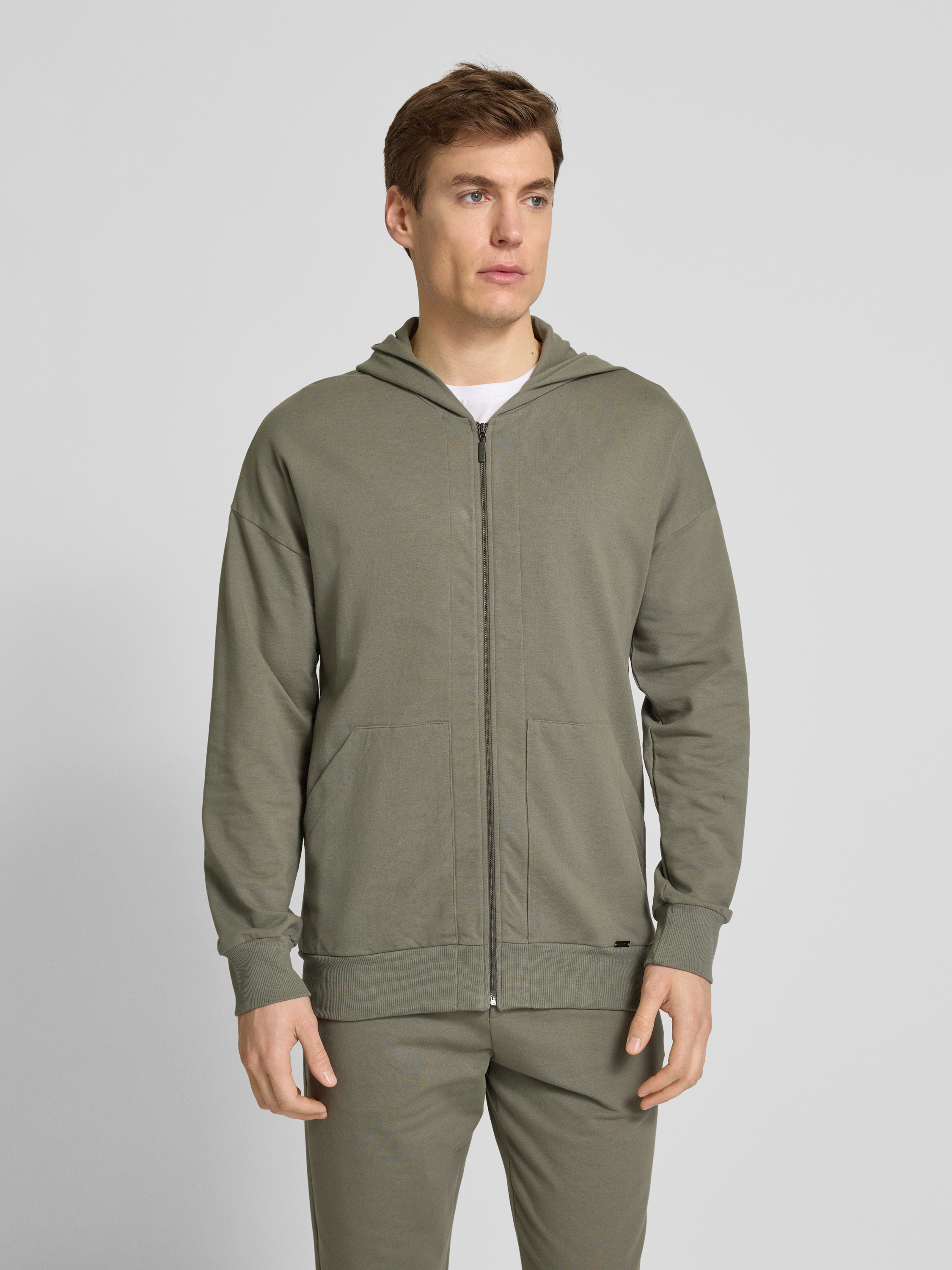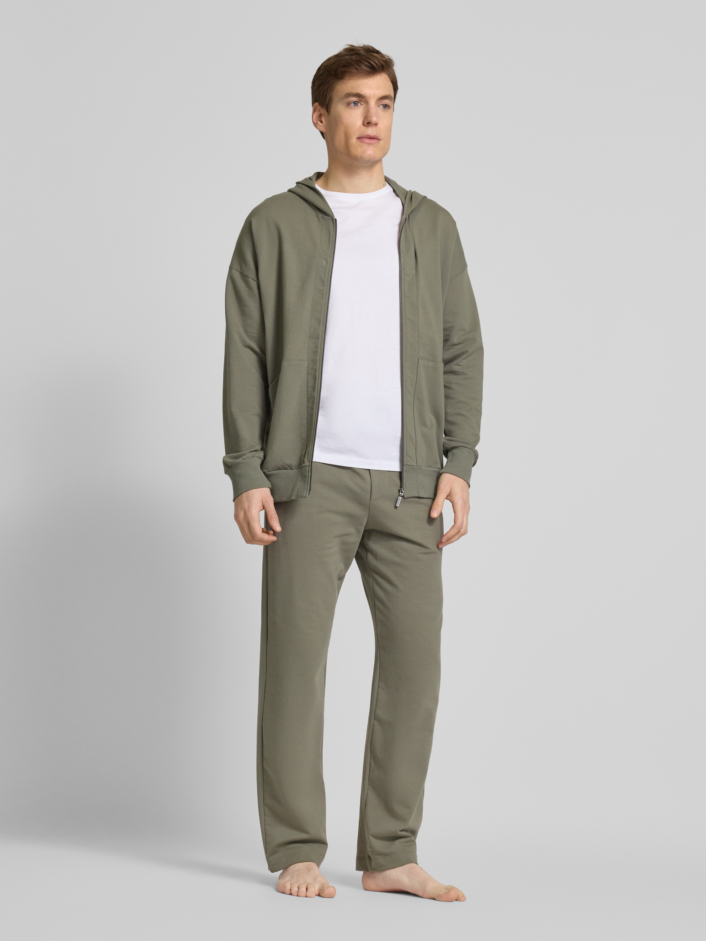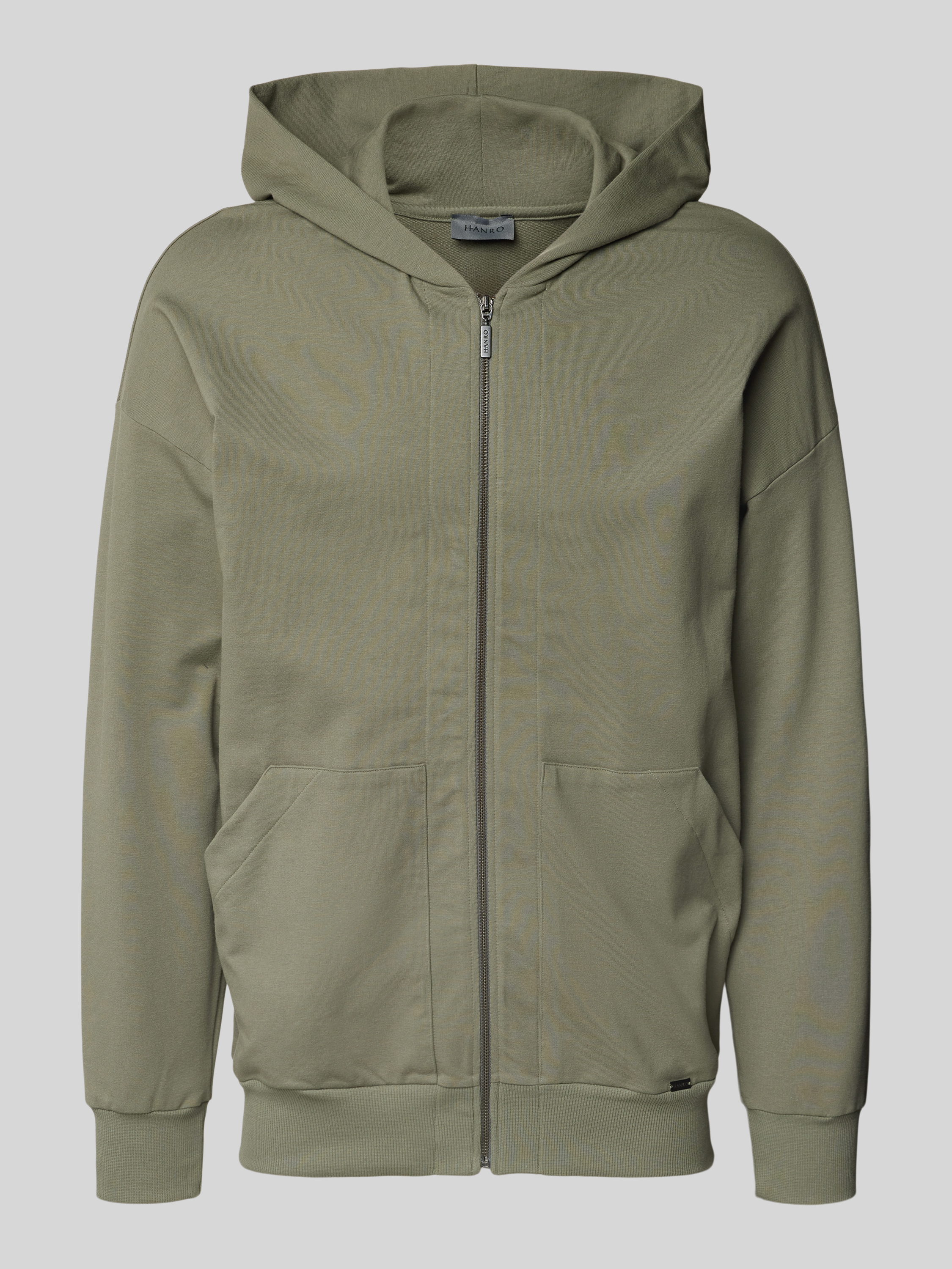 HanroSweatjacke mit Label-Applikation in khaki
