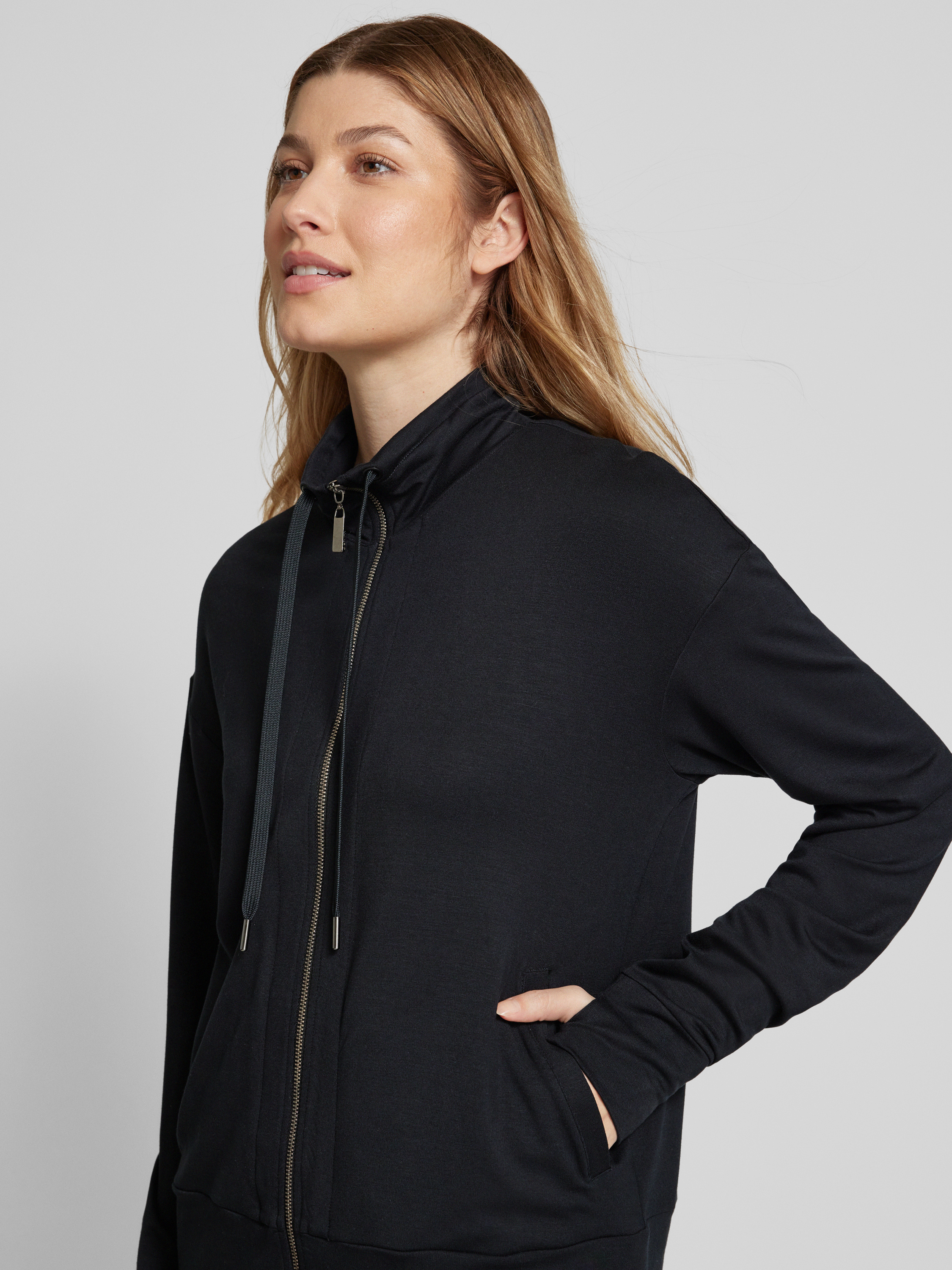 Die Sweatjacke 'Balance' von Hanro kombiniert gekonnt einen Viskose-Elasthan-Mix mit einem lässigen Regular Fit, der sich angenehm anschmiegt. Ein Stehkragen mit Tunnelzug sorgt für zusätzlichen Komfort und Flexibilität. Ideal für vielseitige Outfits in unterschiedlichen Lebenslagen.