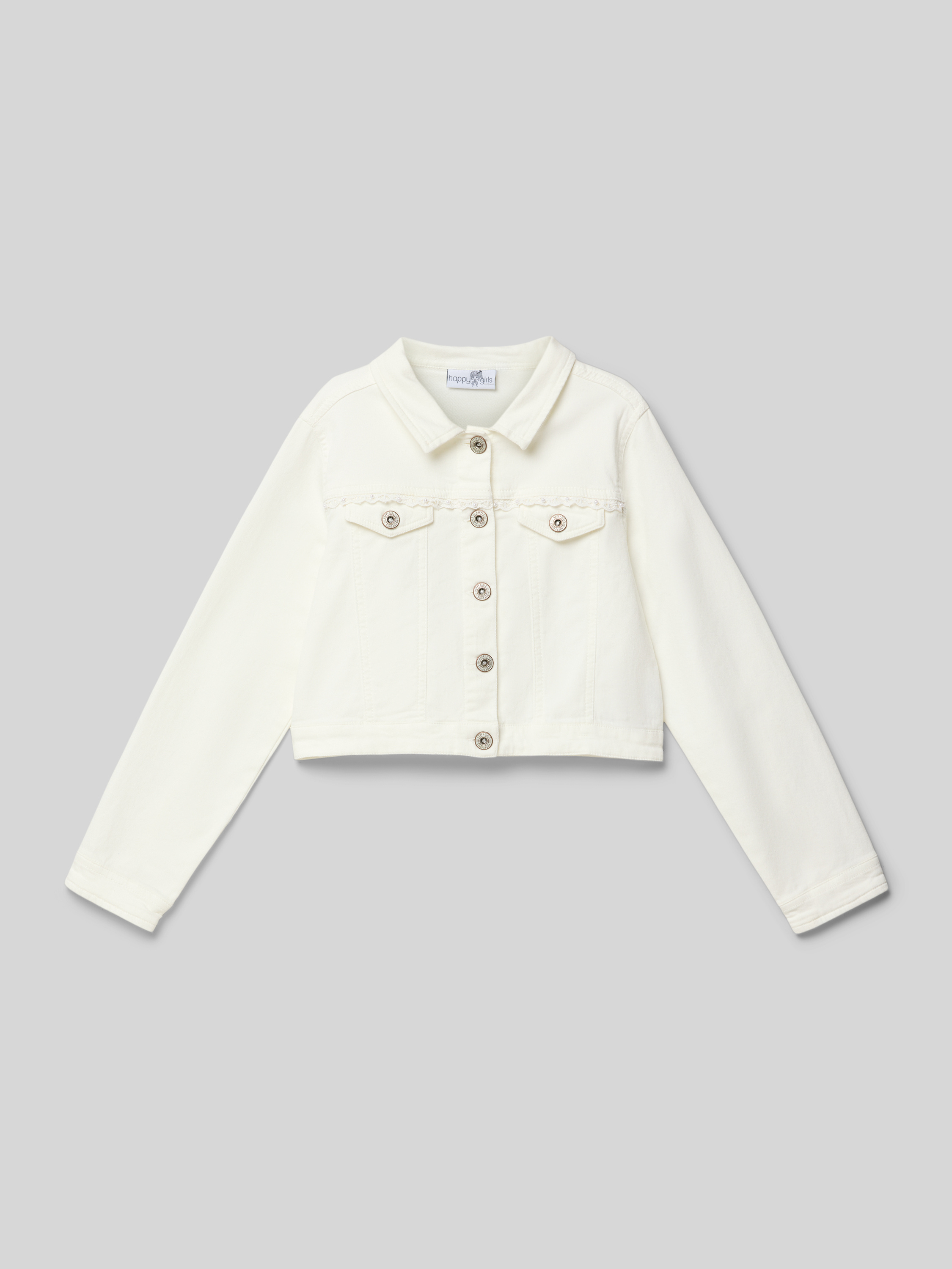 Happy GirlsRegular Fit Jeansjacke mit Spitzenbesatz in ecru