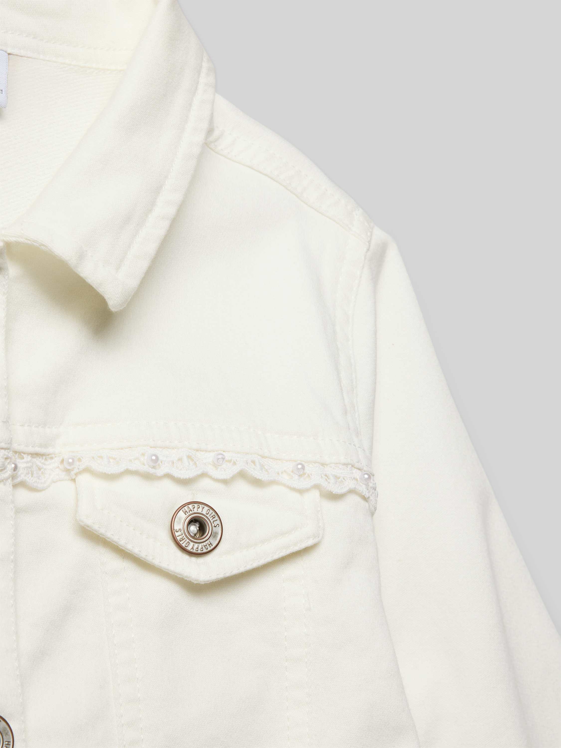 • Happy Girls Regular Fit Jeansjacke mit Spitzenbesatz Ecru