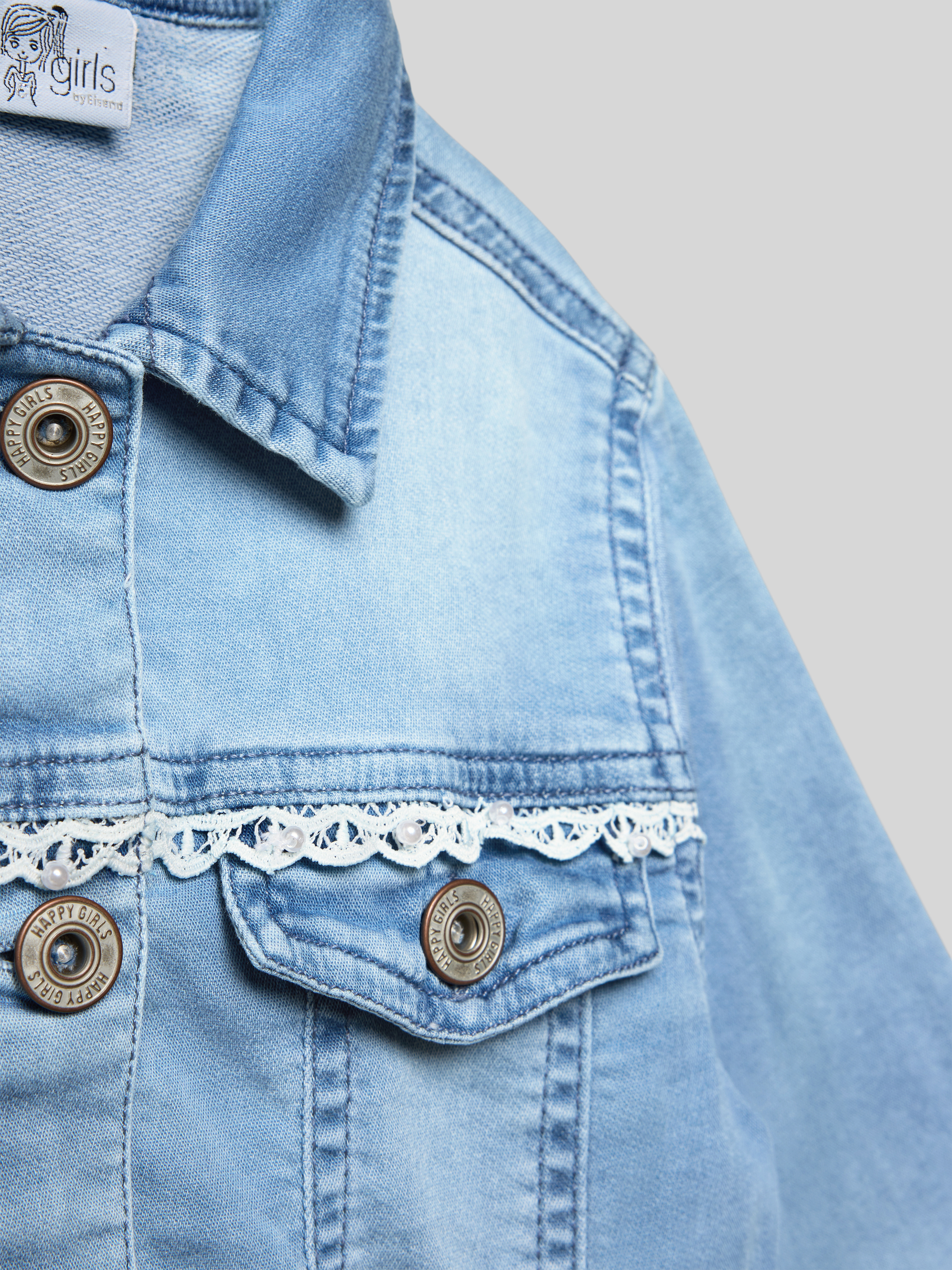 Happy GirlsRegular Fit Jeansjacke mit Spitzenbordüre in blau