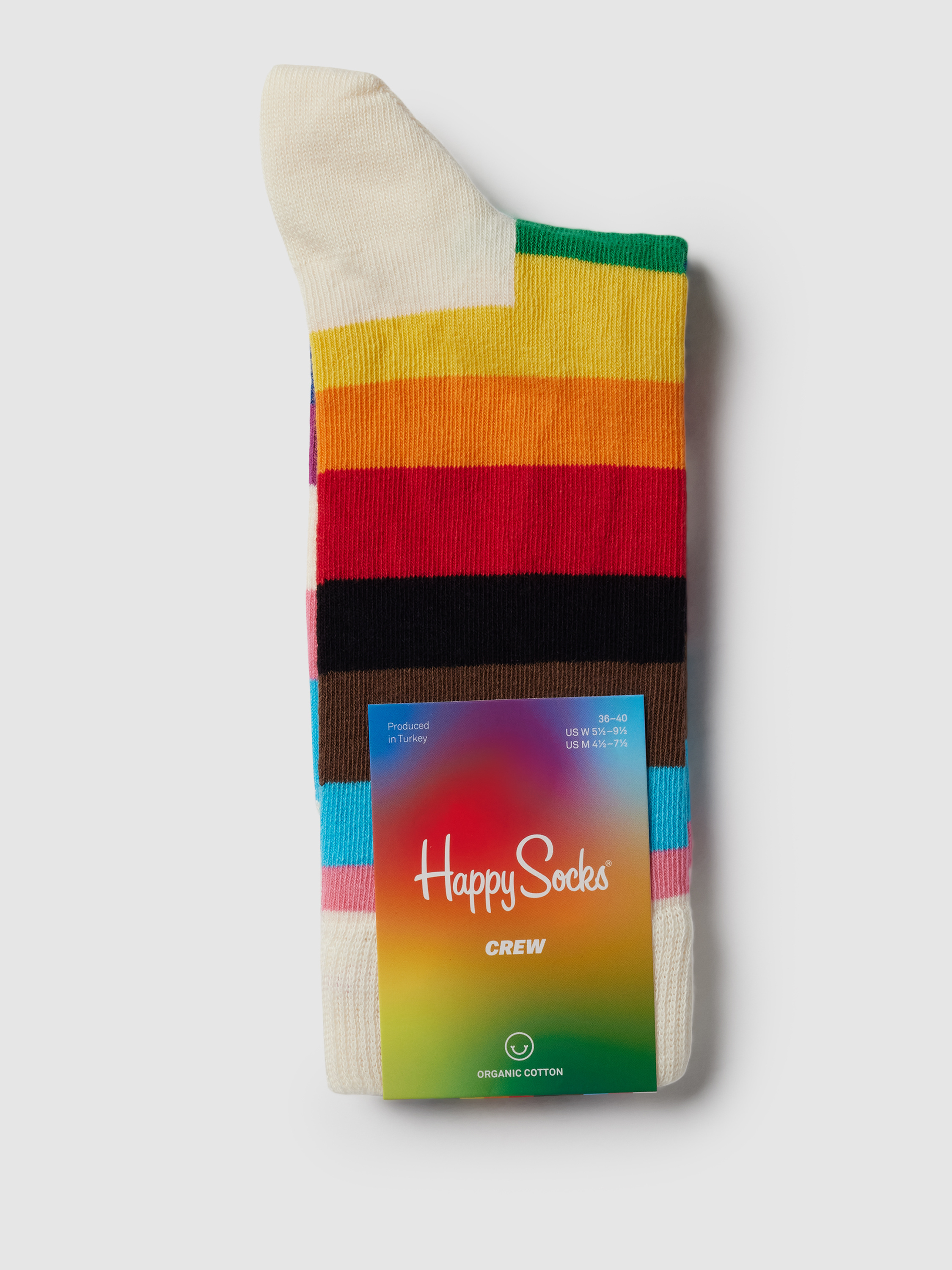 Die Damen Socken von Happy Socks, Modell 'Pride Sunrise', zeichnen sich durch ihren farbenfrohen Baumwoll-Mix und das lebendige Allover-Muster aus. Sie verleihen jedem Outfit eine frische Note und bieten durch ihre komfortablen Rippenbündchen einen angenehmen Tragekomfort im Alltag.