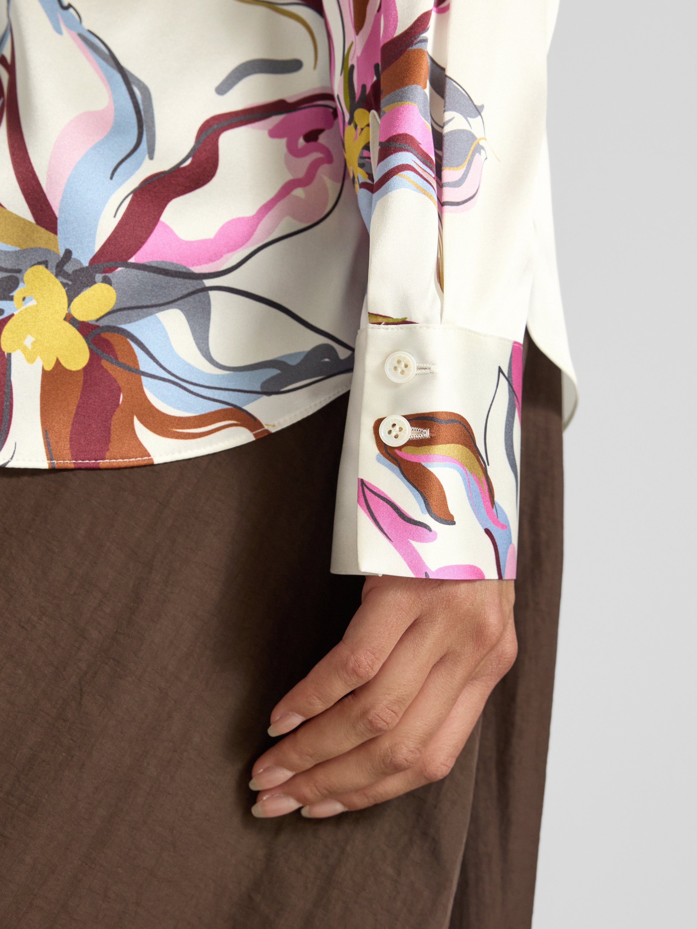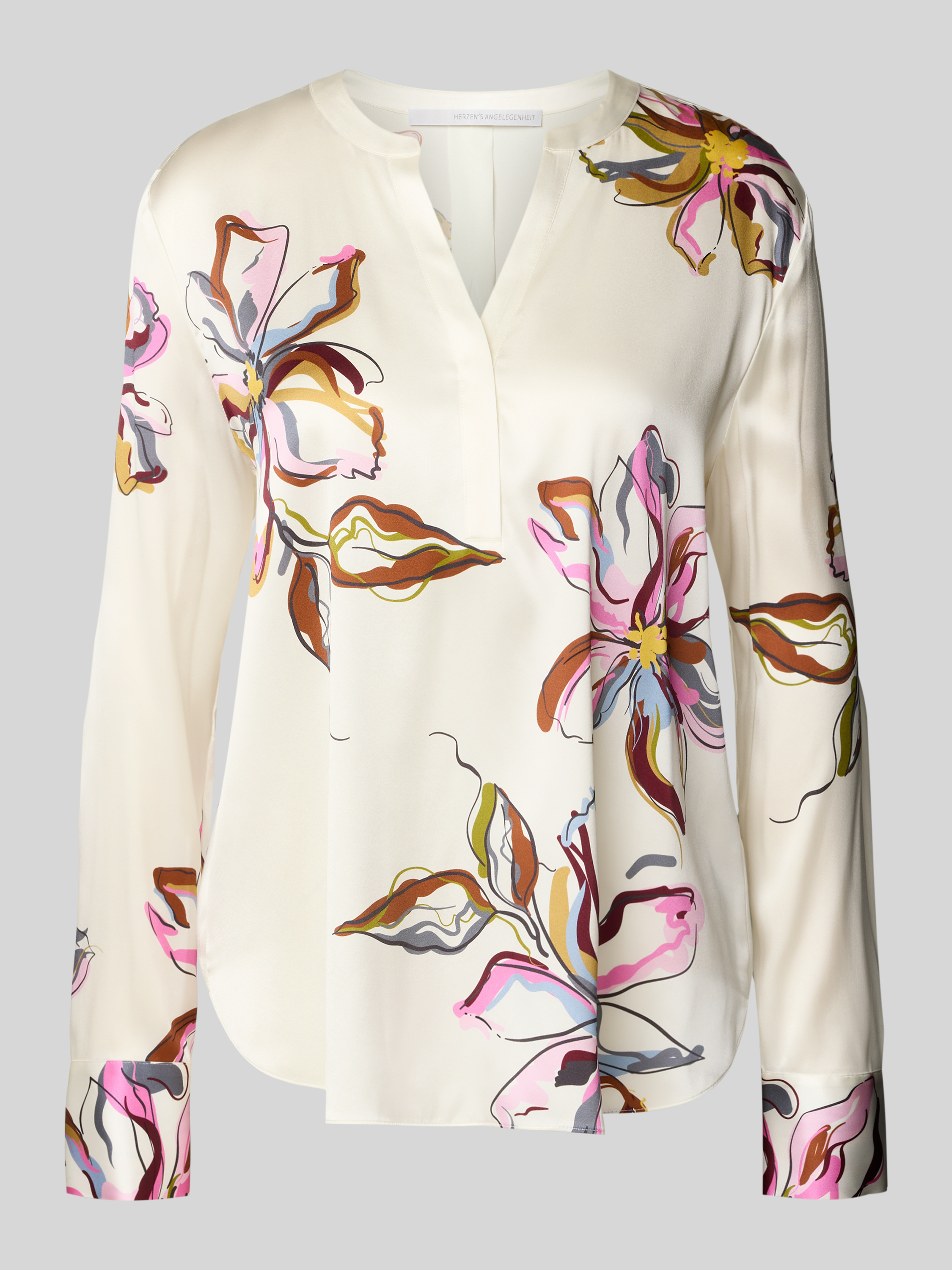 HerzensangelegenheitRegular Fit Seidenbluse mit Tunikakragen in offwhite