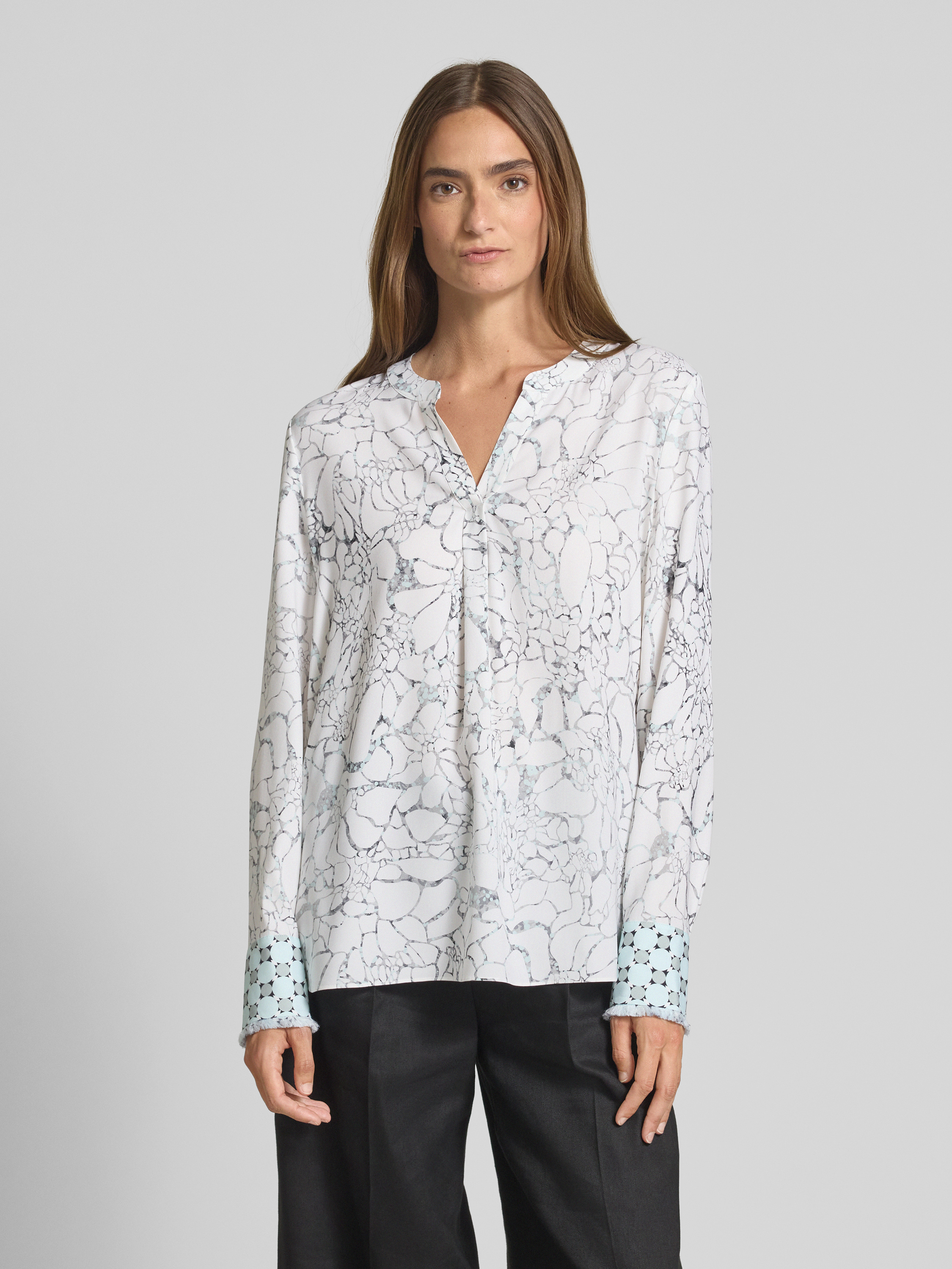 Die Damen Seidenbluse Relaxed Fit von HERZENS verbindet einen lockeren Schnitt mit einem angenehm leichten Seide-Mix und Stretch-Anteil. Durch die verlängerte Rückseite und den Tunika-Kragen erhält das Design eine legere Note, während ausgefranste Ärmelabschlüsse dem Modell einen modernen Akzent verleihen. So entsteht ein Kleidungsstück, das Bewegungsfreiheit schafft und sich vielseitig kombinieren lässt.