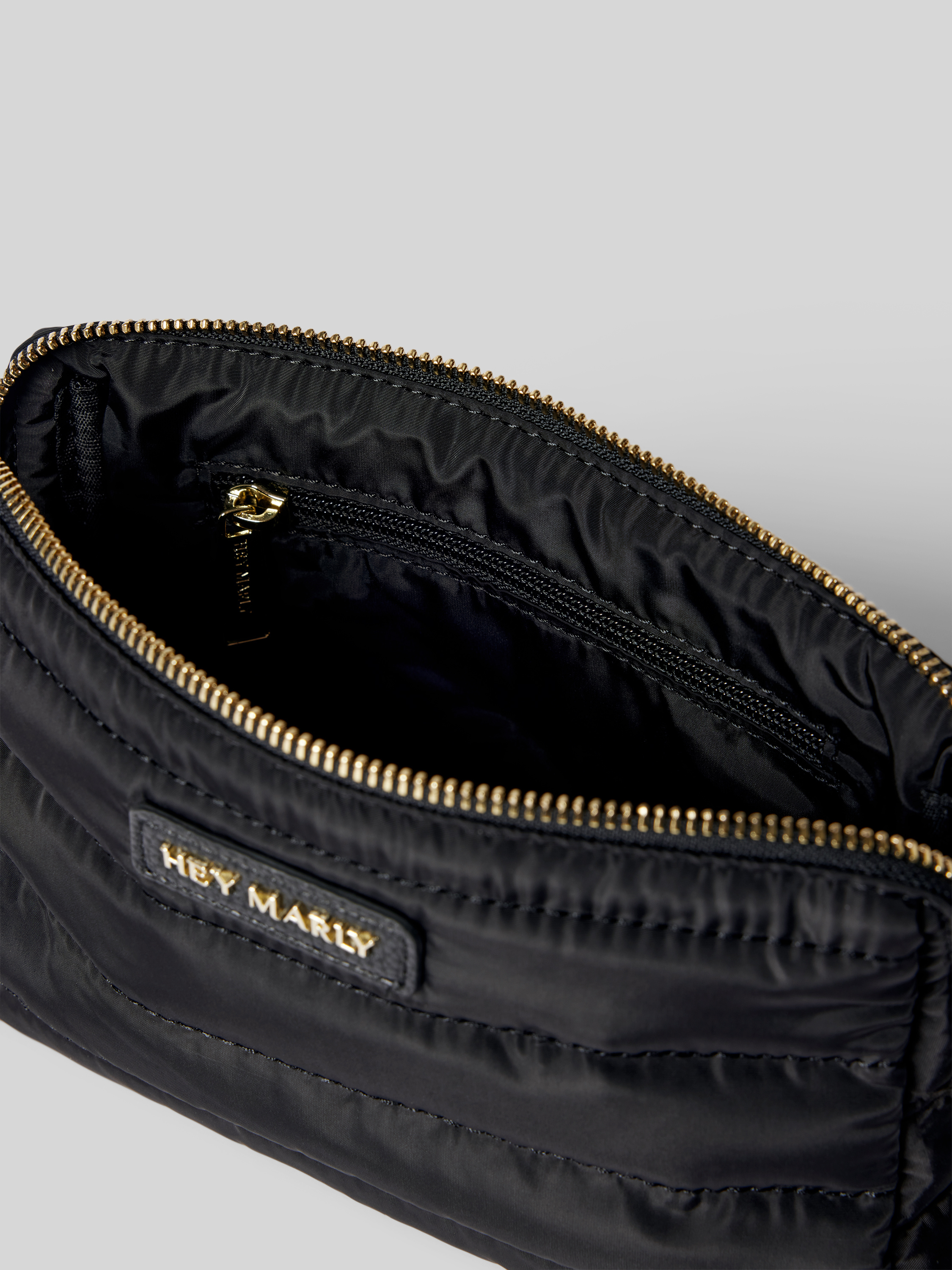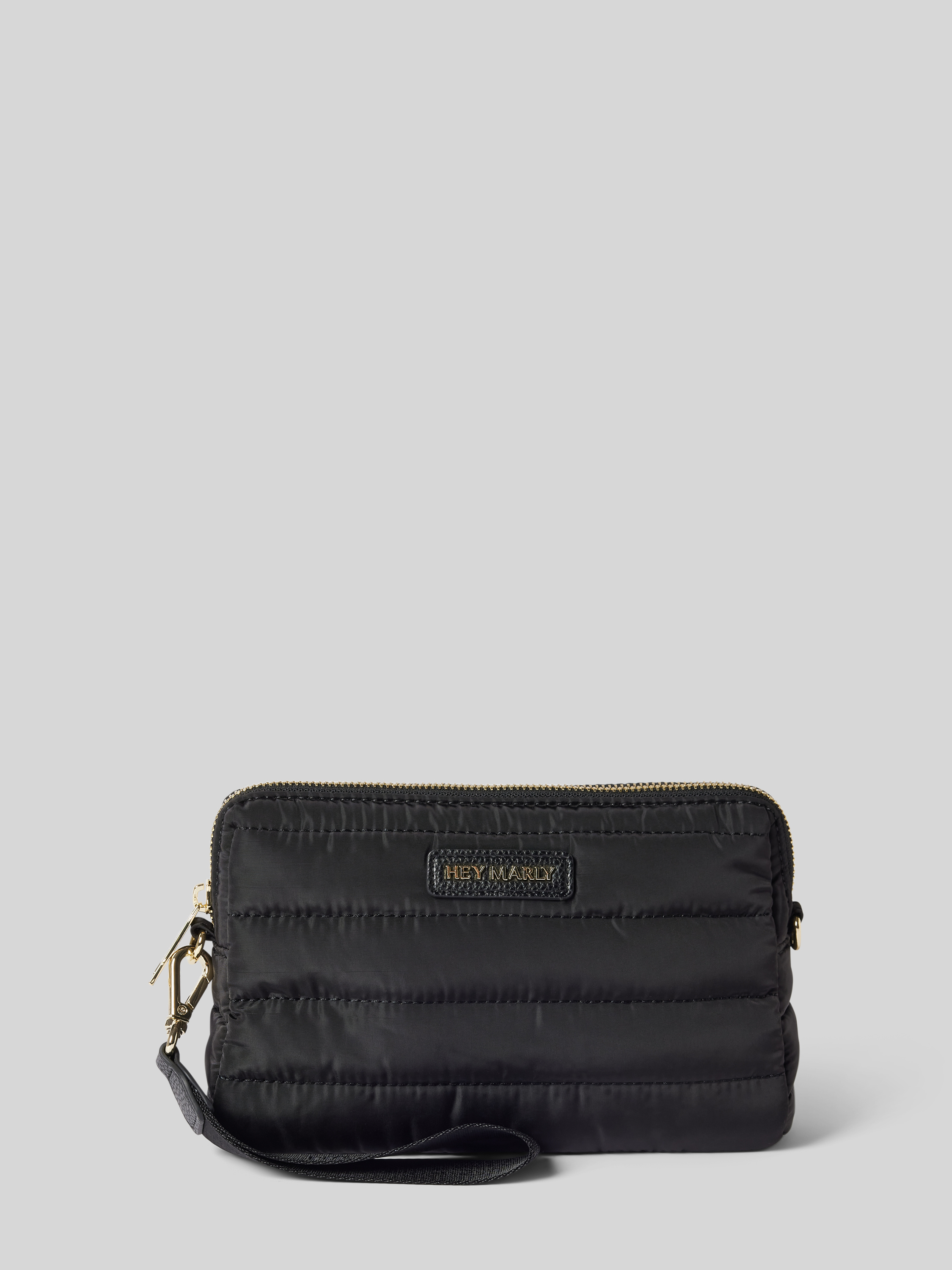 Die Kosmetiktasche von Hey Marly, Modell 'Little Buddy', bietet praktischen Stauraum im Hauptfach und wird durch eine Trageschlaufe ergänzt. Der dezente Label-Patch verleiht ihr einen modernen Look. Ideal für unterwegs, hält sie alle wichtigen Utensilien ordentlich beisammen.