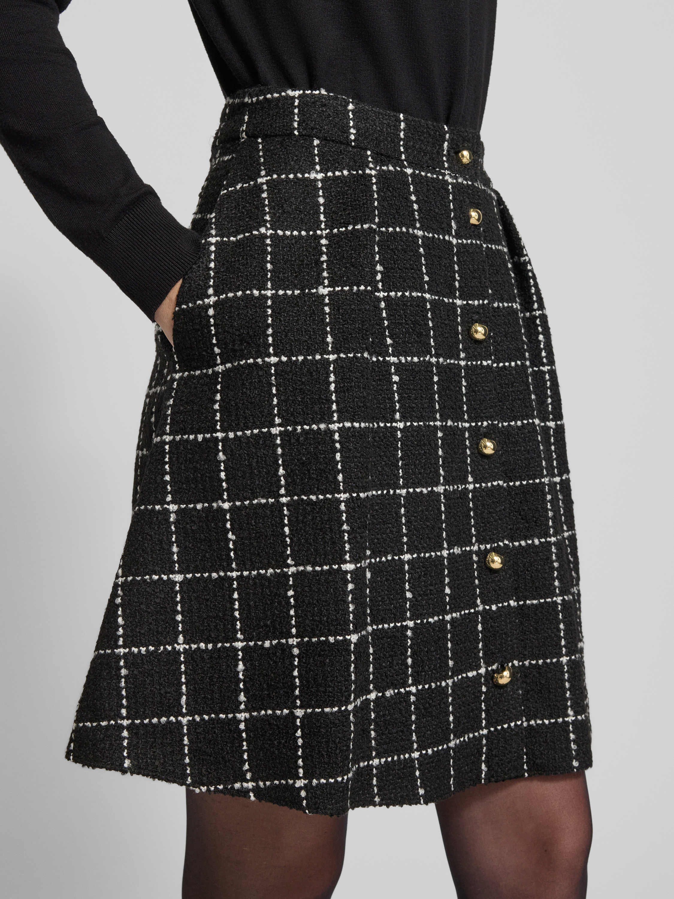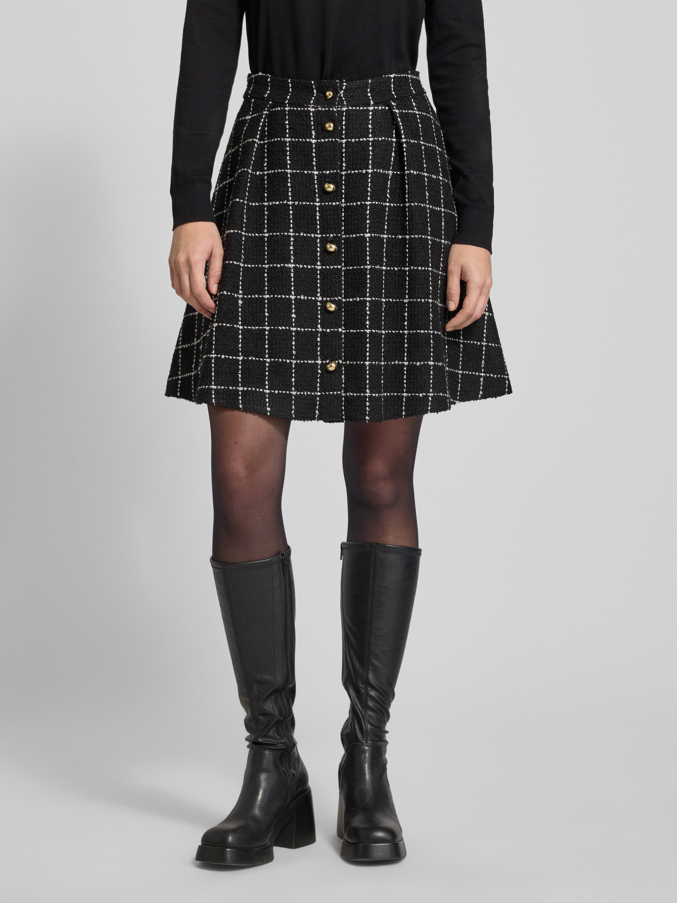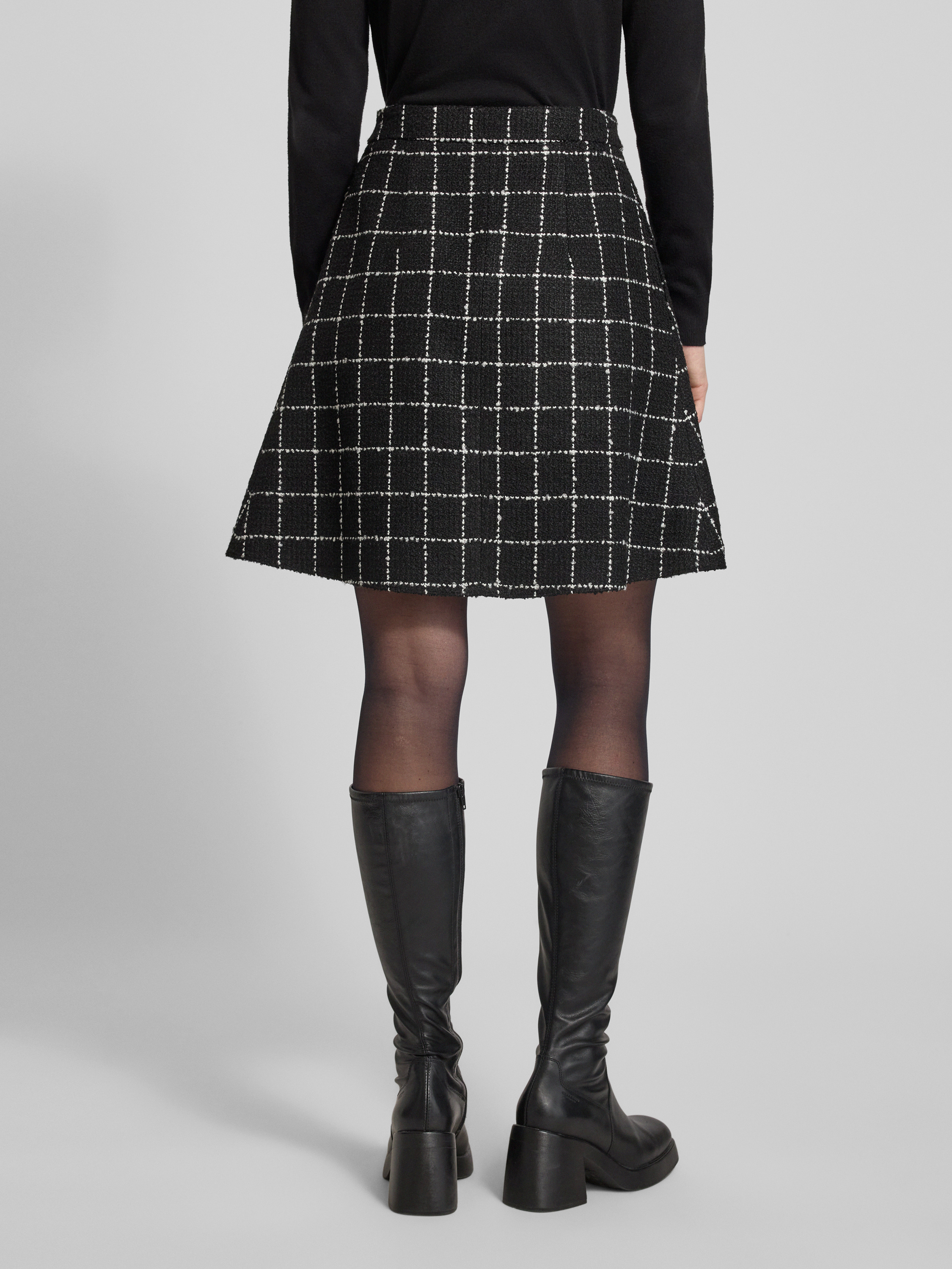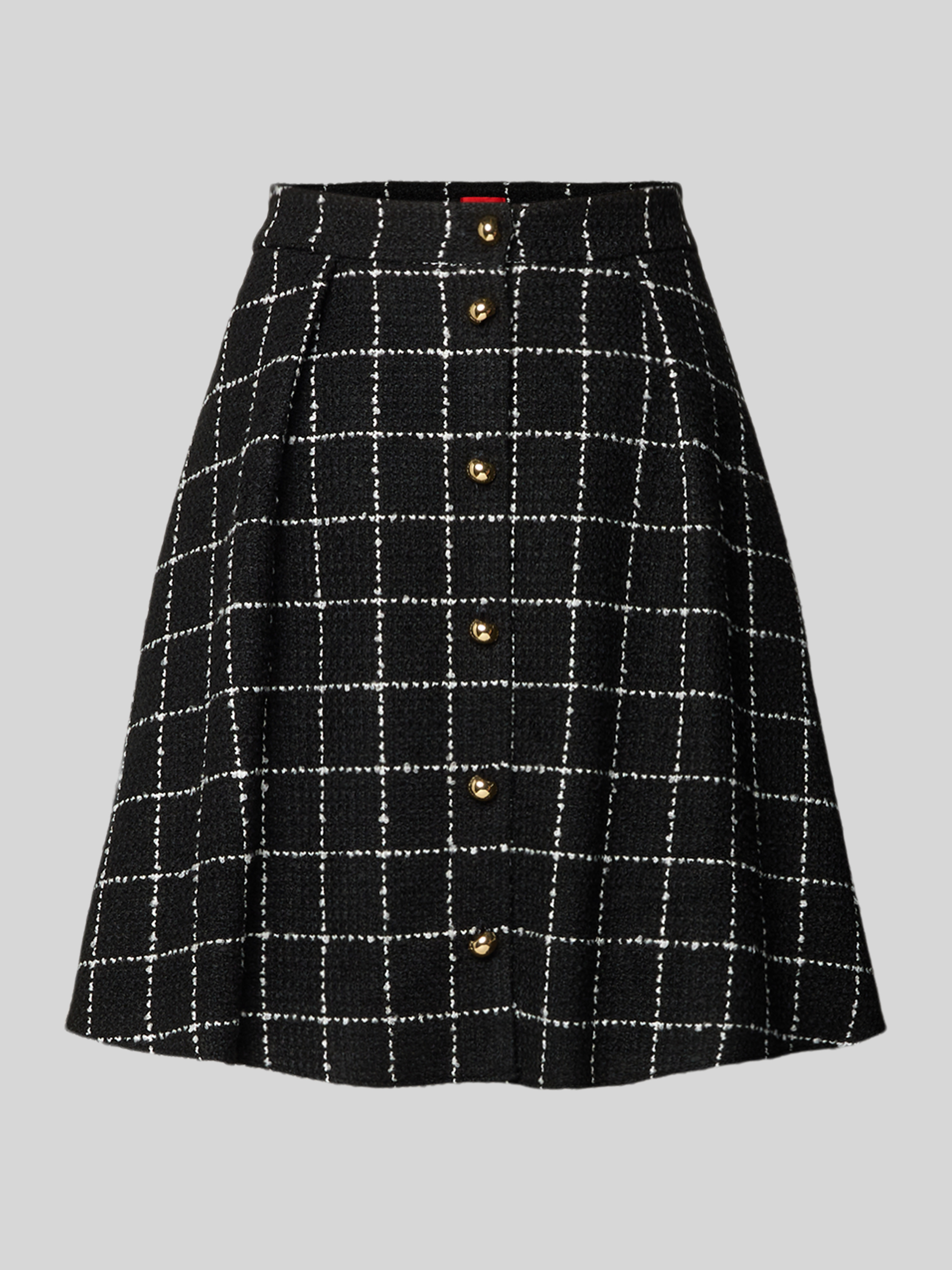 Der Mini-Rock von HUGO, Modell Rikla-1, zeigt sich mit ausgestellter Passform und sorgt durch die lockere Silhouette für angenehme Bewegungsfreiheit. Das unifarbene Gitterkaro-Muster bringt Abwechslung ins Outfit und setzt dezente Akzente. Durch die Bouclé-Materialverarbeitung erhält der Rock eine leicht strukturierte Haptik, die sich angenehm anfühlt und vielseitig kombinieren lässt.