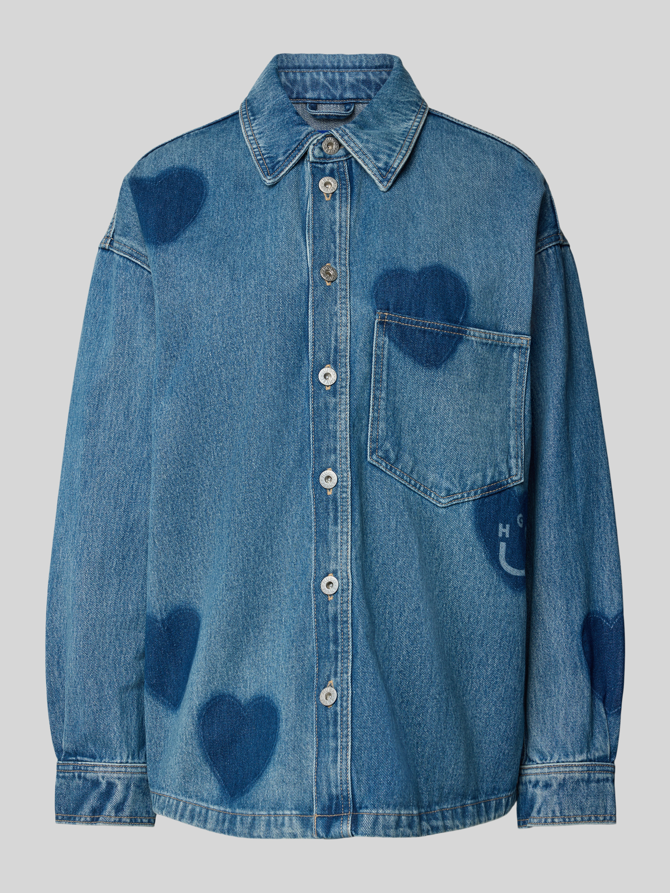 Hugo BlueRelaxed Fit Hemdbluse aus reiner Baumwolle Modell 'GARESA' in jeansblau