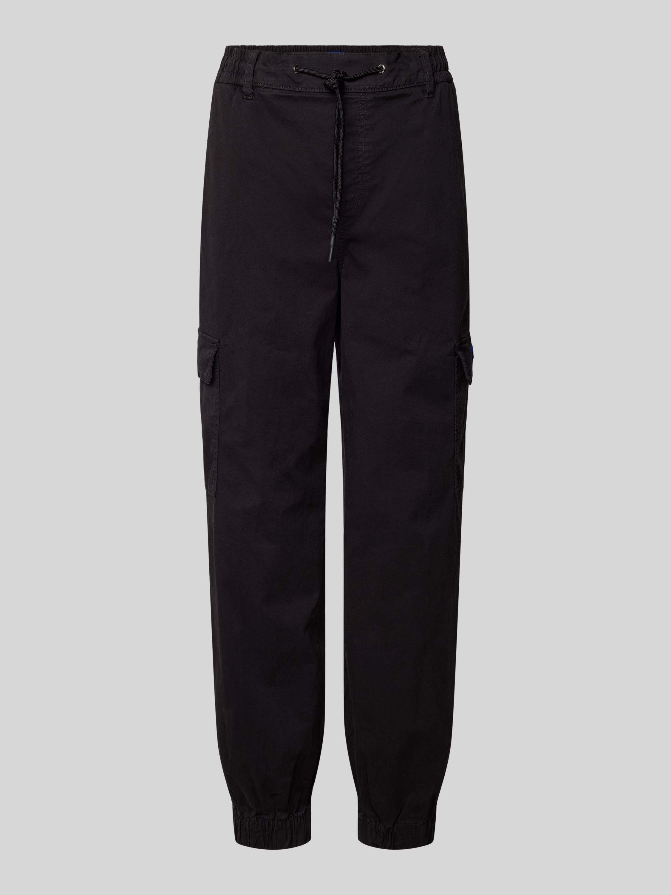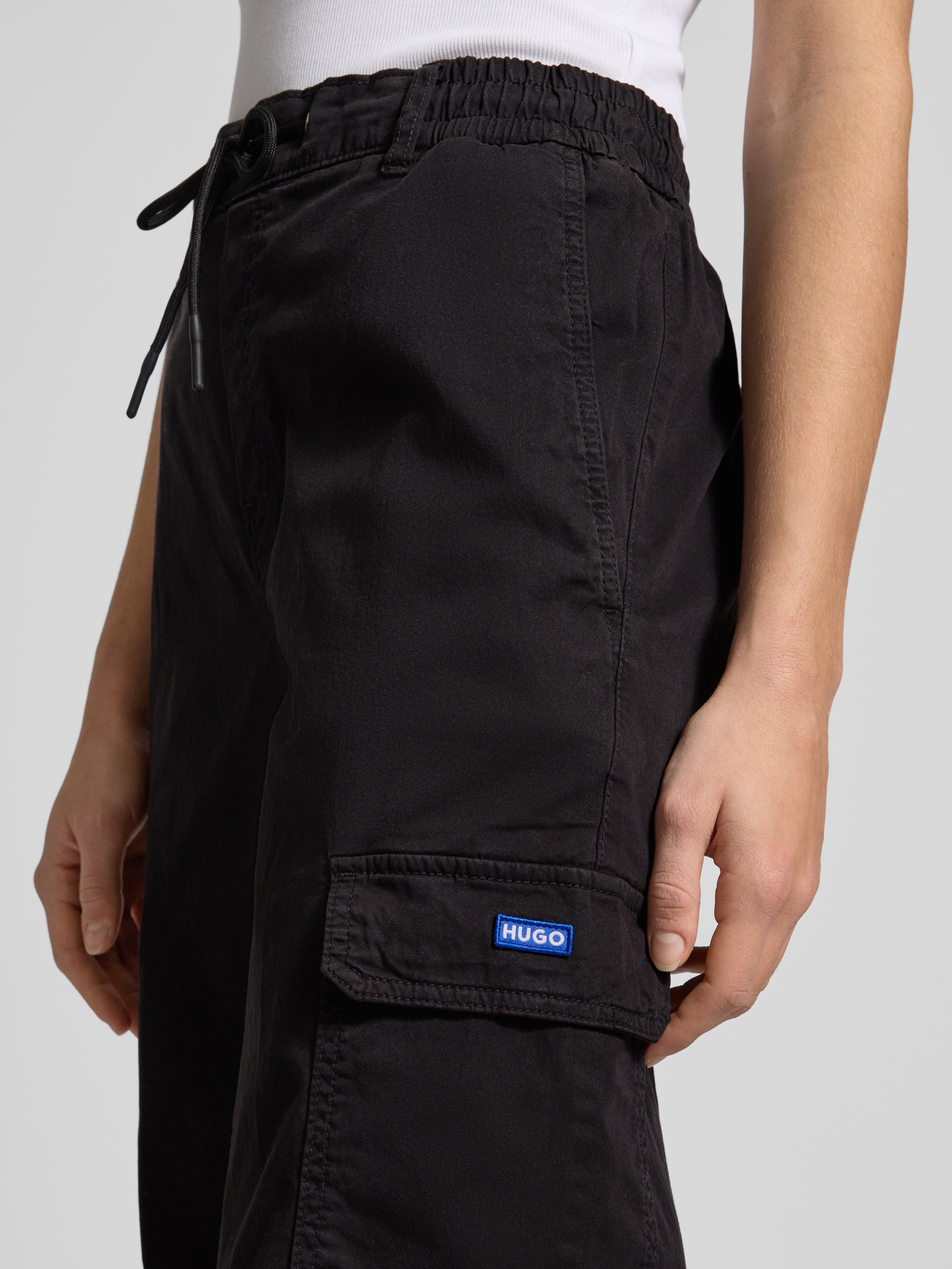 Die Stoffhose von Hugo Blue, Modell 'Hisune', zeichnet sich durch ihren lockeren Schnitt und den komfortablen Baumwoll-Elasthan-Mix aus. Mit ihrem elastischen Bund und Tunnelzug bietet sie eine flexible Passform. Praktische Pattentaschen und französische Eingrifftaschen ergänzen das stilvolle Design.